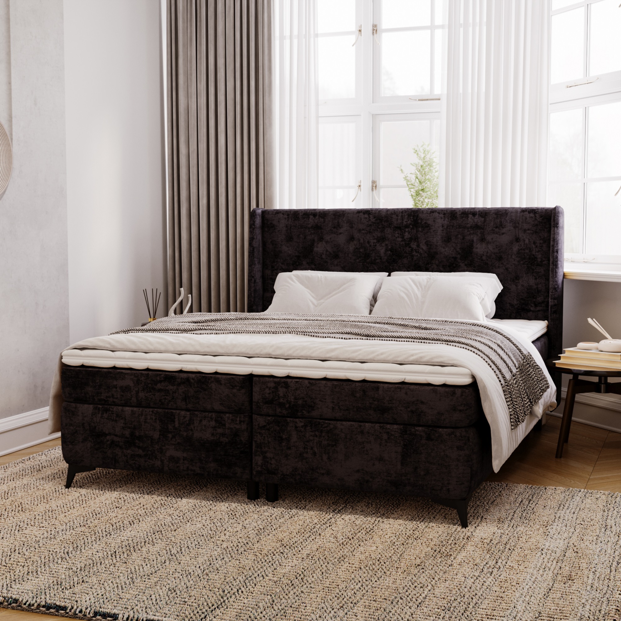 - Povrch postele: Čalúnený