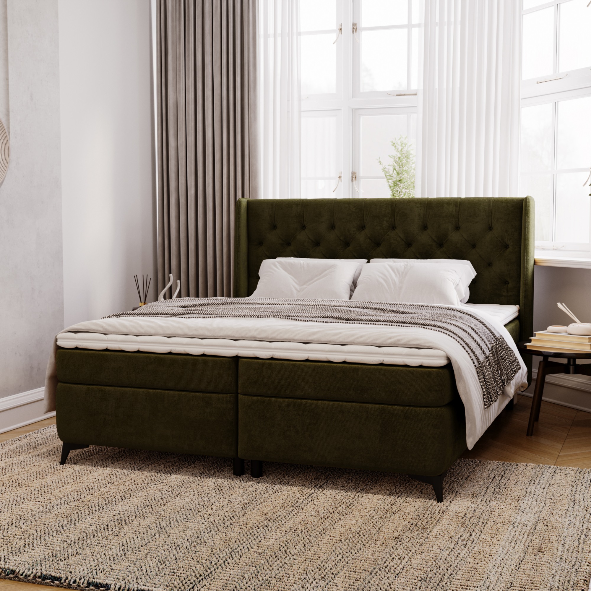 Dodávaná je vrátane 2 matracov s bonell-pružinovým jadrom, ktoré sa prispôsobia tvaru tela a poskytujú optimálnu oporu počas spánku. Na ešte väčší komfort sú pružinové matrace doplnené o ochranný topper, ktorý zjednocuje ložnú plochu a predlžuje životnosť matracov.