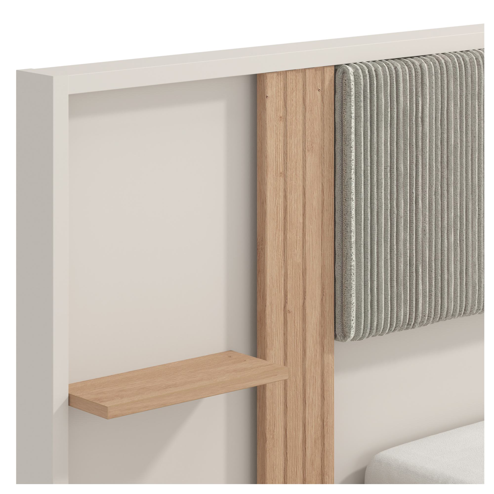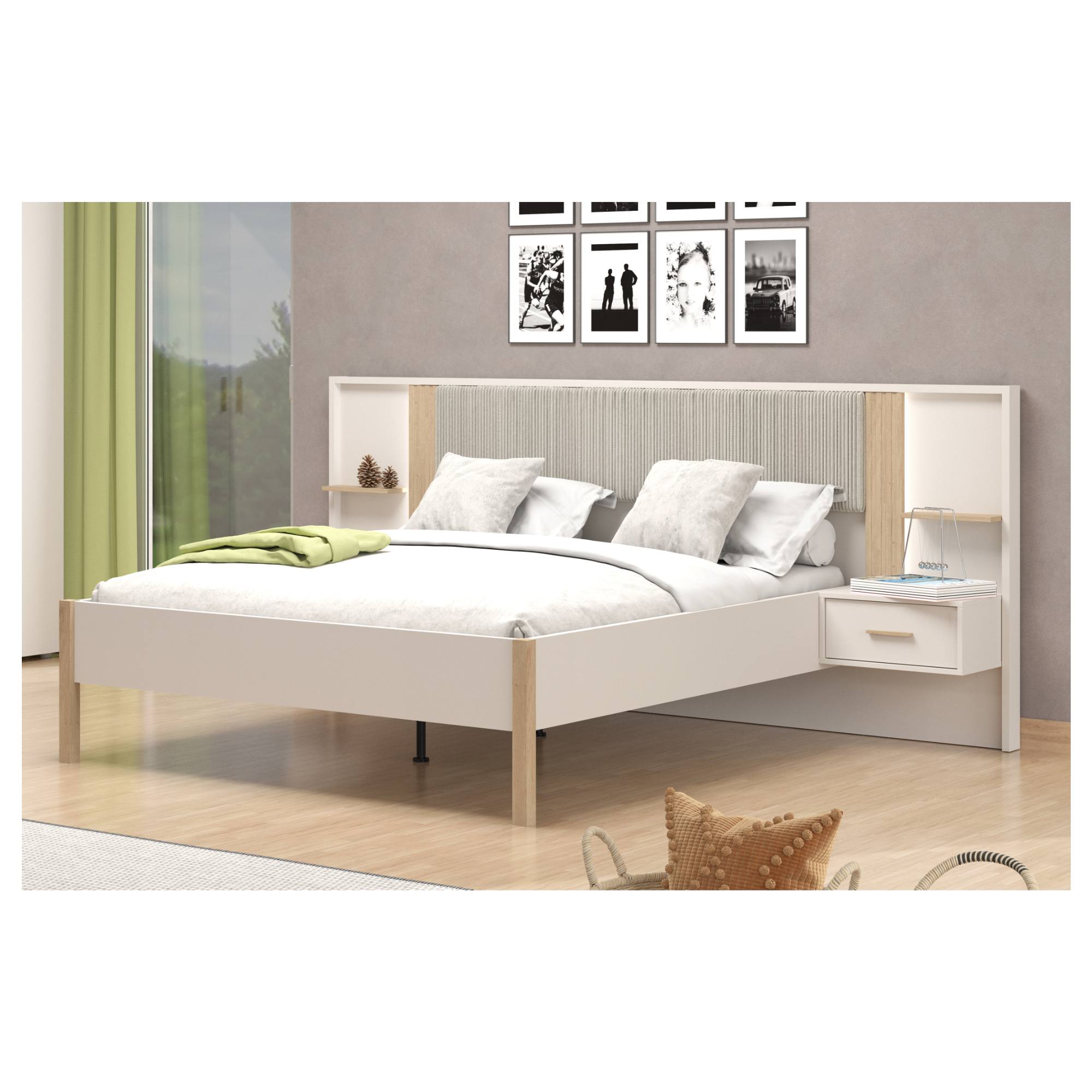 Rám postele je vyrobený z laminovanej drevotriesky, ktorá sa vyznačuje ľahkou udržiavateľnosťou. Jeho súčasťou je stredový nosník zaisťujúci väčšiu stabilitu a vyššiu nosnosť postele. Vysoké, čiastočne čalúnené čelo poskytne ideálnu oporu hlavy počas večernej relaxácie. Celú konštrukciu dopĺňajú nohy v prírodnom dekore, ktoré zdôrazňujú celkový elegantný dojem. Posteľ je dodávaná bez matraca a roštu, ale veríme, že si tie ideálne vyberiete z našej širokej ponuky.