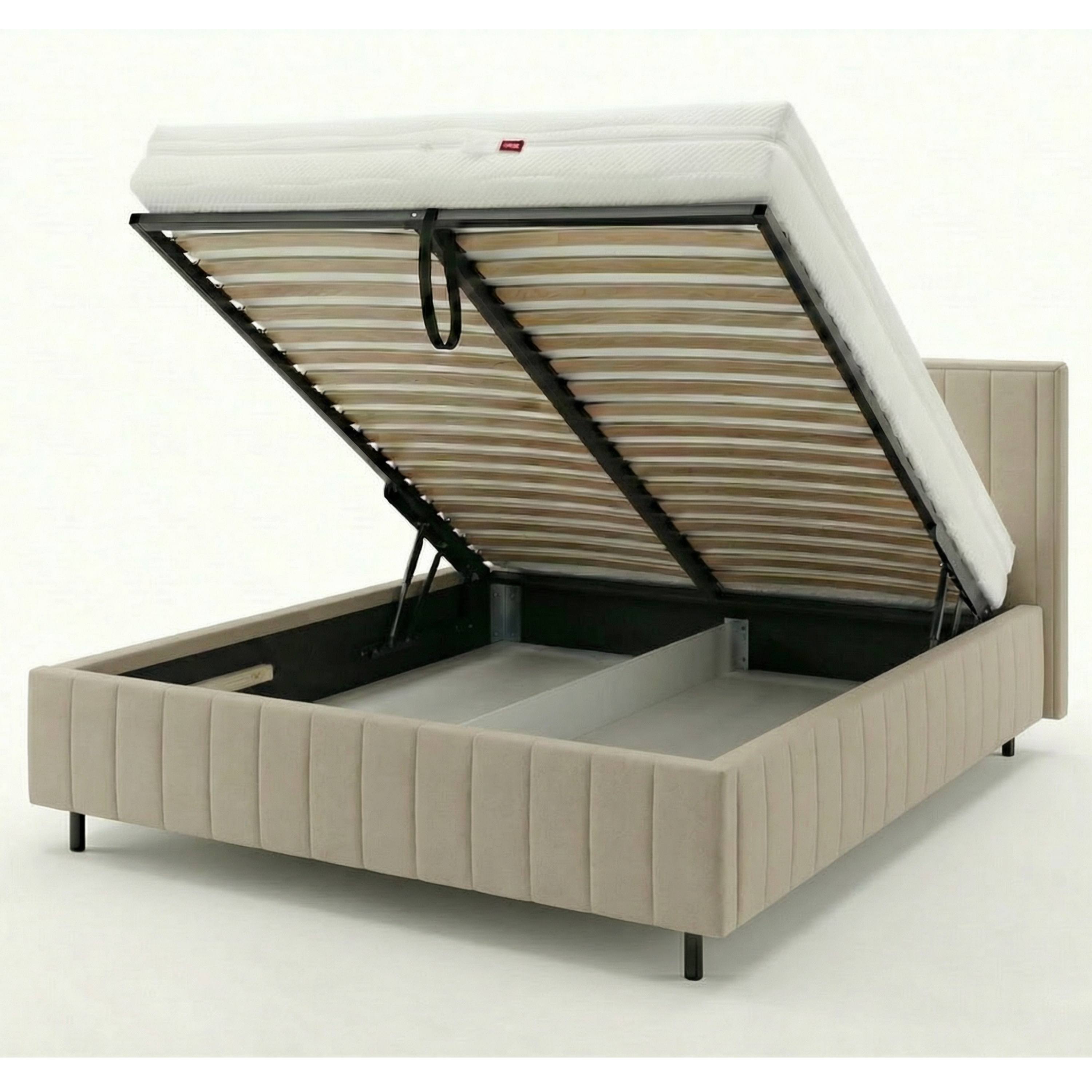 Jej konštrukcia je čalúnená na dotyk príjemnou tkaninou v jednofarebnom prevedení. Vysoké dekoratívne čelo postele umožňuje dopriať si komfortné opretie počas relaxácie. Posteľ je dodávaná vrátane lamelového roštu s čelným výklopom, ktorý umožňuje jednoduchý prístup do úložného priestoru v ráme postele.