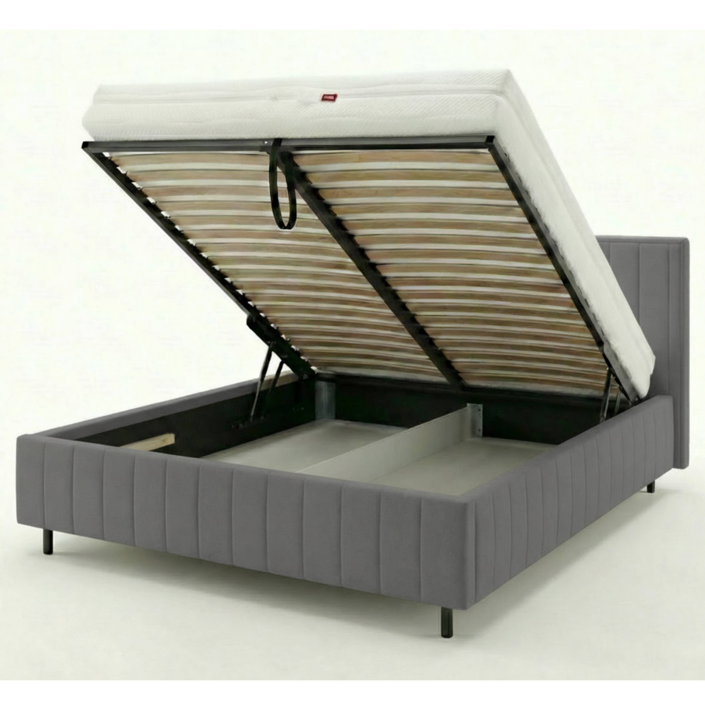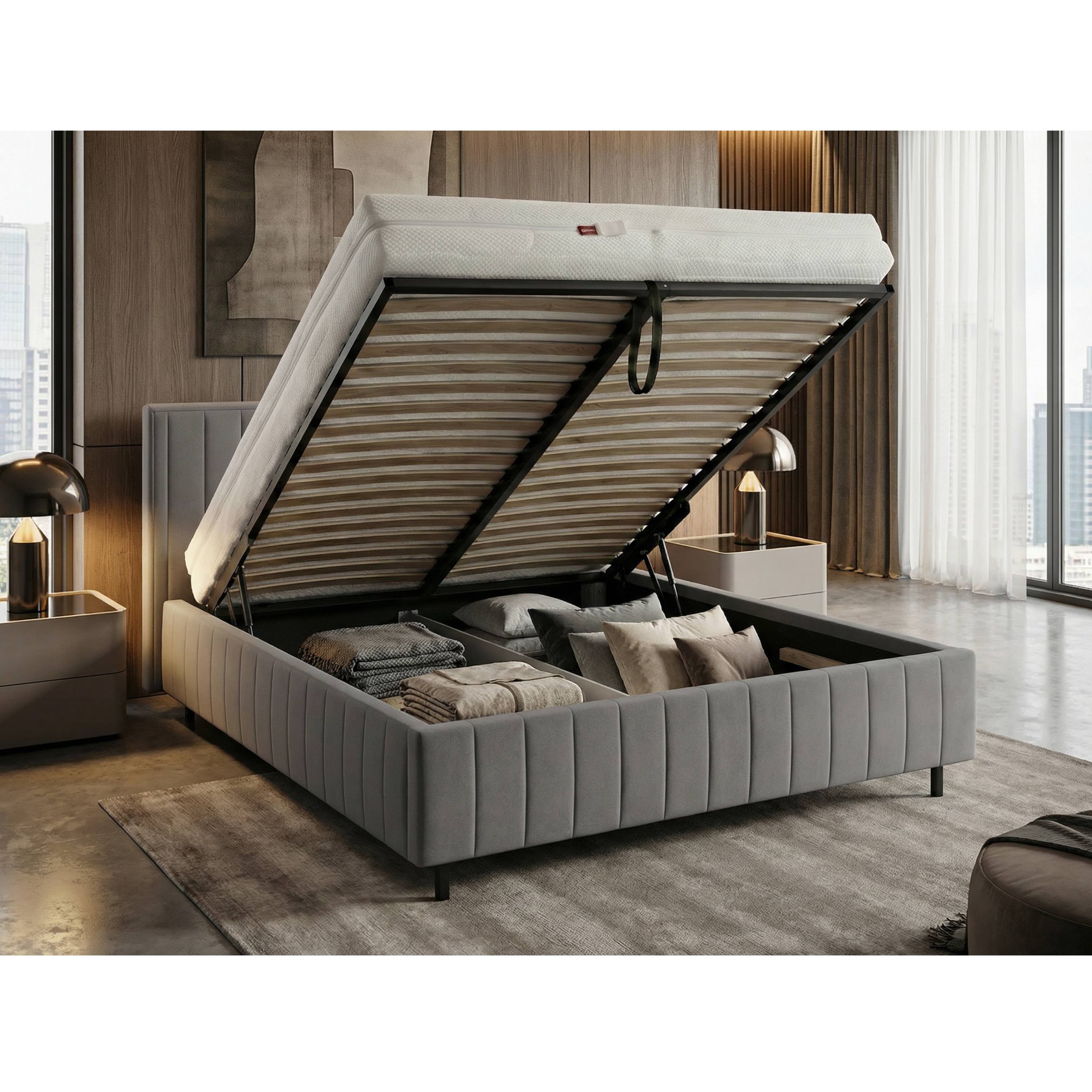 Jej konštrukcia je čalúnená na dotyk príjemnou tkaninou v jednofarebnom prevedení. Vysoké dekoratívne čelo postele umožňuje dopriať si komfortné opretie počas relaxácie. Posteľ je dodávaná vrátane lamelového roštu s čelným výklopom, ktorý umožňuje jednoduchý prístup do úložného priestoru v ráme postele.