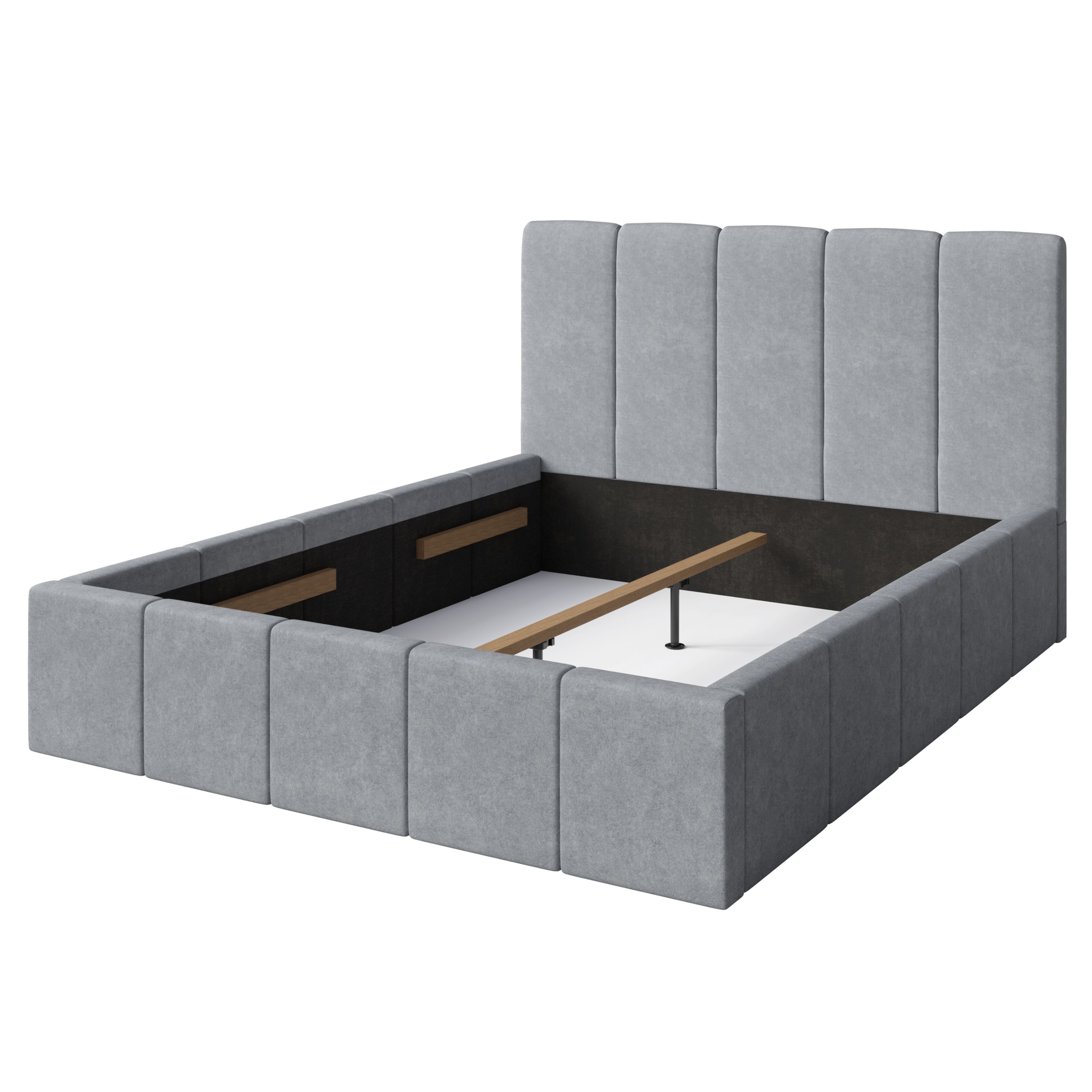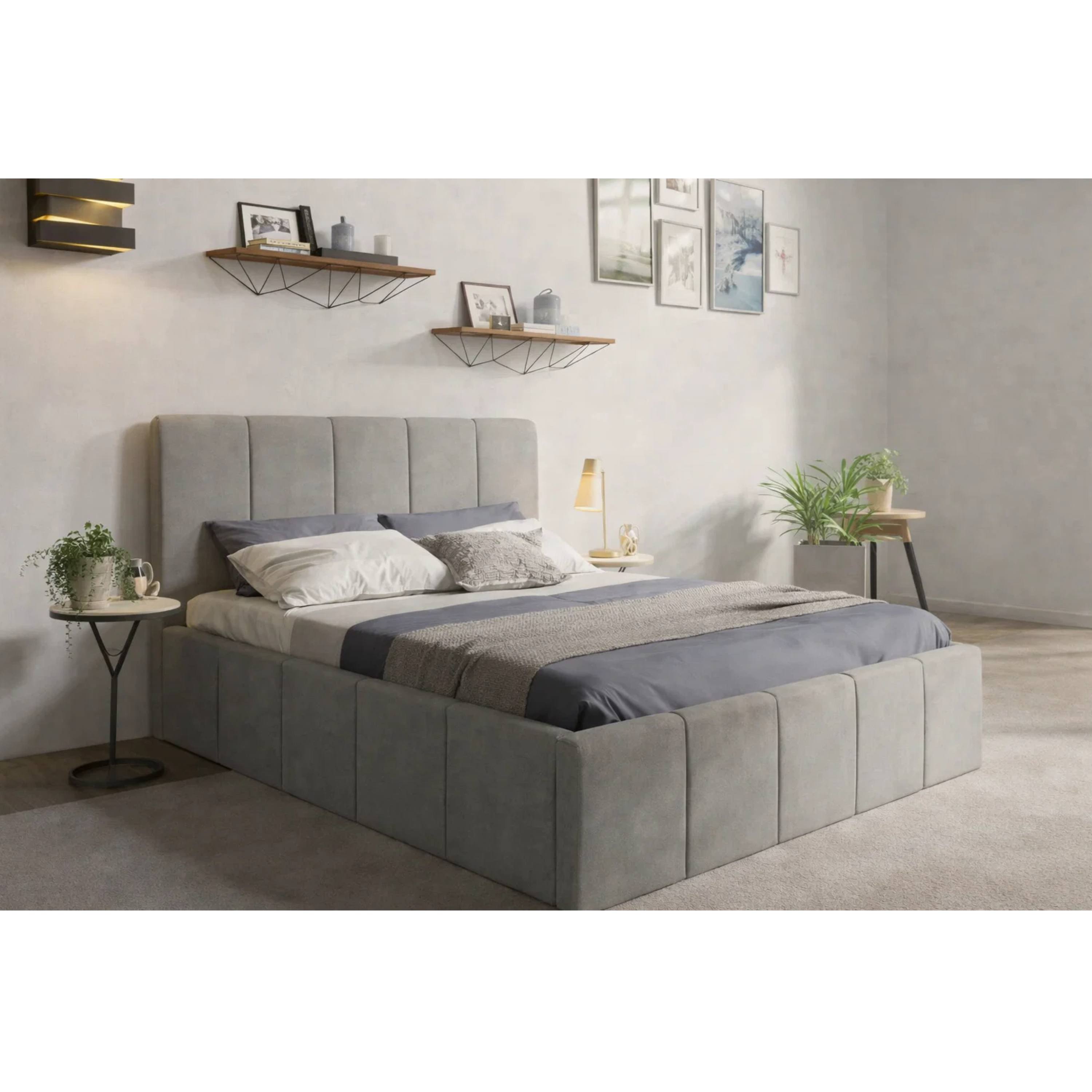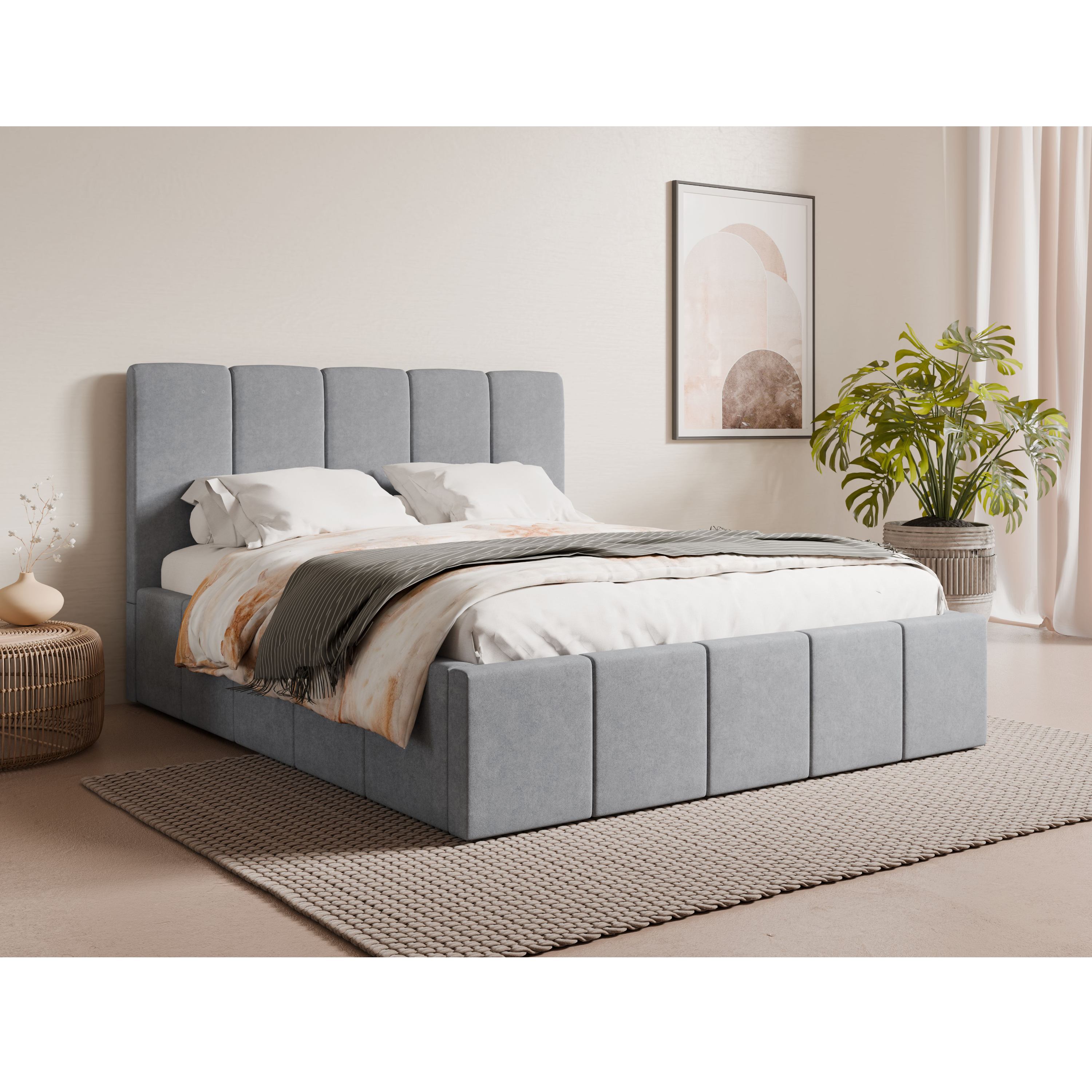 Jej konštrukcia je čalúnená na dotyk príjemnou, mäkkou tkaninou v neutrálnom sivom prevedení, ktoré ľahko zladíte s ďalším vybavením miestnosti. Dominantným prvkom postele je priestranné vysoké čelo, ktoré okrem dekoratívnej funkcie umožňuje aj komfortné opretie hlavy počas relaxácie. Posteľ je dodávaná vrátane lamelového roštu s čelným výklopom, ktorý zabezpečuje jednoduchý prístup do úložného priestoru v ráme postele. Na zabezpečenie potrebnej opory ložnej plochy je navyše posteľ vybavená stredovým nosníkom.