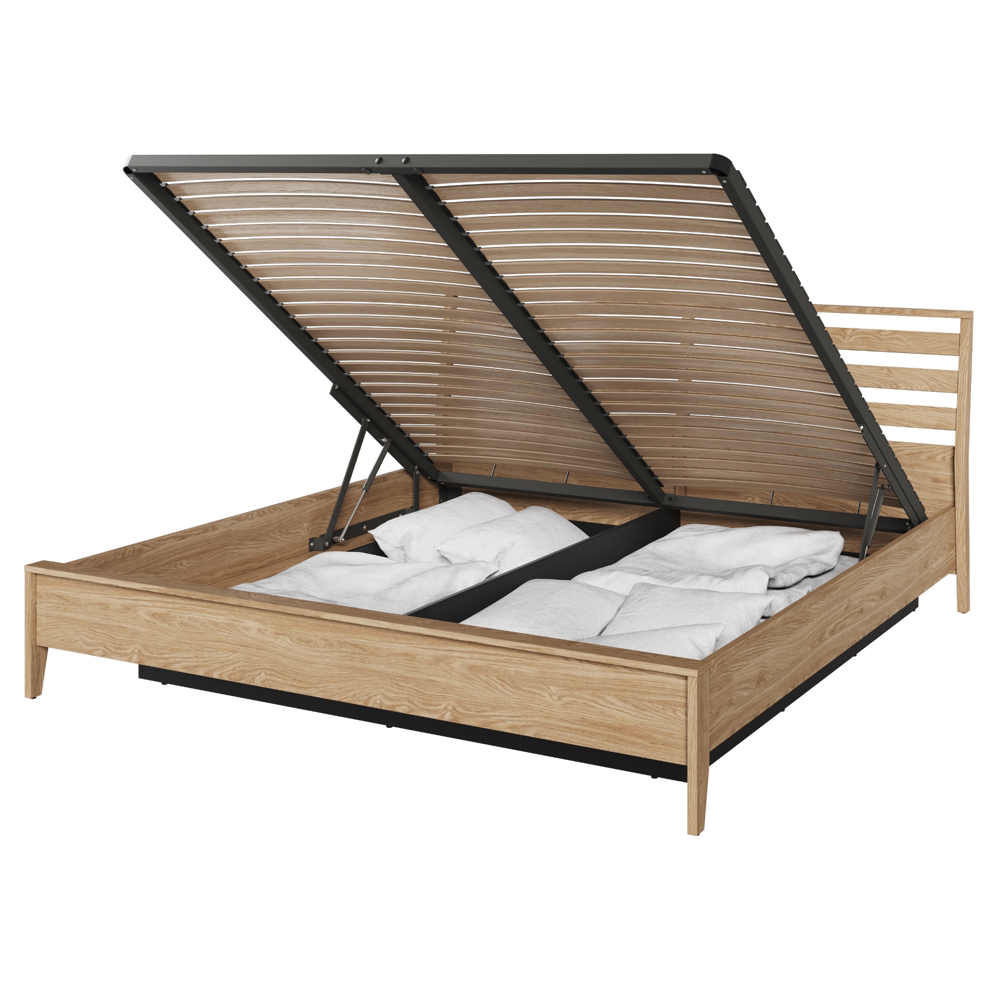 Pevná a stabilná konštrukcia je vybavená vysokým vzdušným čelom, ktoré umožňuje pohodlné opretie. Posteľ je vybavená lamelovými roštami, ale matrac je nutné dokúpiť samostatne. Vďaka praktickému čelnému výklopu roštov sa ľahko a rýchlo dostanete do úložného priestoru v ráme postele, kam si môžete uložiť nielen lôžkoviny. Posteľ je vyrobená z laminovanej drevotriesky nenáročnej na údržbu.