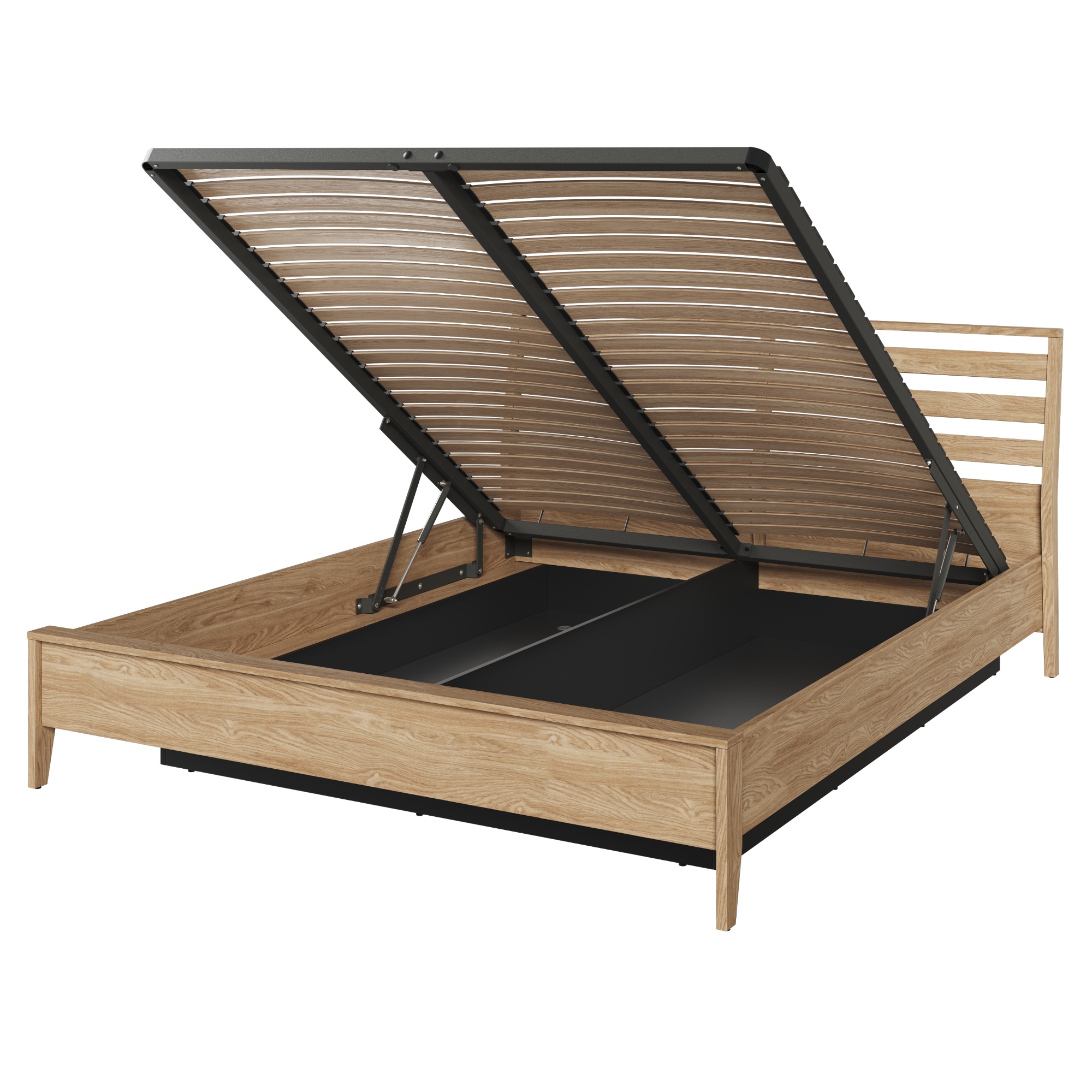 Pevná a stabilná konštrukcia je vybavená vysokým vzdušným čelom, ktoré umožňuje pohodlné opretie. Posteľ je vybavená lamelovými roštami, ale matrac je nutné dokúpiť samostatne. Vďaka praktickému čelnému výklopu roštov sa ľahko a rýchlo dostanete do úložného priestoru v ráme postele, kam si môžete uložiť nielen lôžkoviny. Posteľ je vyrobená z laminovanej drevotriesky nenáročnej na údržbu.