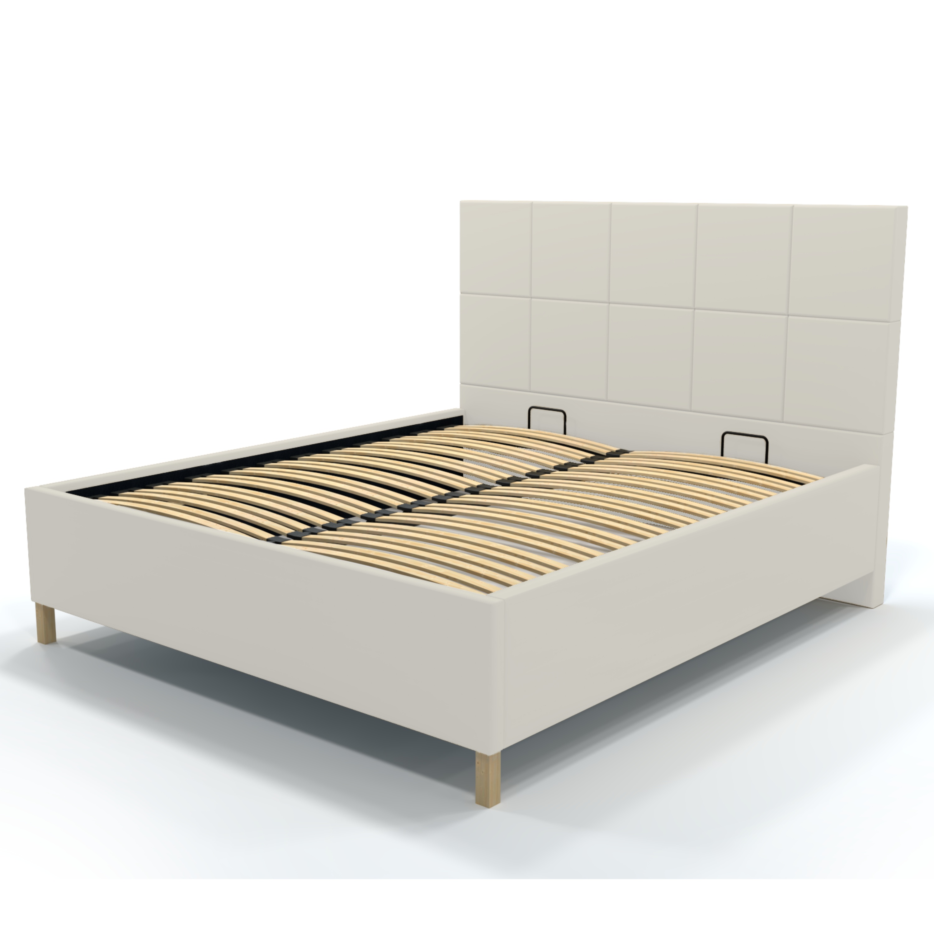 Dominantným prvkom postele je vysoké čelo, ktoré okrem estetickej funkcie umožňuje dopriať si komfortné opretie počas relaxu. Posteľ je dodávaná vrátane lamelového roštu osadeného v kovovom ráme. Čelný výklop potom umožňuje jednoduchý prístup do úložného priestoru pod ložnou plochou. Celkový vzhľad dopĺňajú drevené nožičky v prírodnom odtieni.