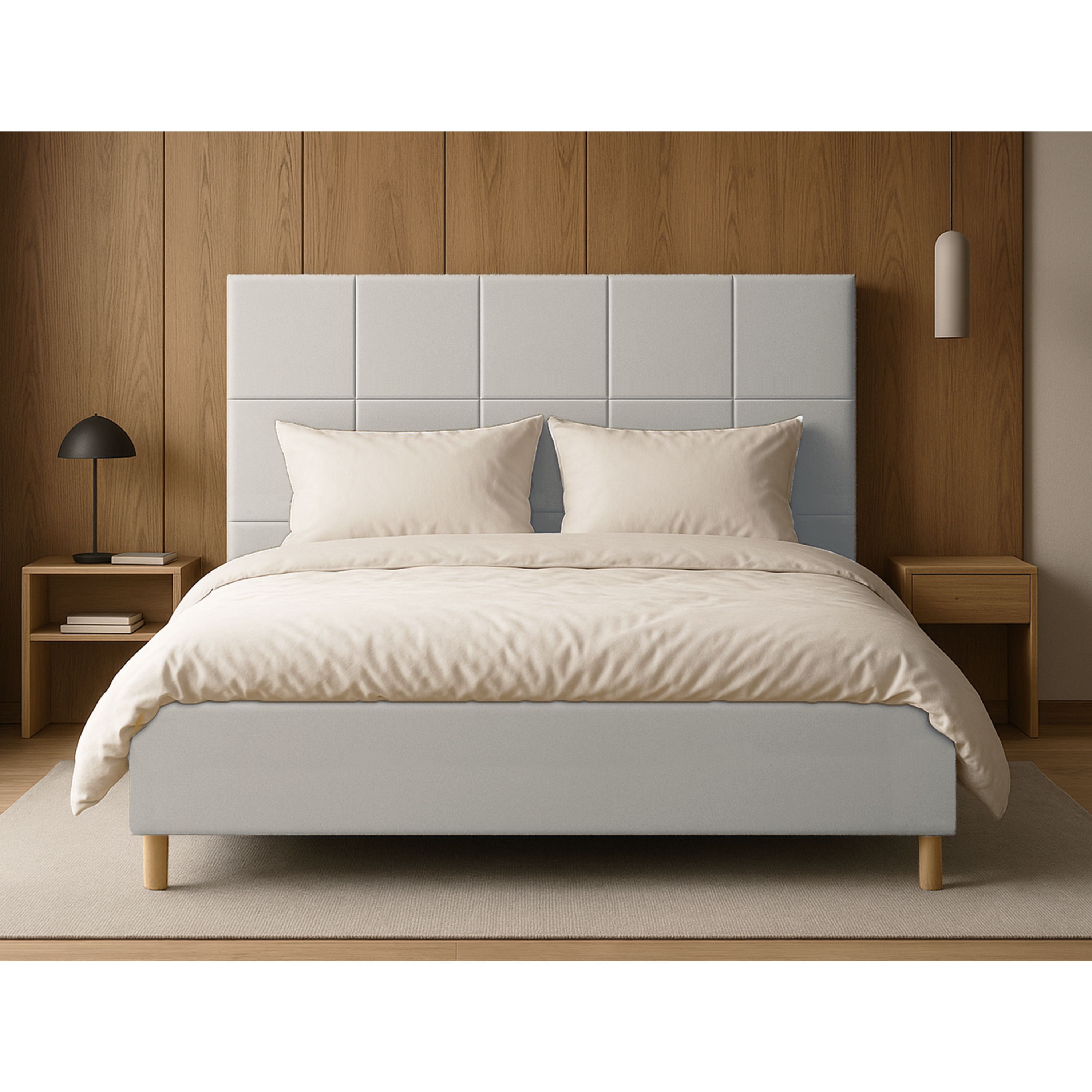 Dominantným prvkom postele je vysoké čelo, ktoré okrem estetickej funkcie umožňuje dopriať si komfortné opretie počas relaxu. Posteľ je dodávaná vrátane latkového roštu osadeného v drevenom ráme. Čelný výklop potom umožňuje jednoduchý prístup do úložného priestoru pod ložnou plochou. Celkový vzhľad dopĺňajú drevené nožičky v prírodnom odtieni.