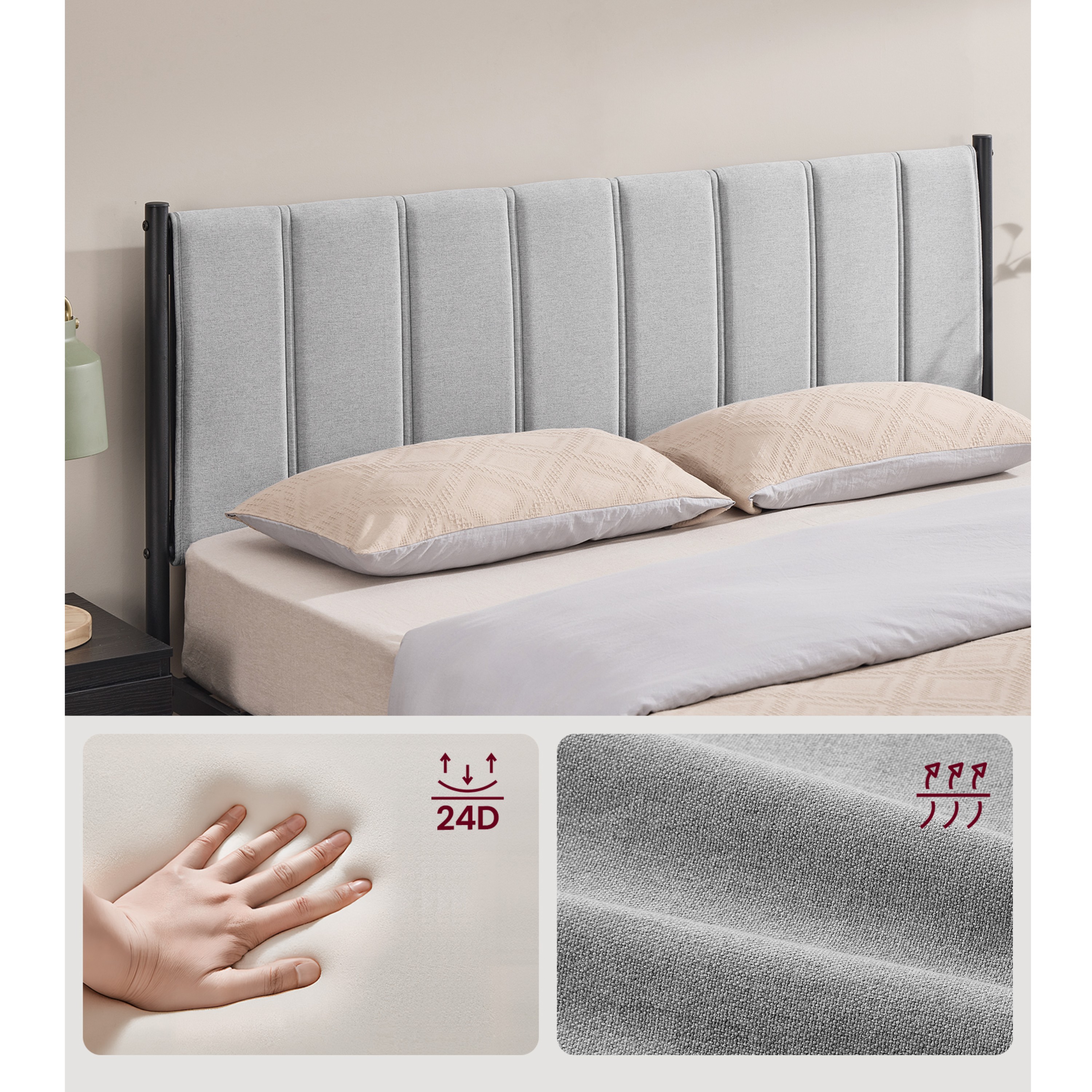 Dvojlôžková posteľ FERKO v modernom vyhotovení kombinuje pevnú oceľovú konštrukciu s mäkko čalúnenými čelami, ktoré zaisťujú pohodlie aj štýlový vzhľad. Vďaka neutrálnej farebnej kombinácii čiernej a sivej sa ľahko začlení do rôznych typov spální.