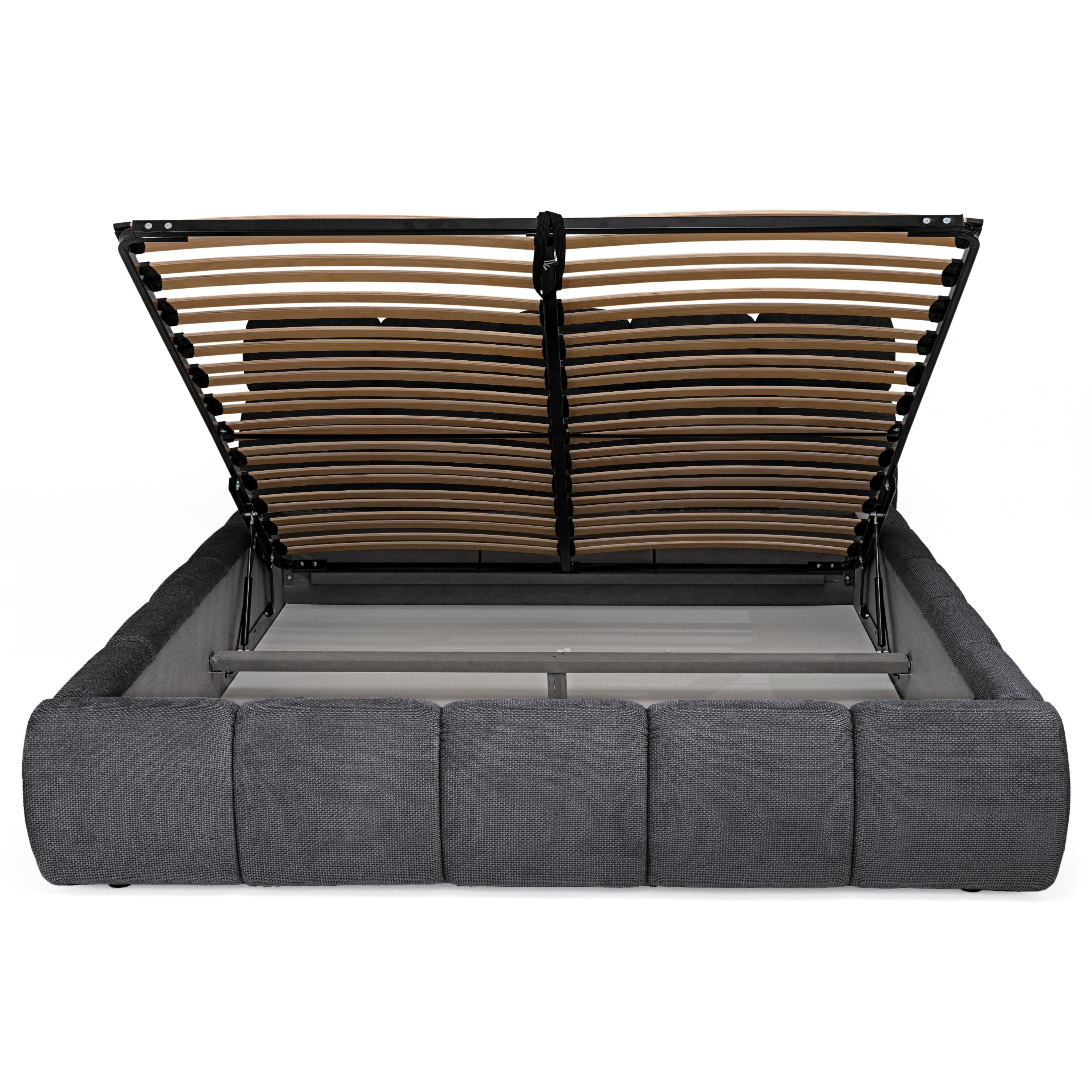 Posteľ je dodávaná vrátane lamelového roštu, ale matrac je potrebné dokúpiť samostatne. Konštrukcia ponúka aj praktický úložný priestor v ráme postele, ktorý je ľahko prístupný vďaka čelnému výklopu kovového rámu s roštom.