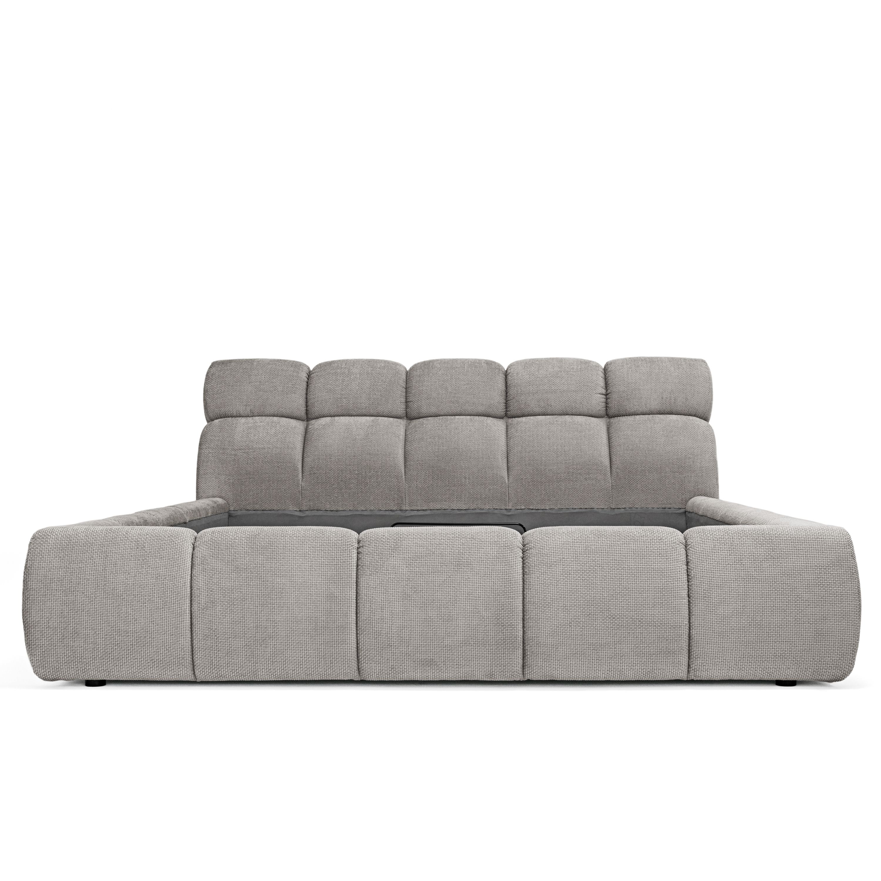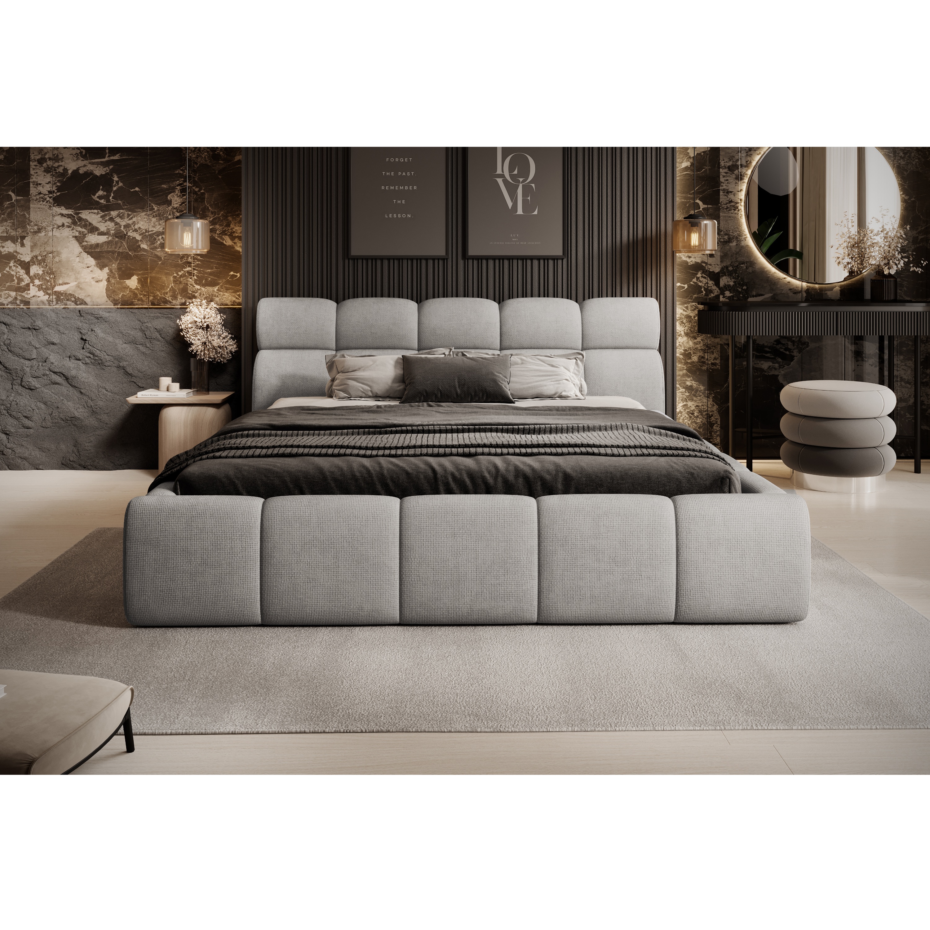 Jej konštrukcia je čalúnená na dotyk príjemnou tkanou látkou v jednofarebnom prevedení. Poťah doplnený o výrazné dekoratívne prešívanie dodáva posteli eleganciu a dotvára jej celkový vzhľad. Vysoké čelo postele s polstrovaním z polyuretánovej peny umožňuje dopriať si komfortné opretie počas relaxu.