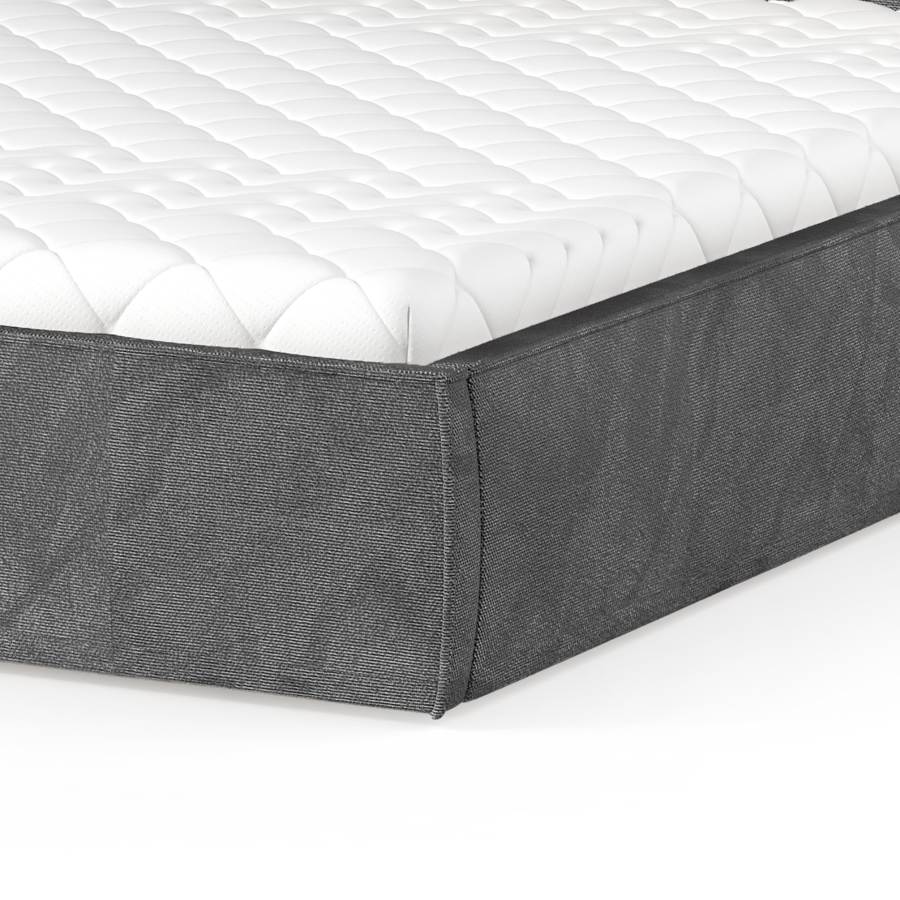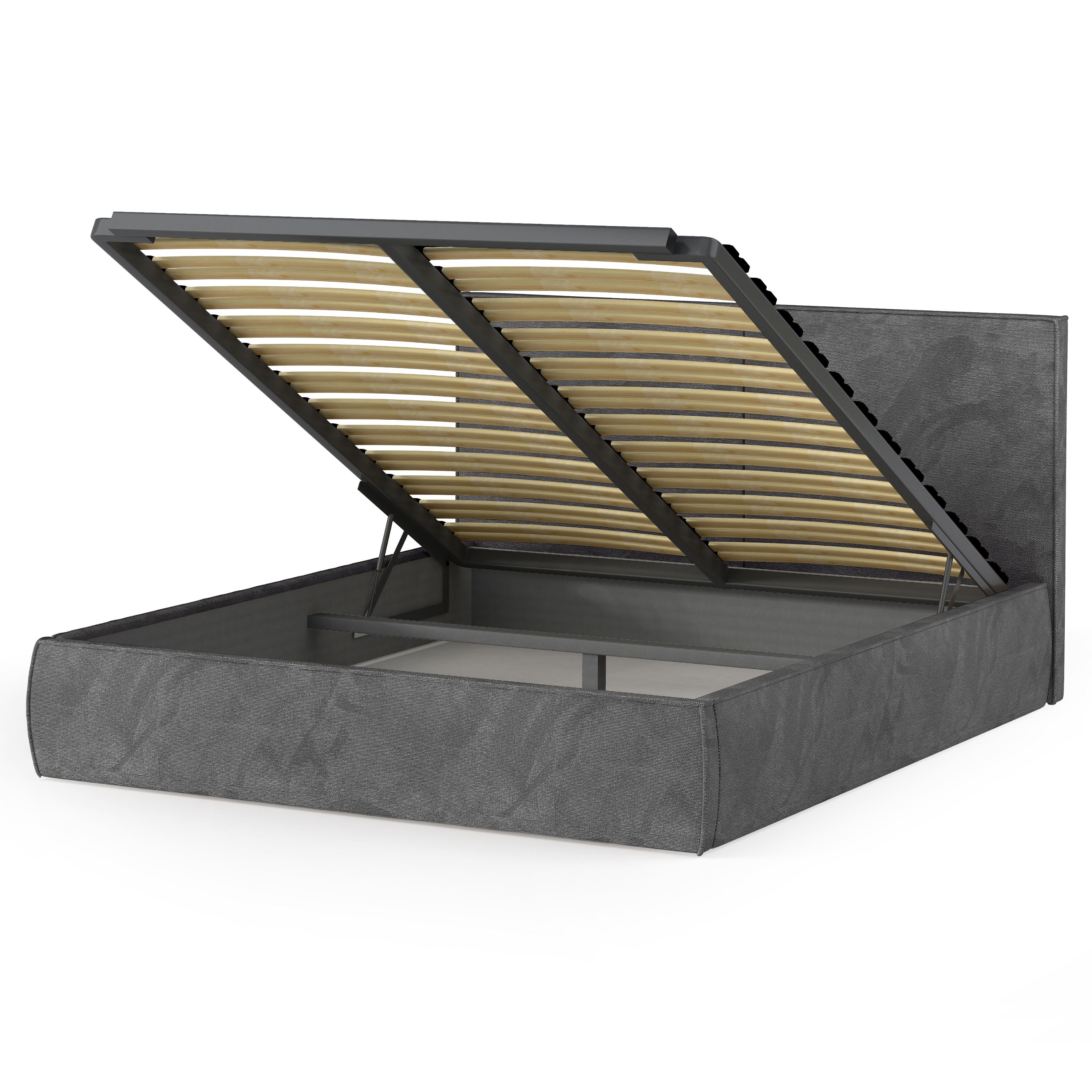 Posteľ je dodávaná vrátane lamelového roštu, matrace je však potrebné dokúpiť samostatne. Konštrukcia ponúka aj praktický úložný priestor v ráme postele, ktorý je ľahko prístupný vďaka čelnému výklopu kovového rámu s roštom.