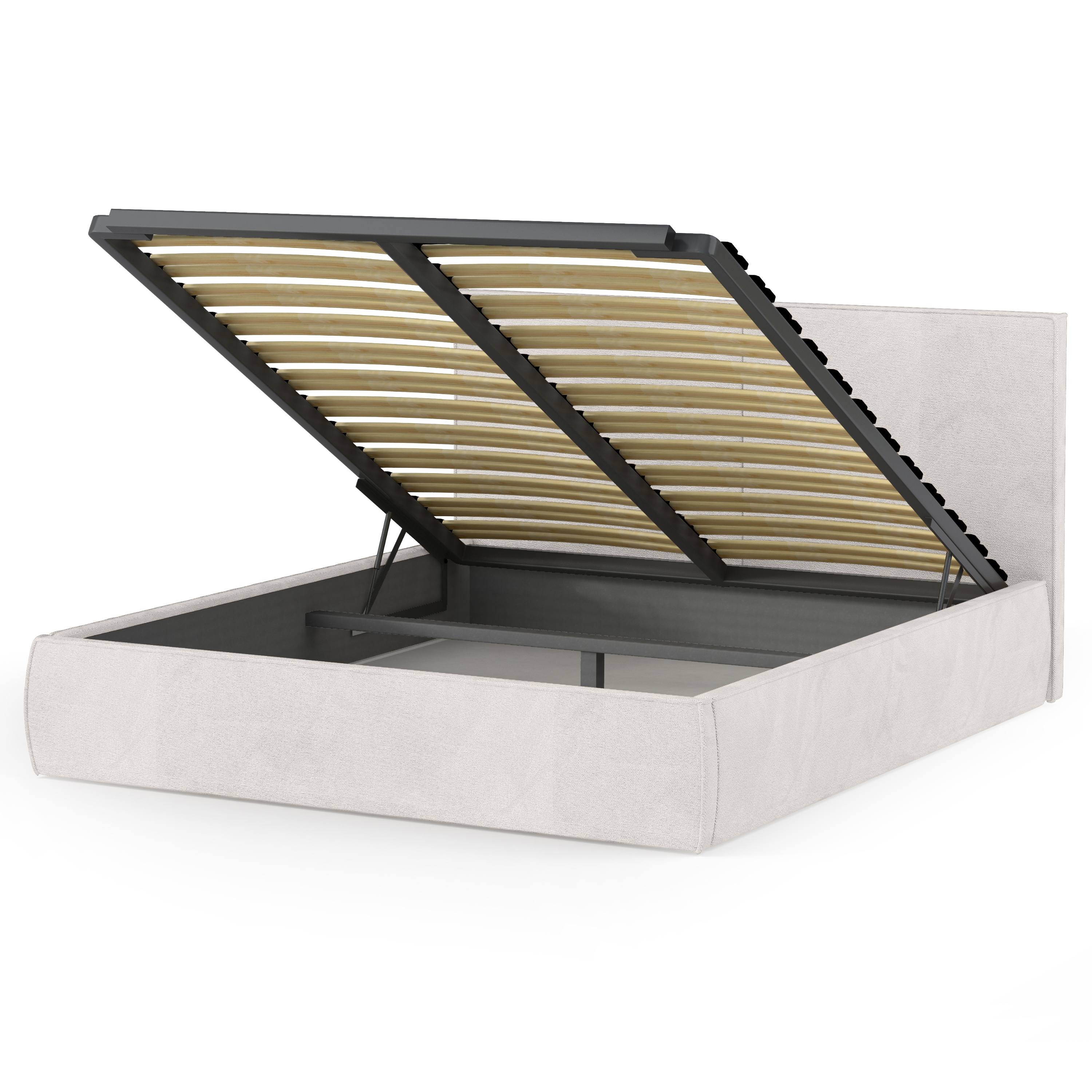 Posteľ je dodávaná vrátane lamelového roštu, matrace je však potrebné dokúpiť samostatne. Konštrukcia ponúka aj praktický úložný priestor v ráme postele, ktorý je ľahko prístupný vďaka čelnému výklopu kovového rámu s roštom.