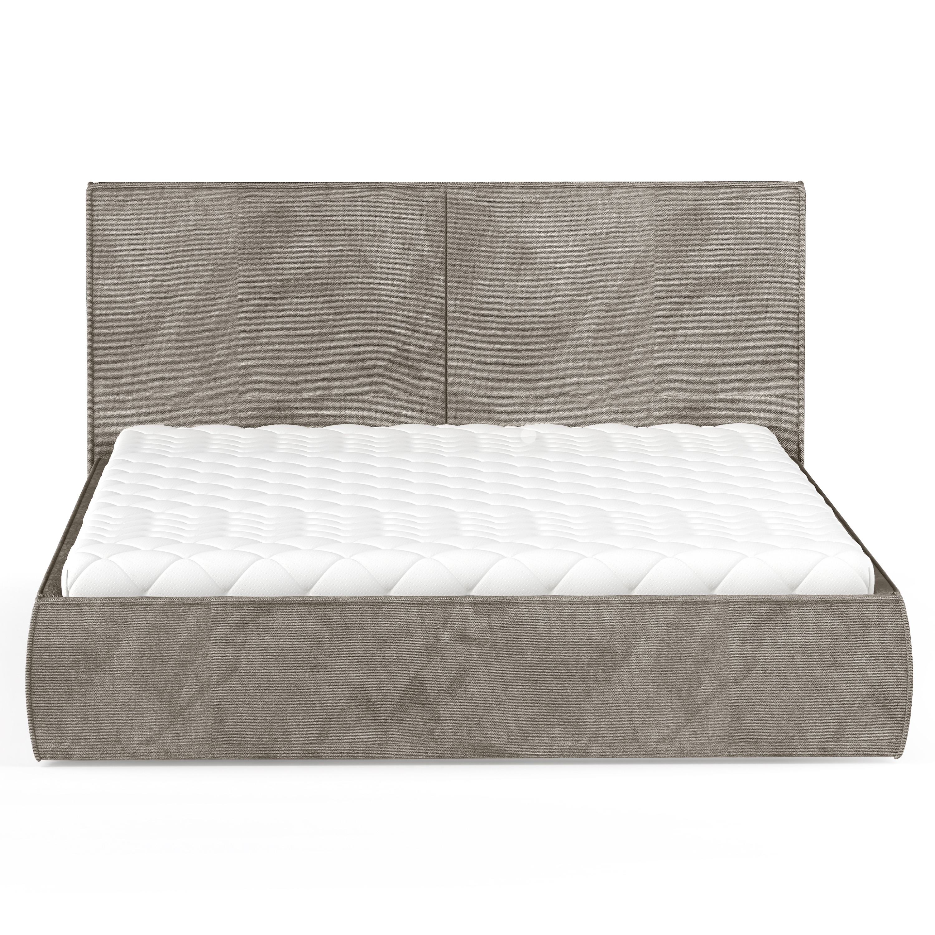 Jej drevená konštrukcia je čalúnená na dotyk príjemnou tkaninou zamatového typu s viditeľnou štruktúrou. Zadná strana postele však nie je potiahnutá. Posteľ je vybavená vysokým čelom, ktoré poslúži ako ideálna opora hlavy počas relaxu. Korpus je doplnený aj o drobné plastové nožičky.