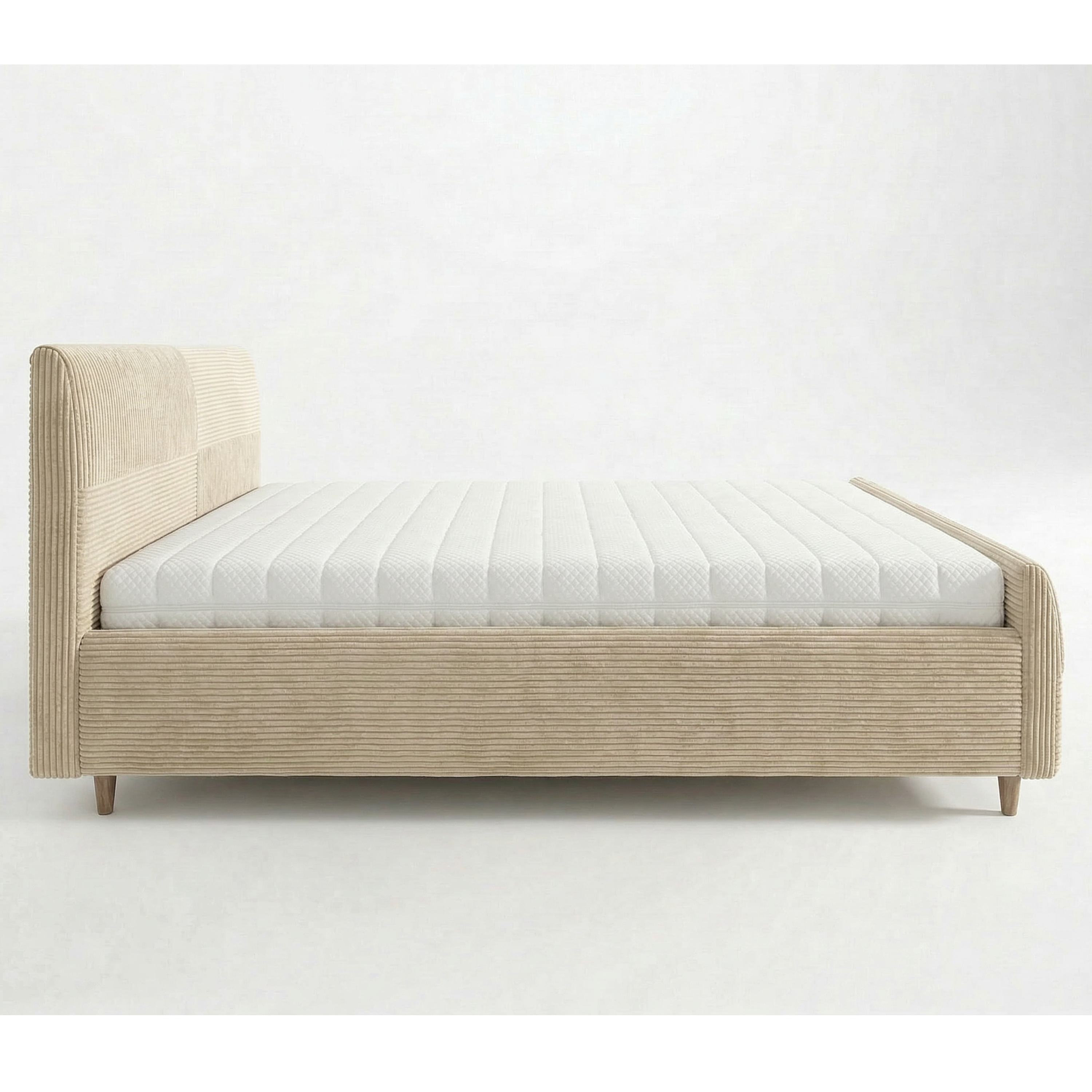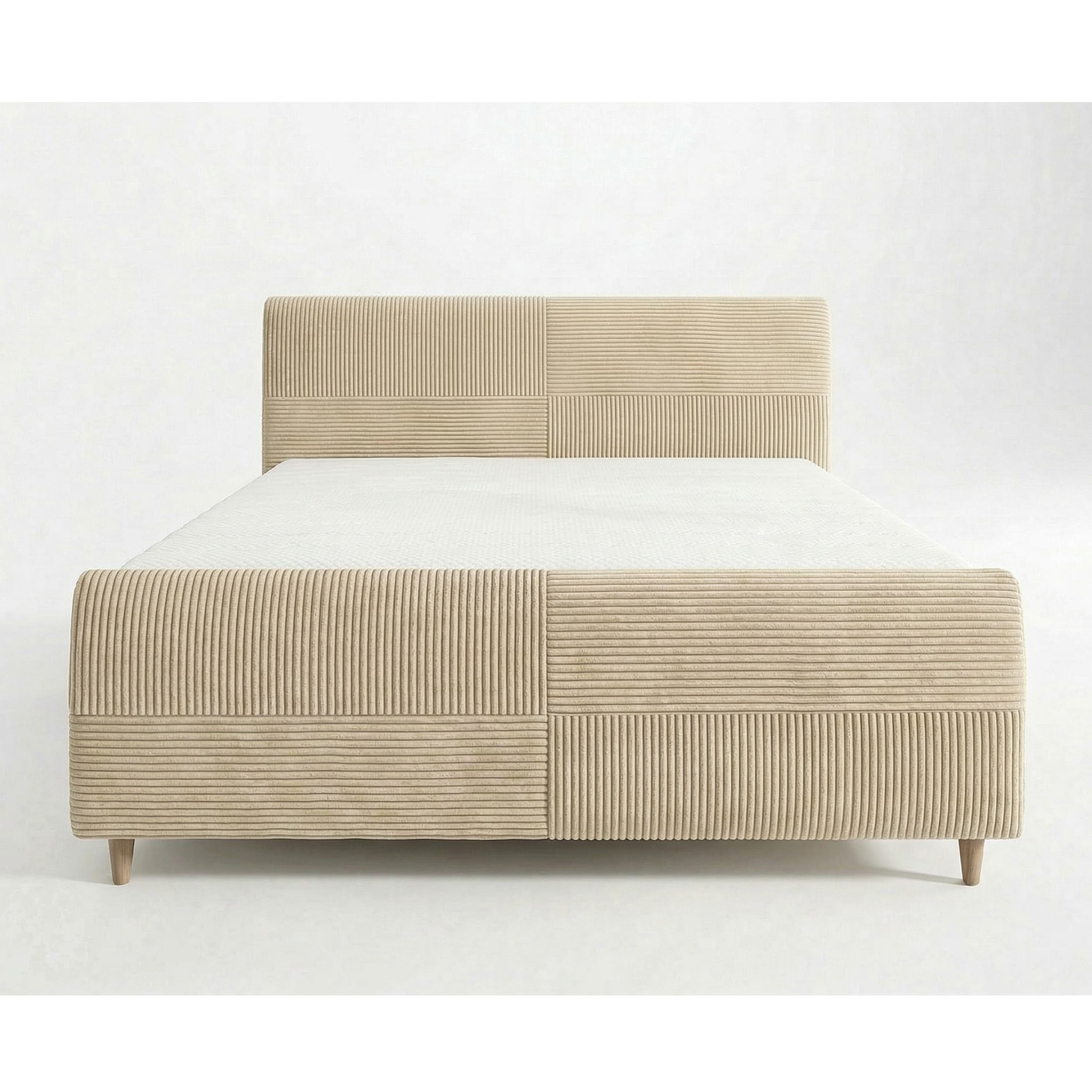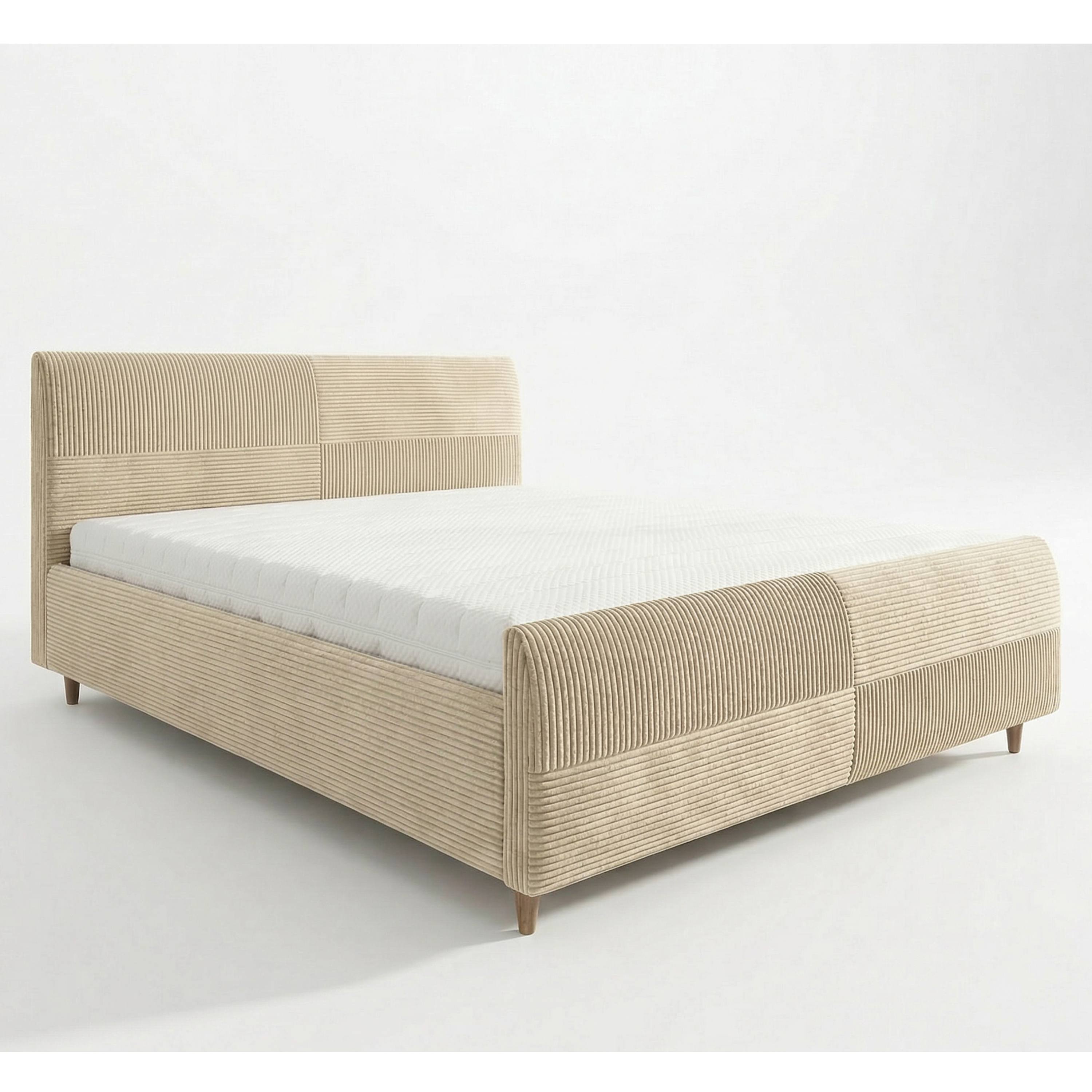 Jej konštrukcia je čalúnená na dotyk príjemnou tkaninou s rebrovaním v jednofarebnom vyhotovení. Vysoké čelo postele umožňuje dopriať si komfortné opretie počas relaxácie. Posteľ je dodávaná vrátane lamelového roštu osadeného do kovového rámu. Predný výklop potom umožňuje jednoduchý prístup do úložného priestoru.