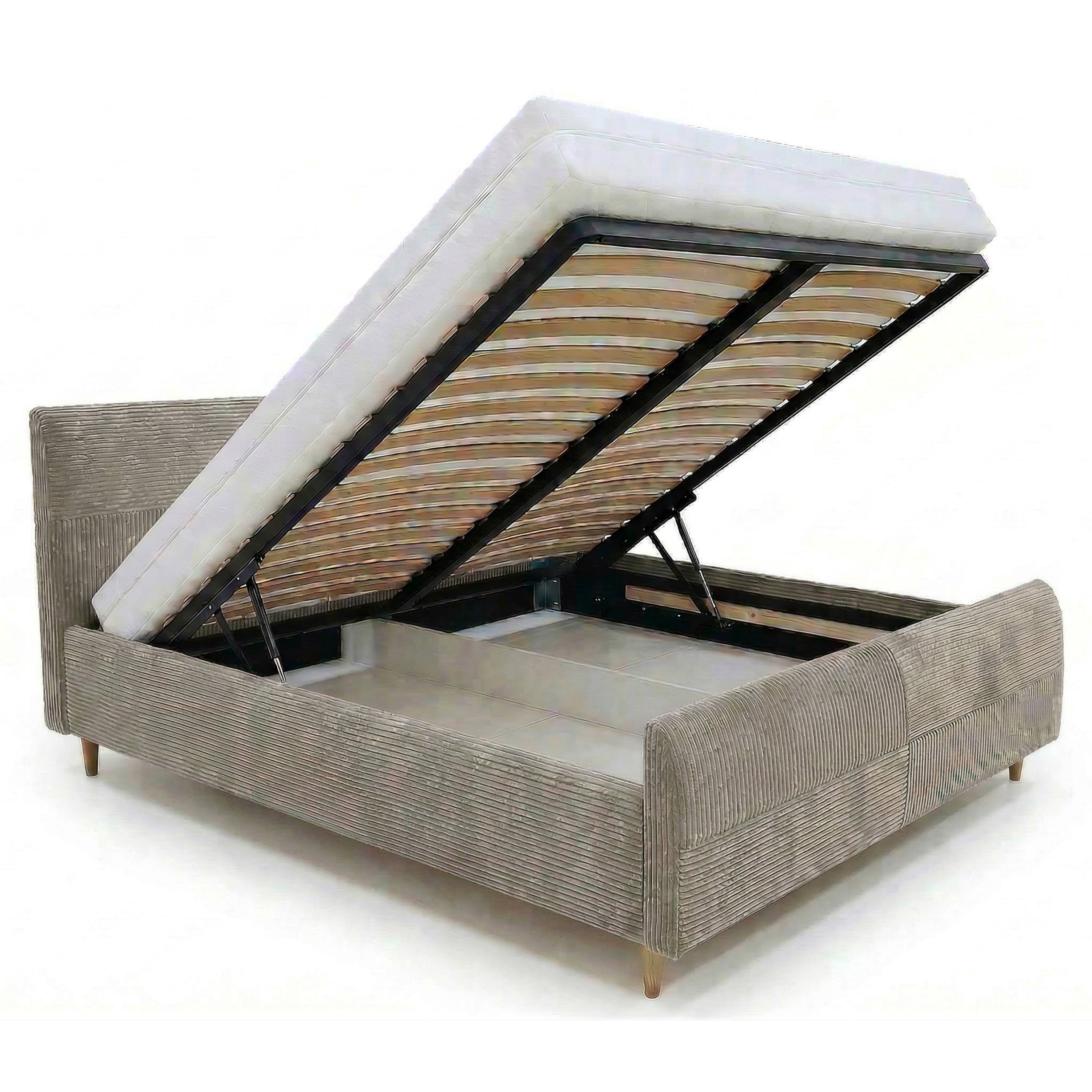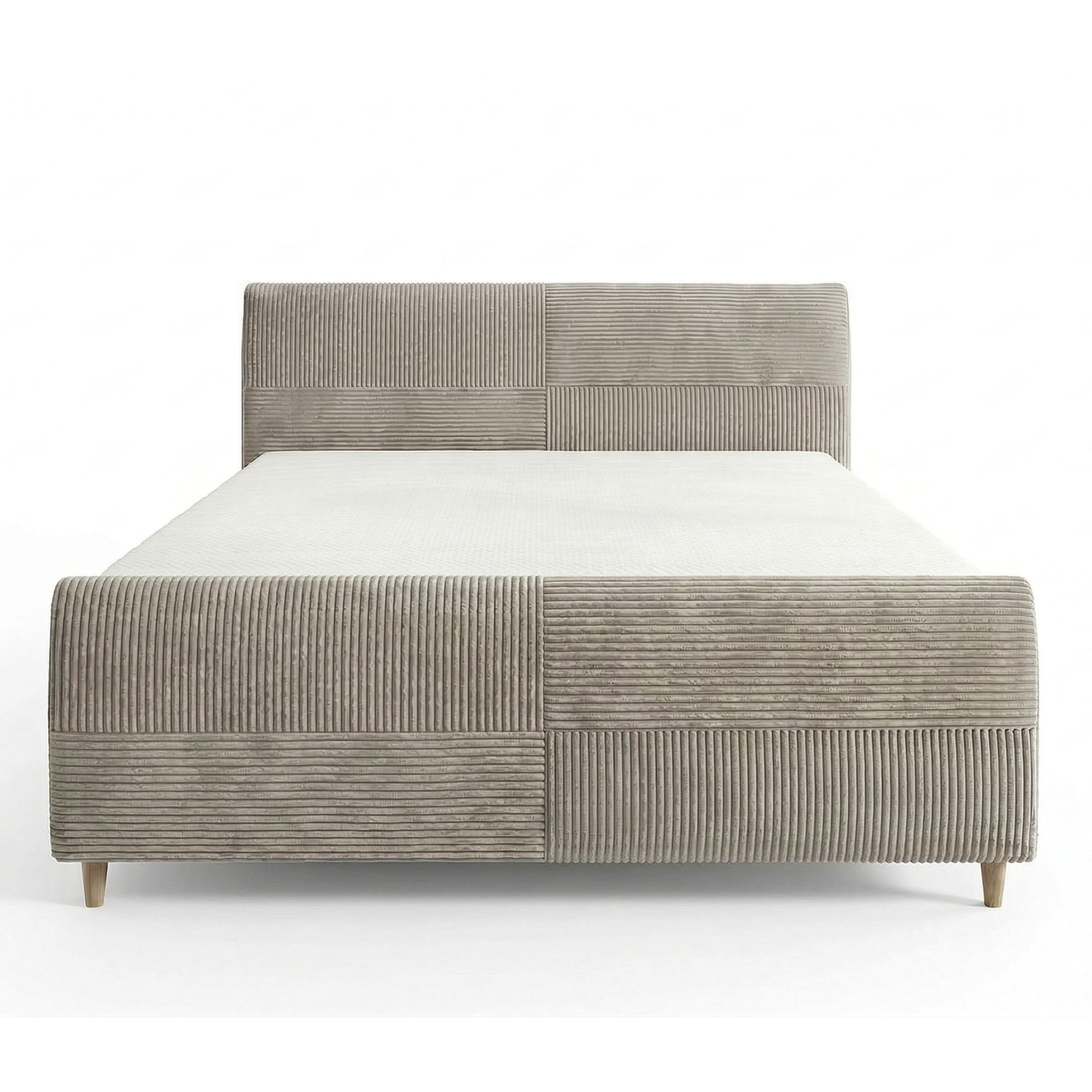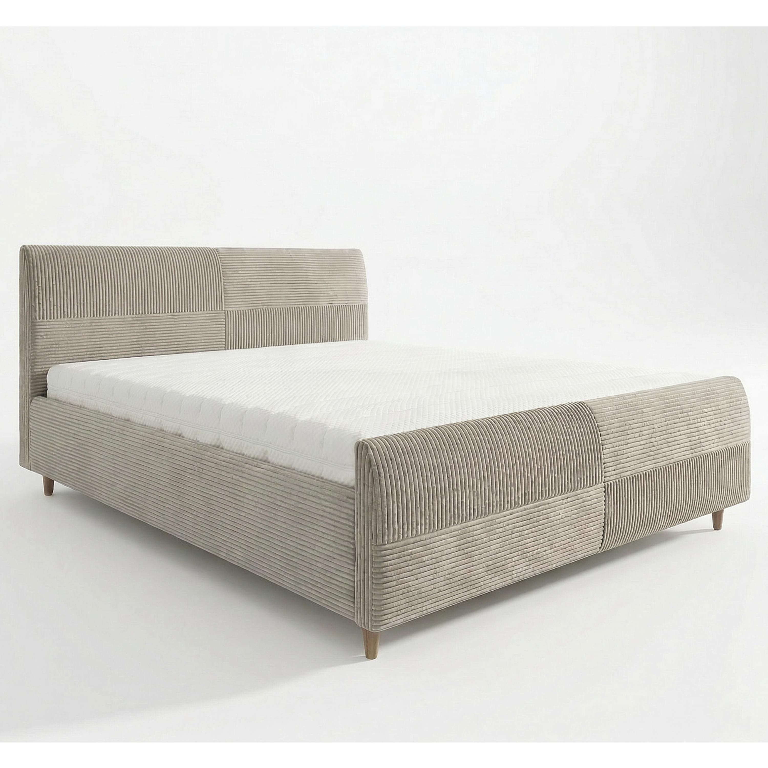 Jej konštrukcia je čalúnená na dotyk príjemnou tkaninou s rebrovaním v jednofarebnom vyhotovení. Vysoké čelo postele umožňuje dopriať si komfortné opretie počas relaxácie. Posteľ je dodávaná vrátane lamelového roštu osadeného do kovového rámu. Predný výklop potom umožňuje jednoduchý prístup do úložného priestoru.