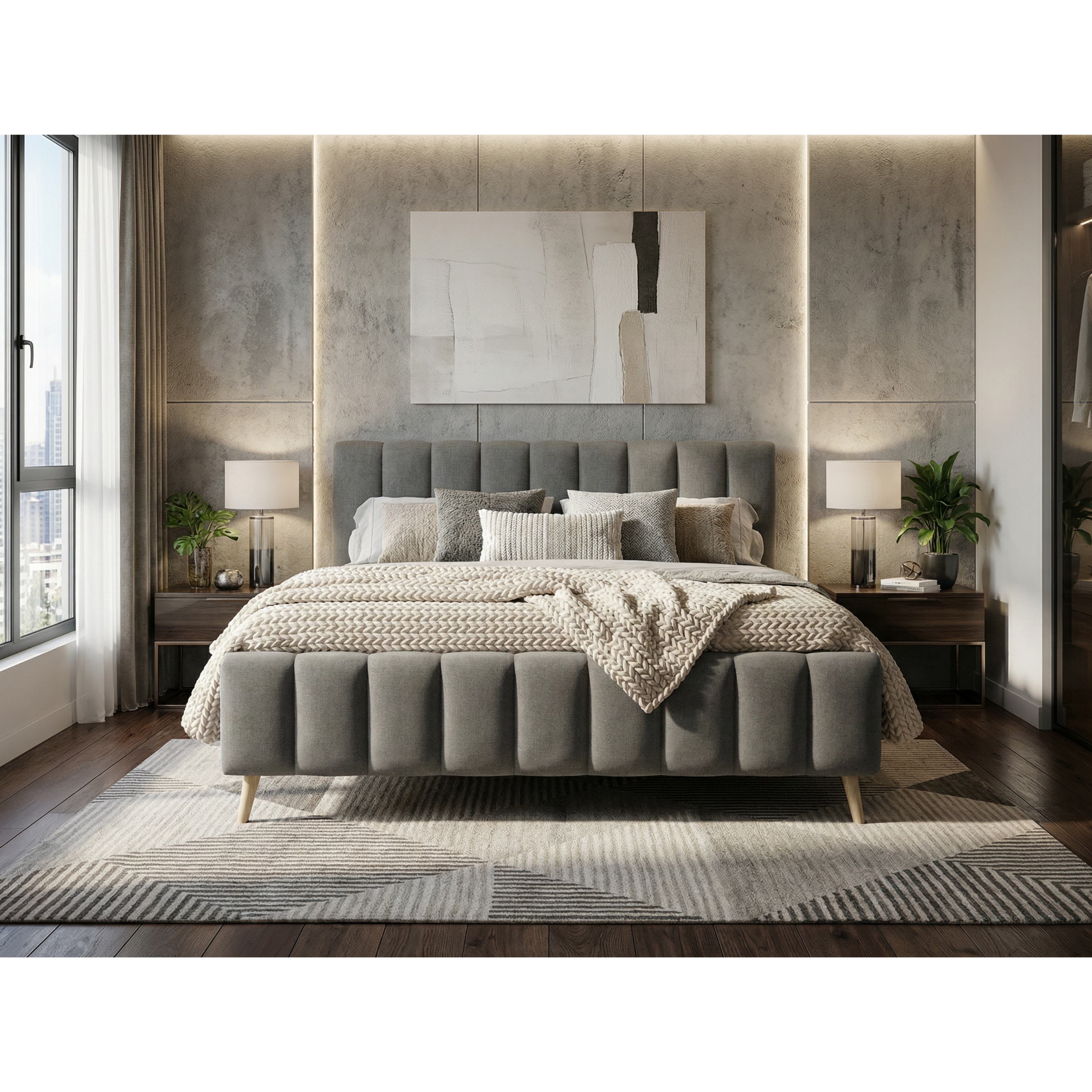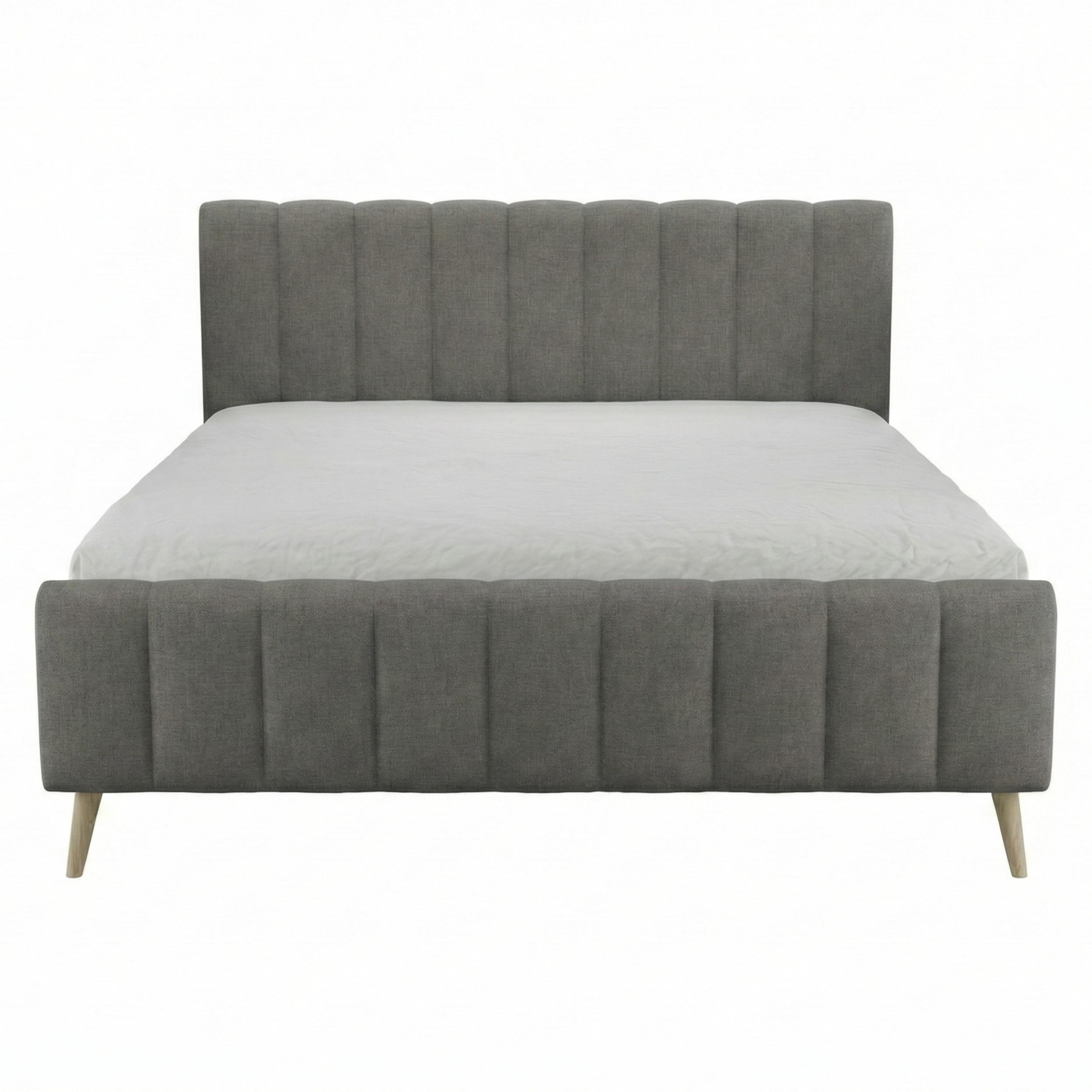 Jej konštrukcia je čalúnená na dotyk príjemnou tkaninou v neutrálnom farebnom vyhotovení, ktoré ľahko zladíte s ďalším vybavením miestnosti. Poťah je navyše v oblasti oboch čiel doplnený o dekoratívne prešívanie. Posteľ je dodávaná vrátane roštu, matrac je však potrebné dokúpiť samostatne. Na skladovanie lôžkovín a ďalších predmetov slúži integrovaný úložný priestor. Celkový vzhľad podčiarkujú drevené nohy v prírodnom odtieni, ktoré zároveň uľahčujú upratovanie pod nábytkom.