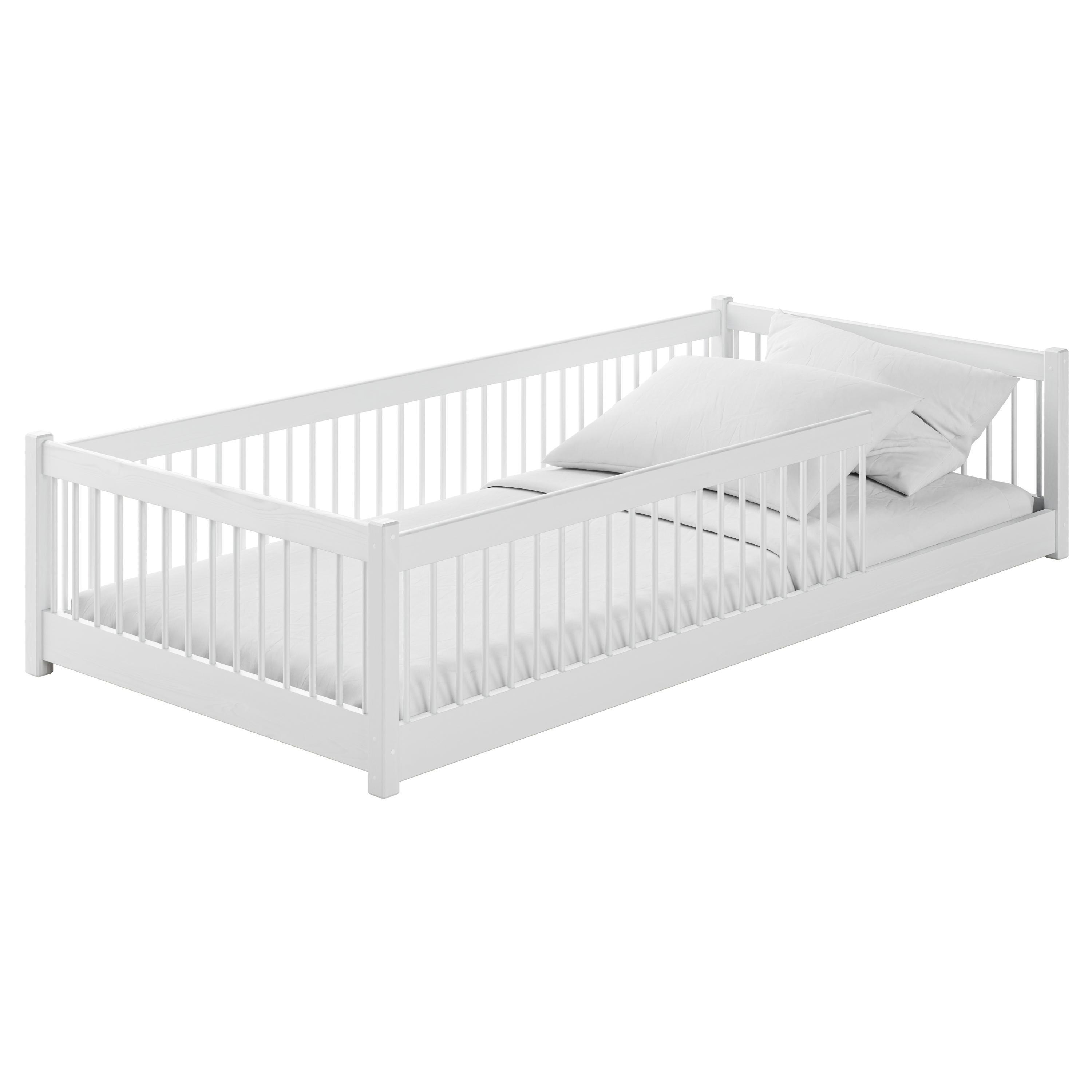 Vyrobená je z kvalitného borovicového dreva, ktoré je ošetrené lakovaným povrchom na zvýšenie odolnosti a dlhej životnosti. Vďaka bezpečnostným zábranám je zaistená ochrana vášho dieťaťa nielen počas spánku, ale aj počas hry. Posteľ má nízku konštrukciu, čo umožňuje deťom samostatne vstávať a uľahčuje ich pohyb v priestore.