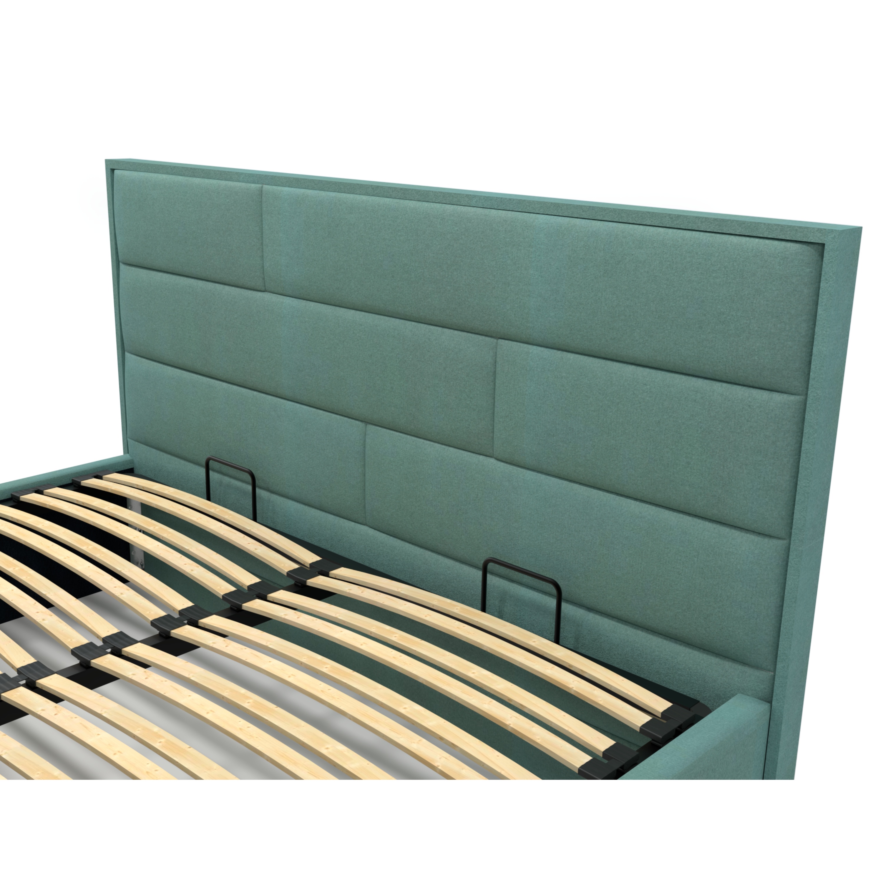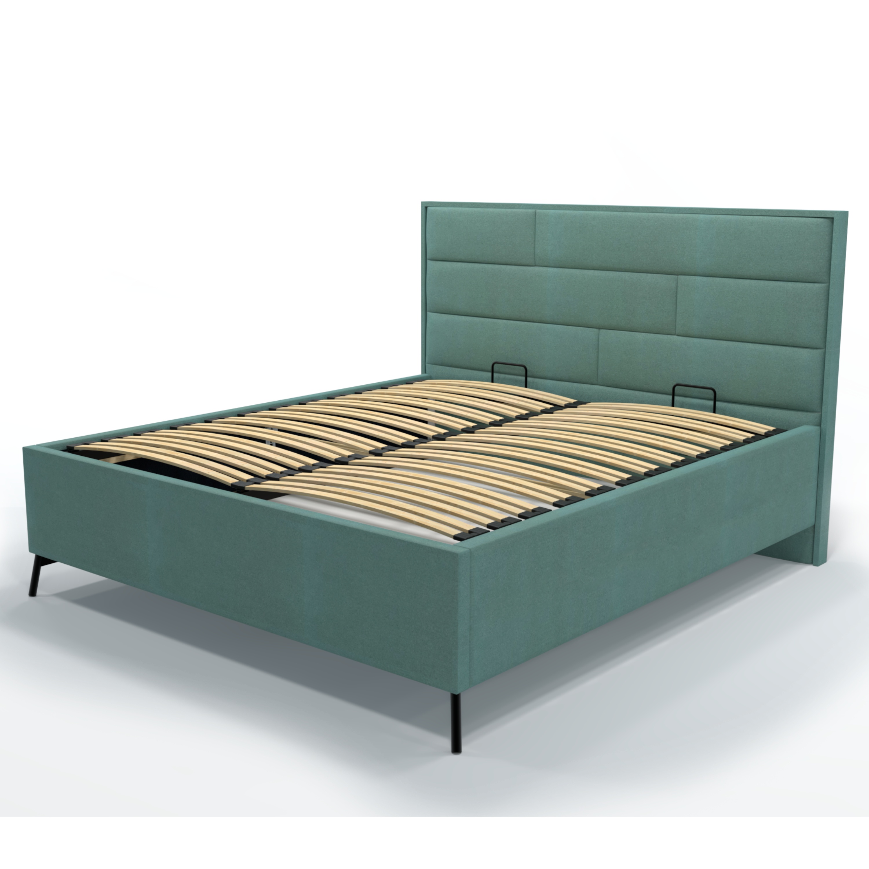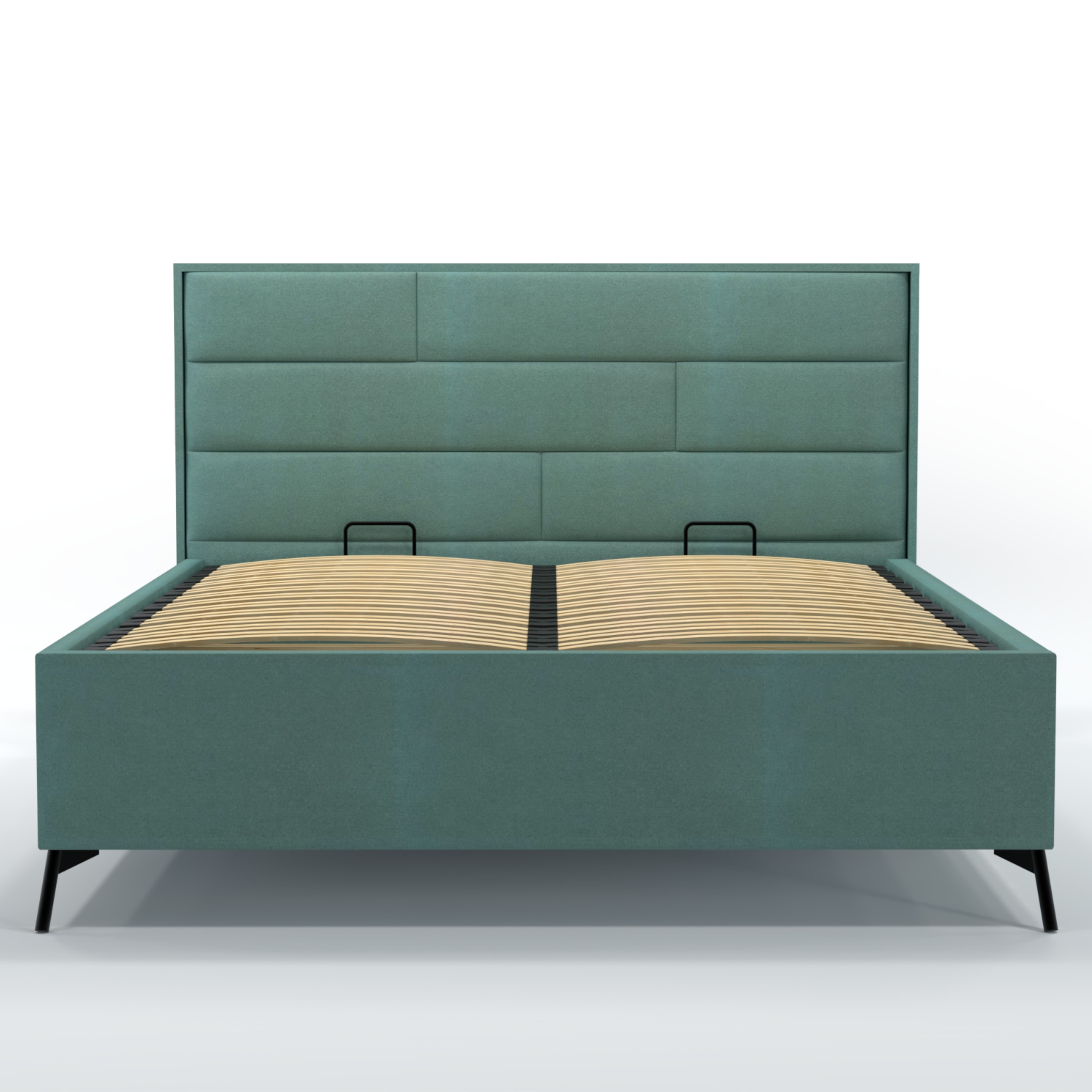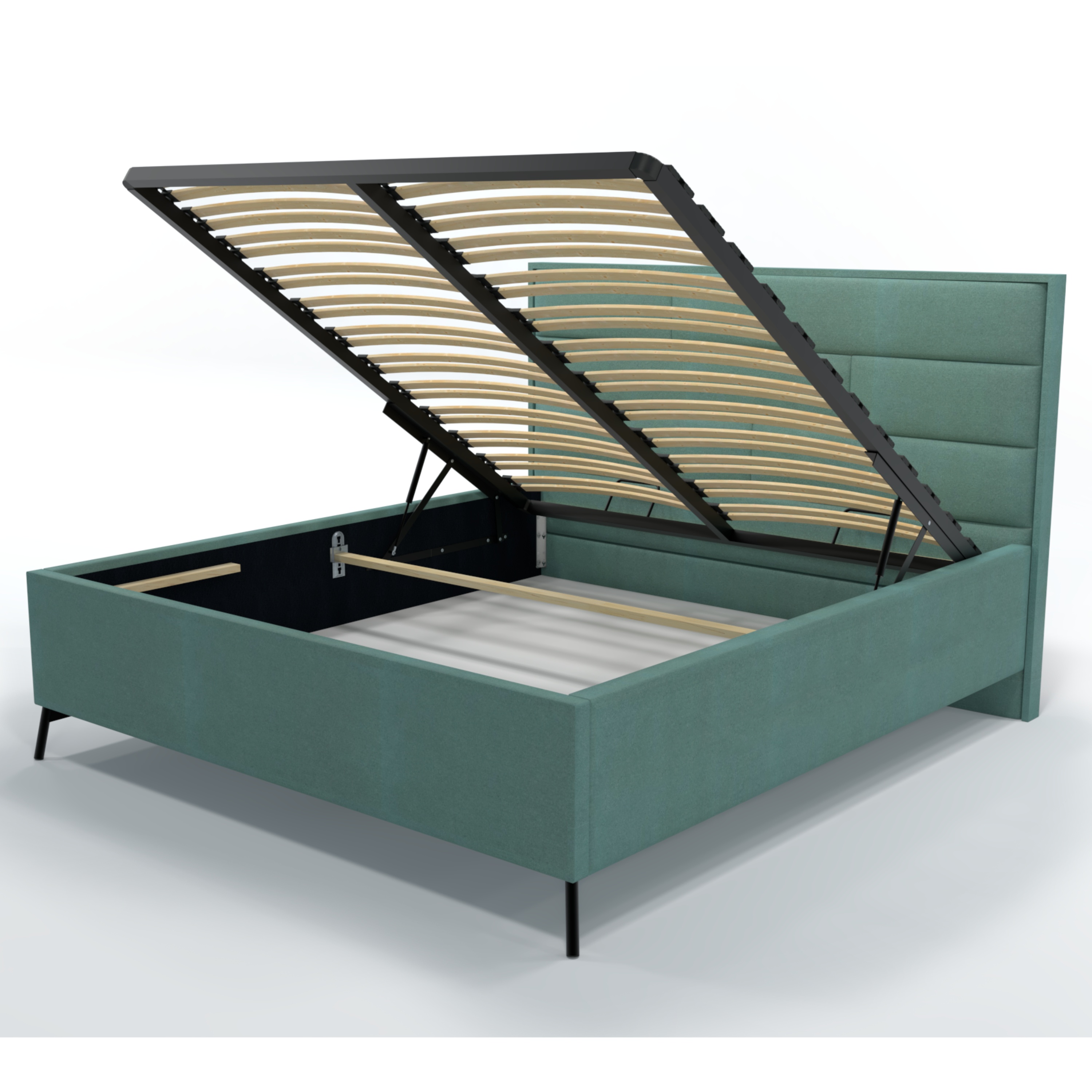 Dominantným prvkom postele je vysoké čelo, ktoré okrem estetickej funkcie umožňuje dopriať si komfortné opretie počas relaxácie. Posteľ je dodávaná vrátane lamelového roštu osadeného v kovovom ráme. Predný výklop následne umožňuje jednoduchý prístup do úložného priestoru pod ložnou plochou.
