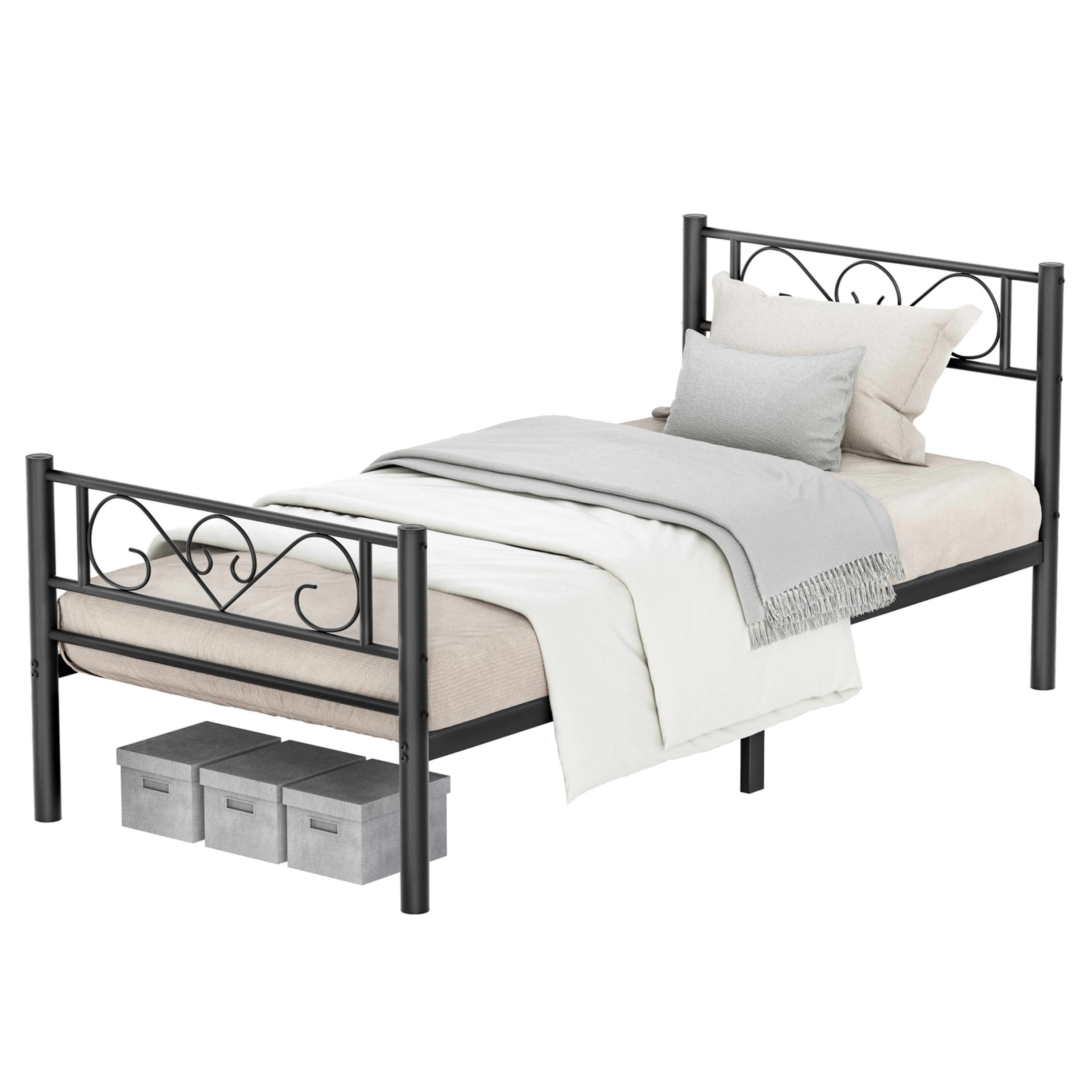 Jednolôžková posteľ TOX s rozmerom 90x190 cm v klasickom nadčasovom štýle zaujme jednoduchým kovovým vyhotovením a jemnými dekoratívnymi prvkami na čelách, ktoré dodávajú celku ľahko romantický nádych. Vďaka kompaktným rozmerom je ideálnou voľbou do menších spální alebo študentských izieb.