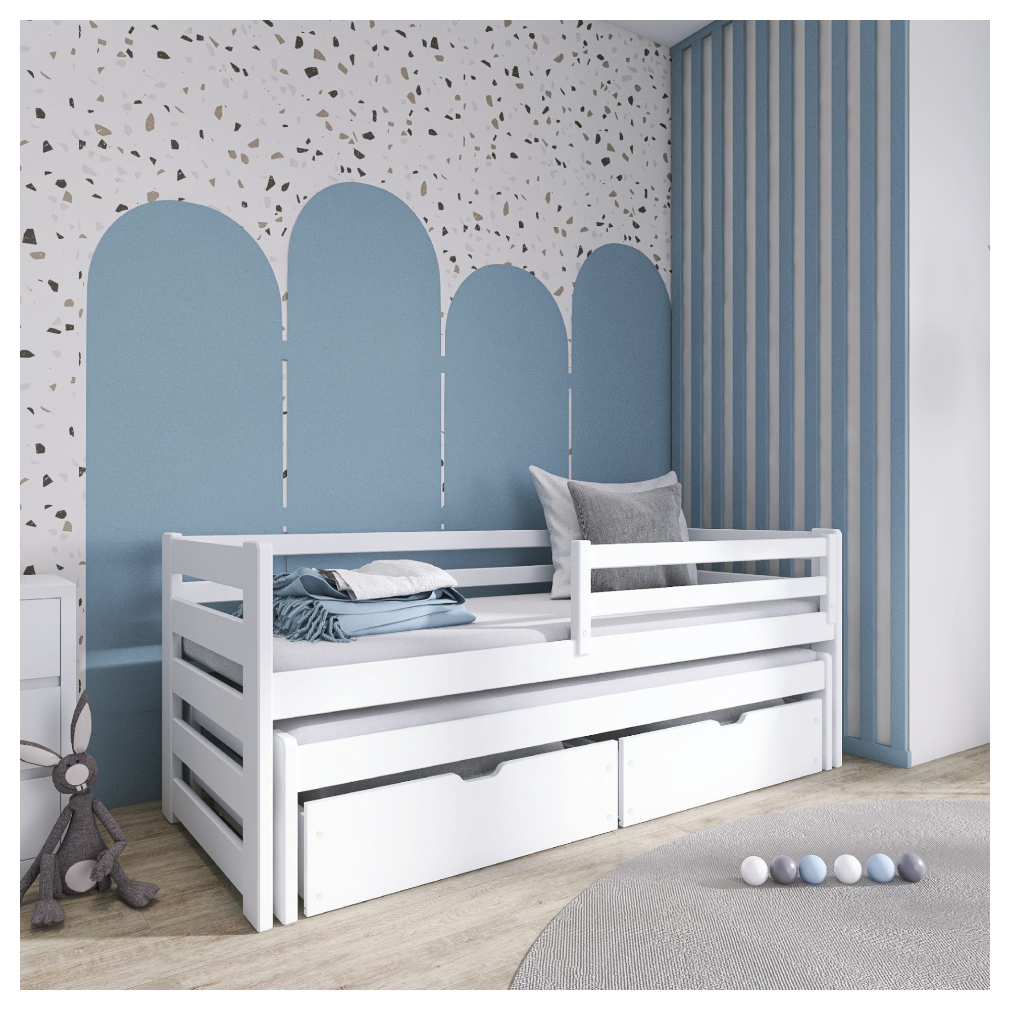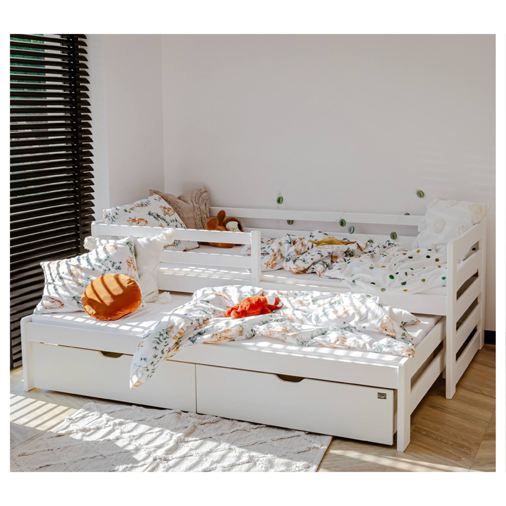 Posteľ s výsuvným lôžkom RHYS - biela, 90x190 cm