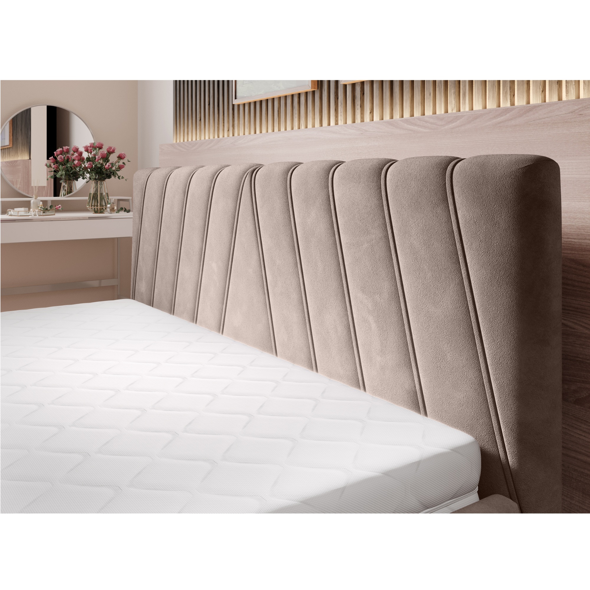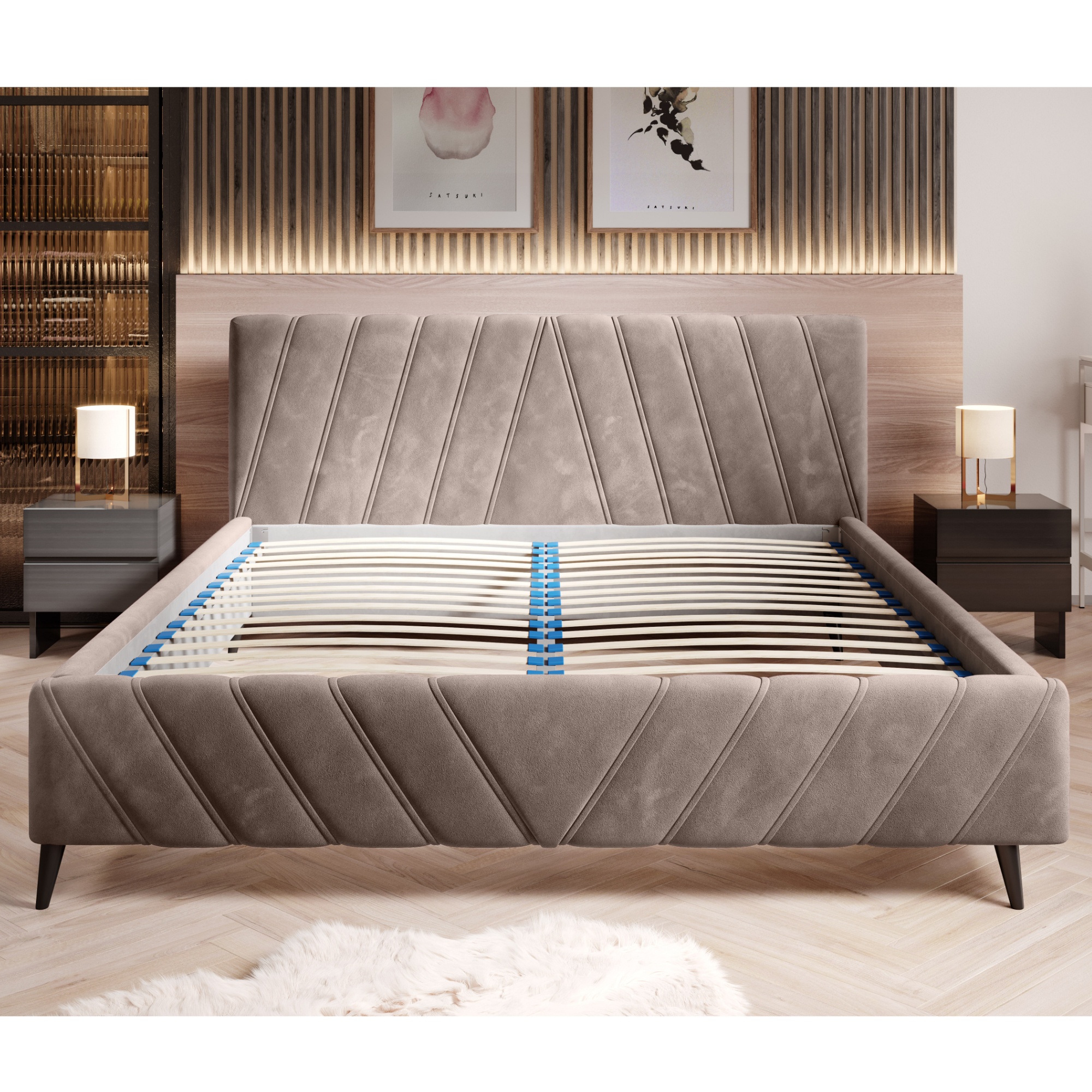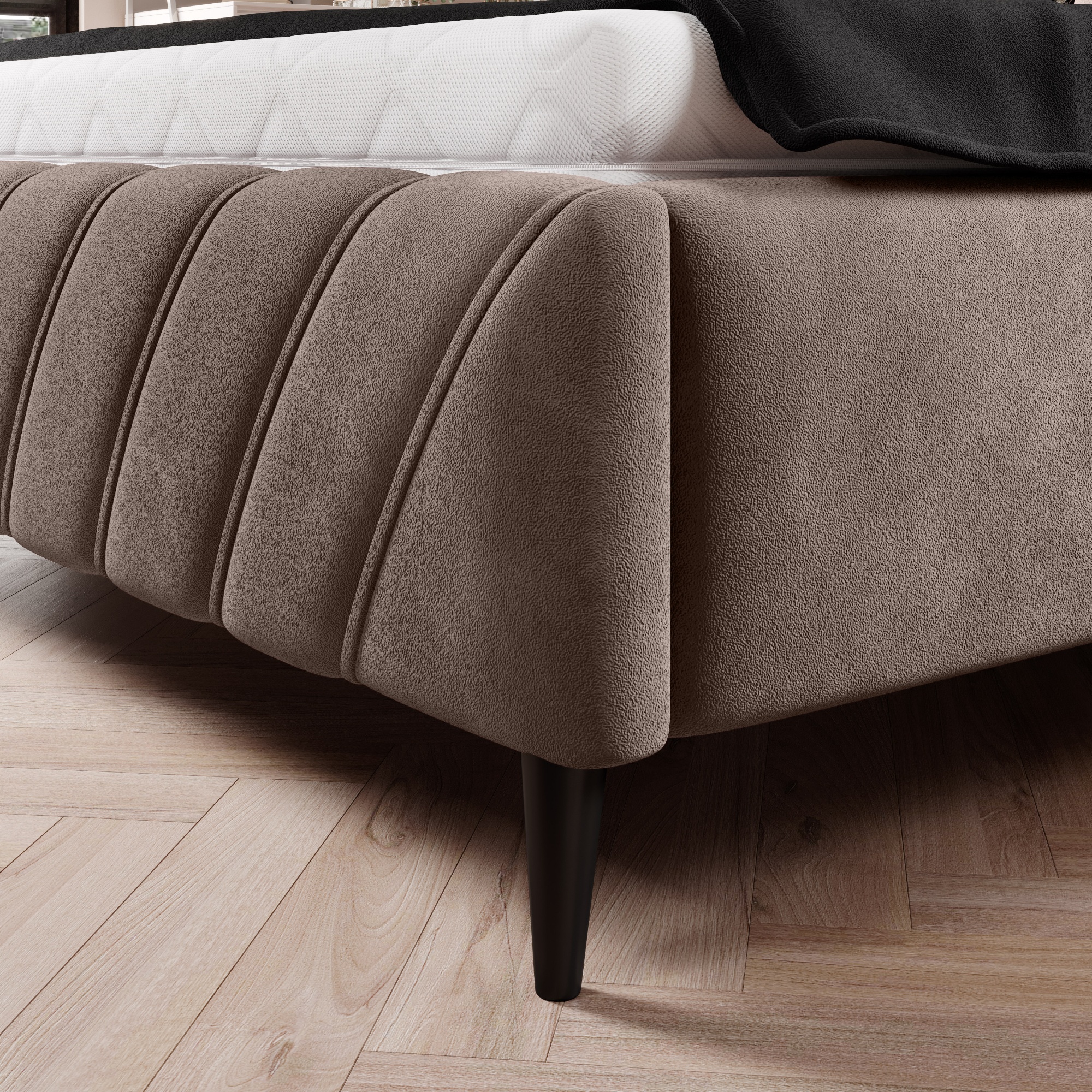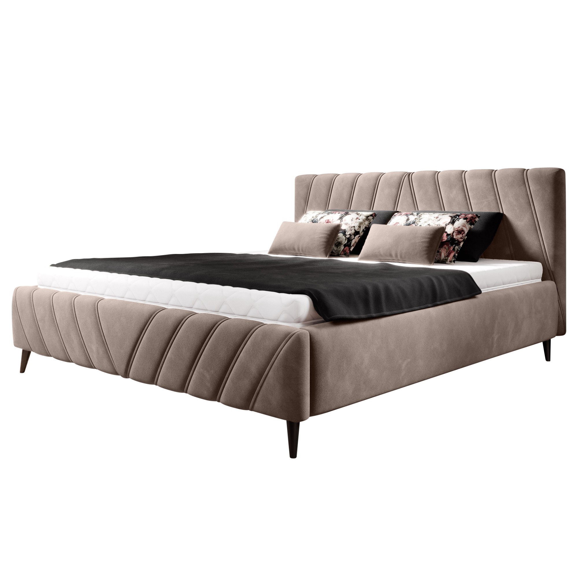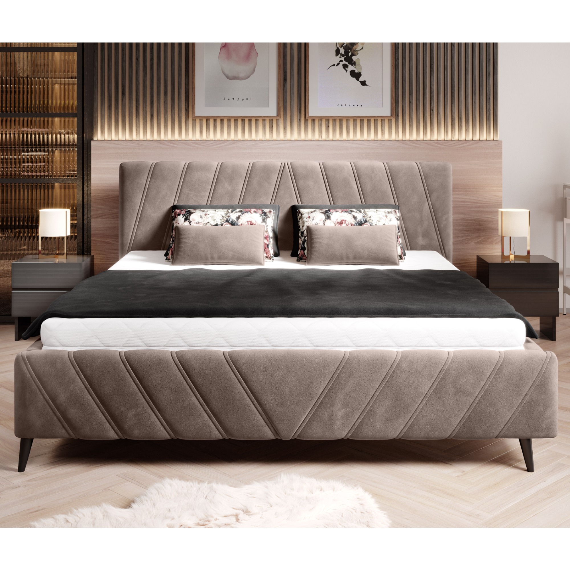 Dvojlôžková posteľ TIA predstavuje kombináciu moderného dizajnu s retro nádychom a s praktickými prvkami. Posteľ je čalúnená príjemnou látkou. Čelo postele je elegantne prešívané a ponúka možnosť sa pohodlne oprieť. Stabilitu postele zaručujú nožičky z masívneho dreva.
