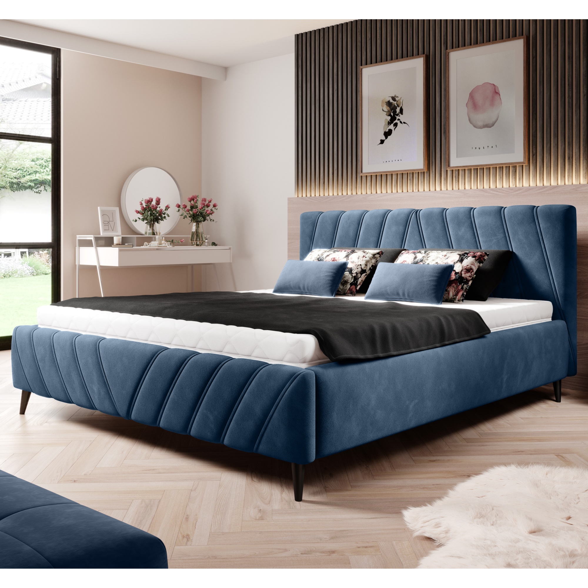 - Povrch postele: Čalúnený
