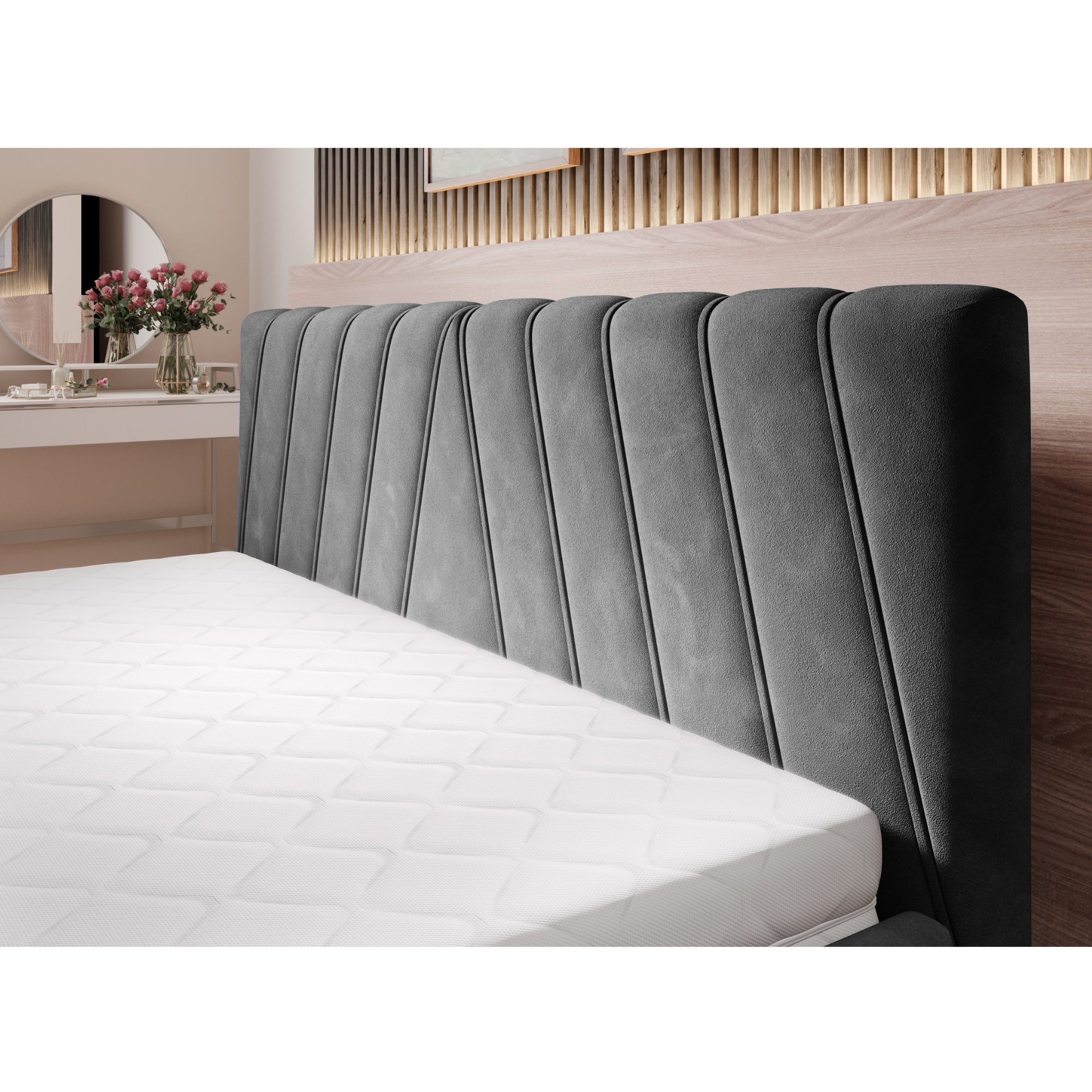 - Povrch postele: Čalúnený