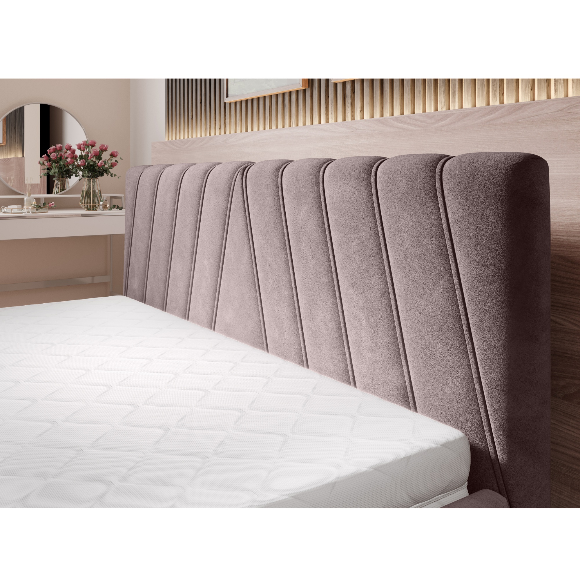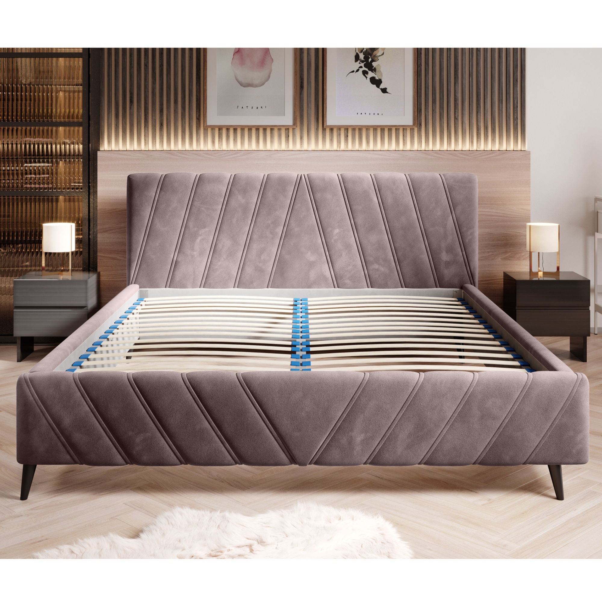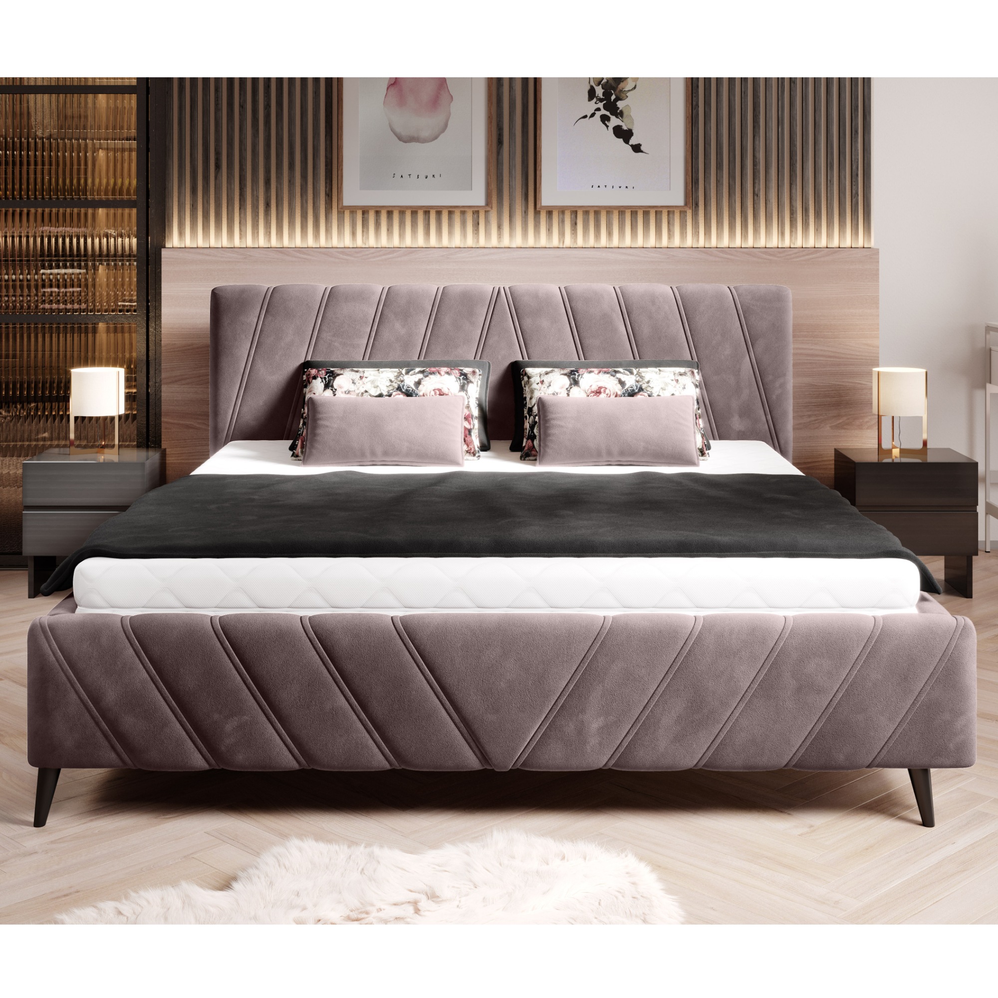 - Povrch postele: Čalúnený