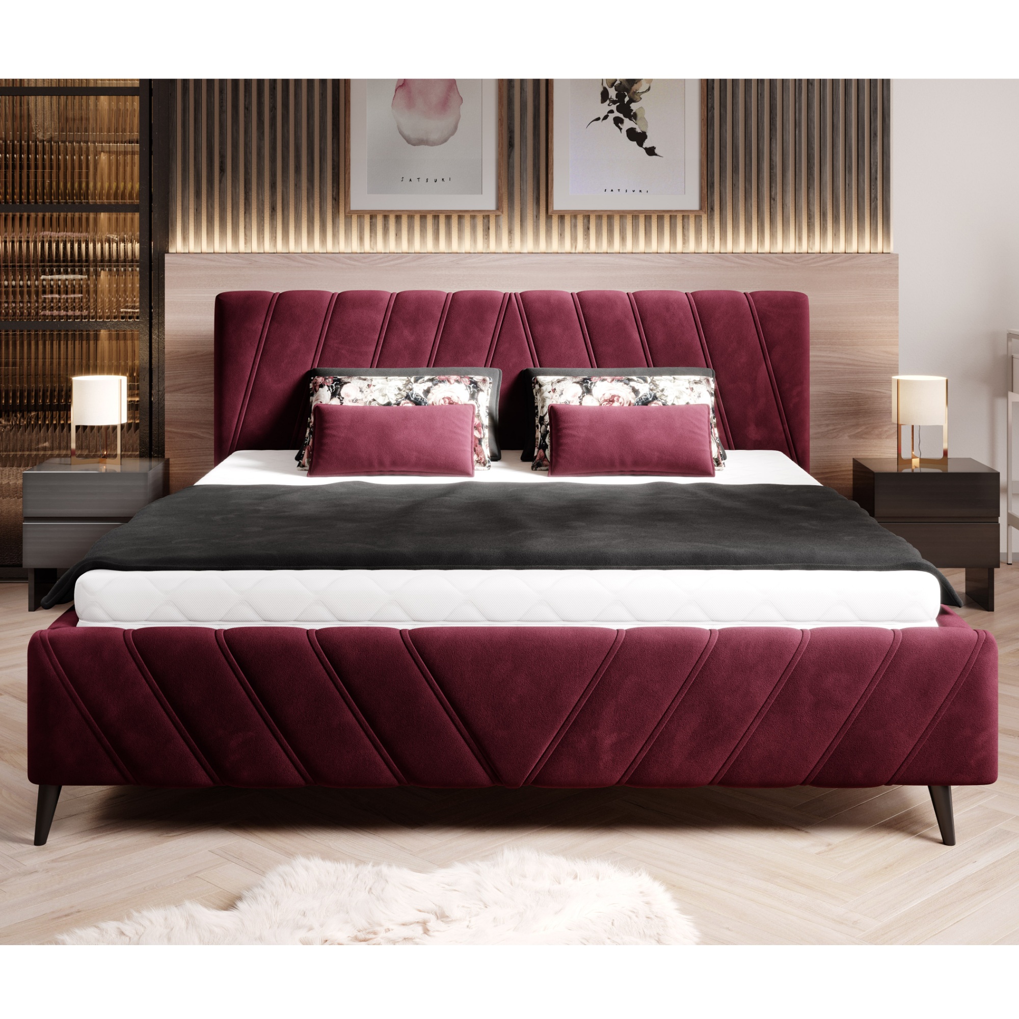 - Povrch postele: Čalúnený