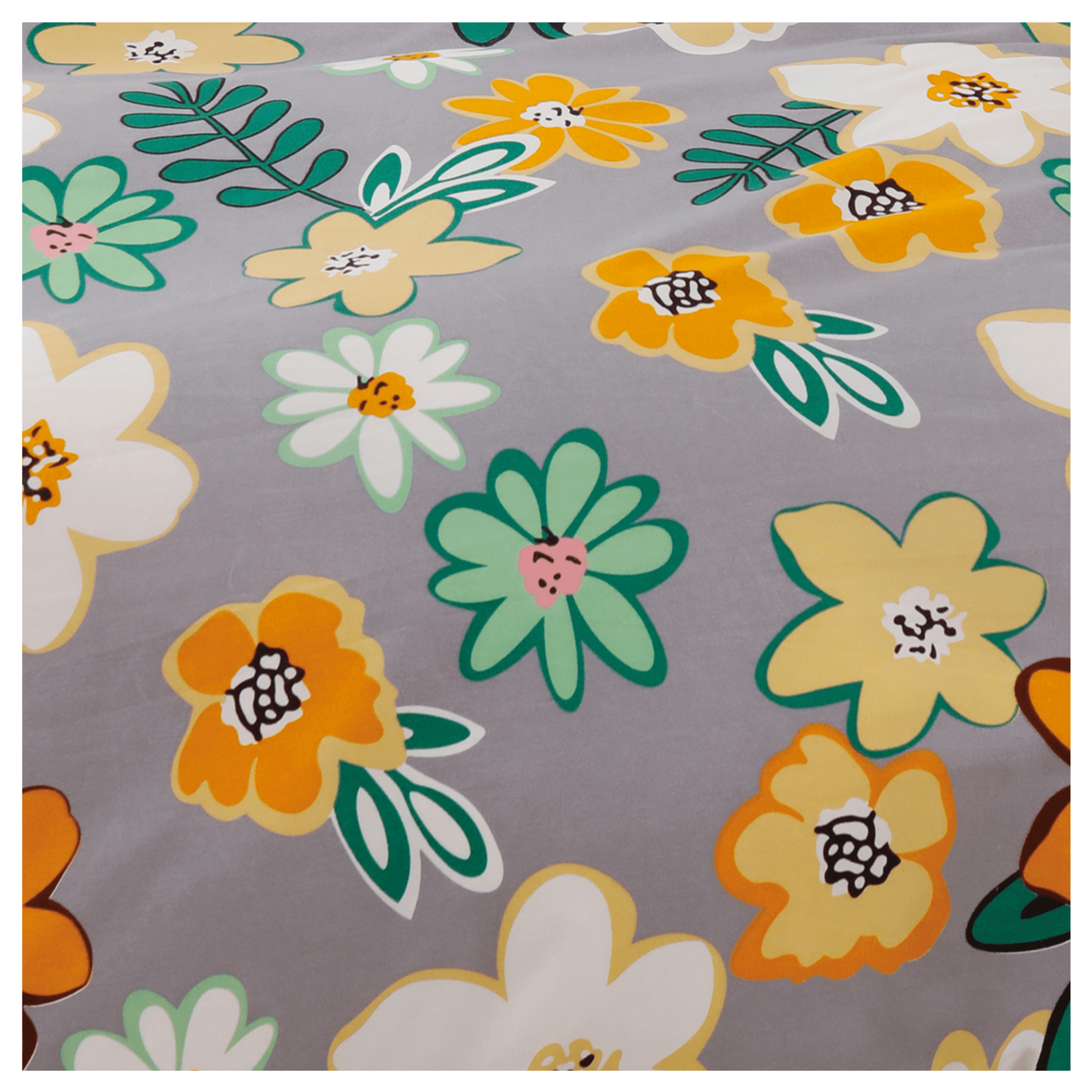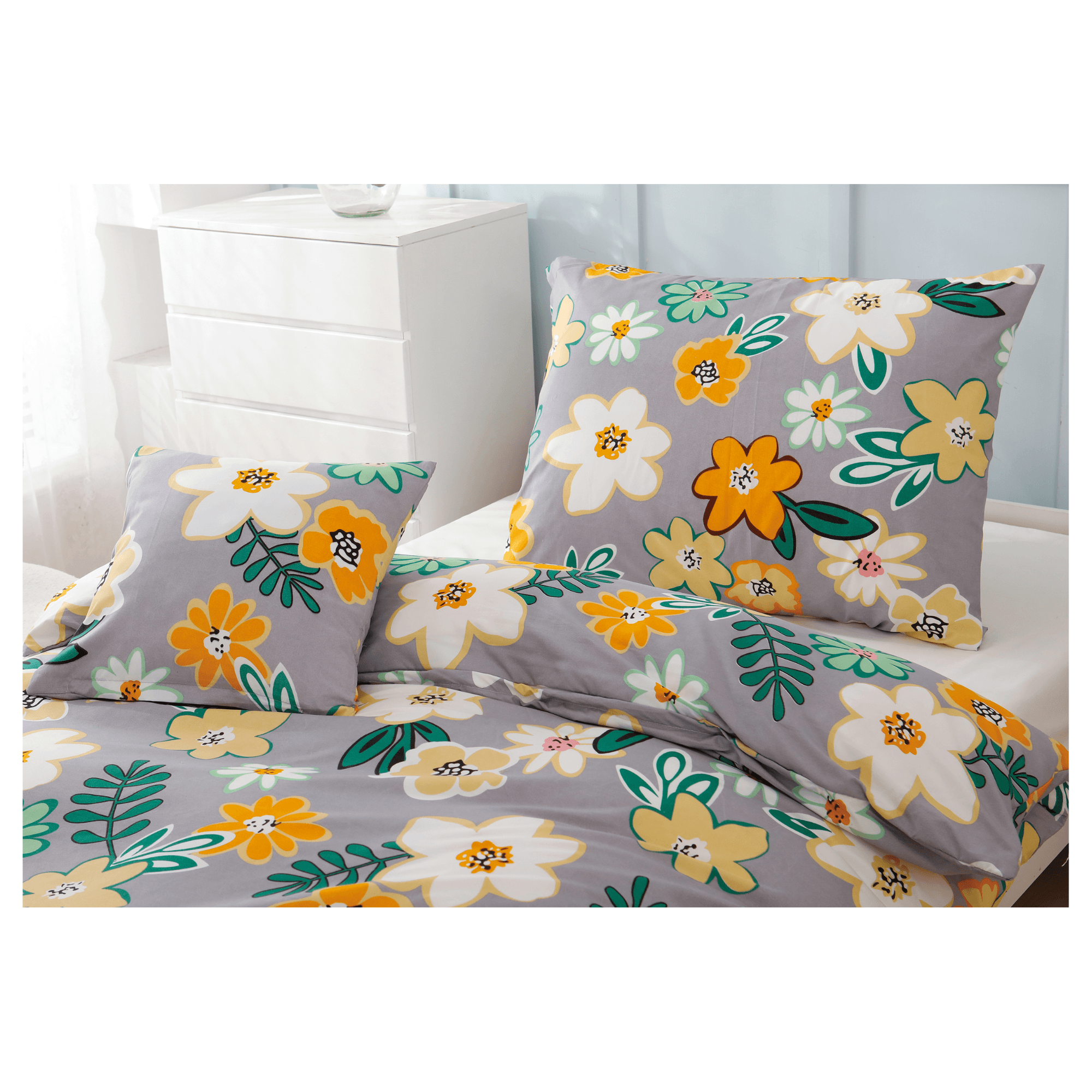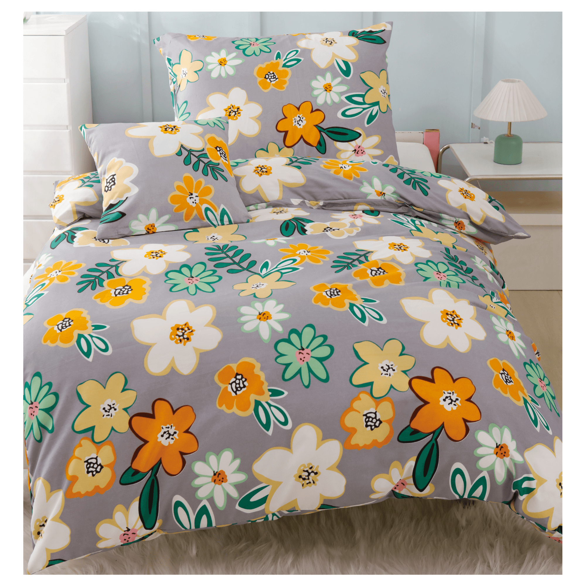 Hravá súprava posteľnej bielizne na vankúše a paplón GRACE s kvetovaným motívom zaručene poteší každú romantickú dušu. Množstvo rôzne farebných kvetov na neutrálnom podklade vyčarí úsmev na tvári dospelým aj deťom.
