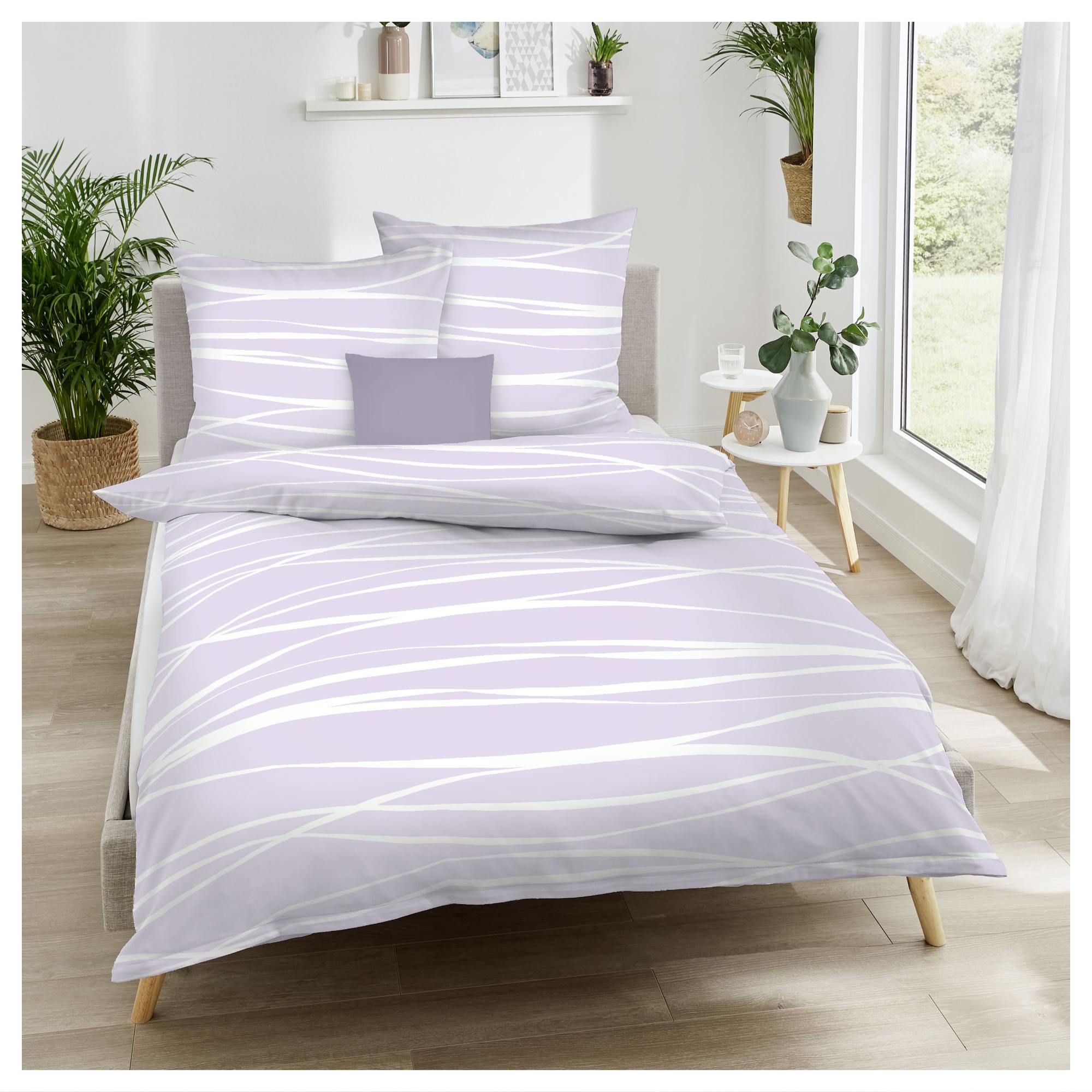 Posteľná bielizeň na vankúš a paplón MOTION COLORS vo fialovom vyhotovení s minimalistickým bielym vzorom skvele oživí takmer akúkoľvek spálňu.