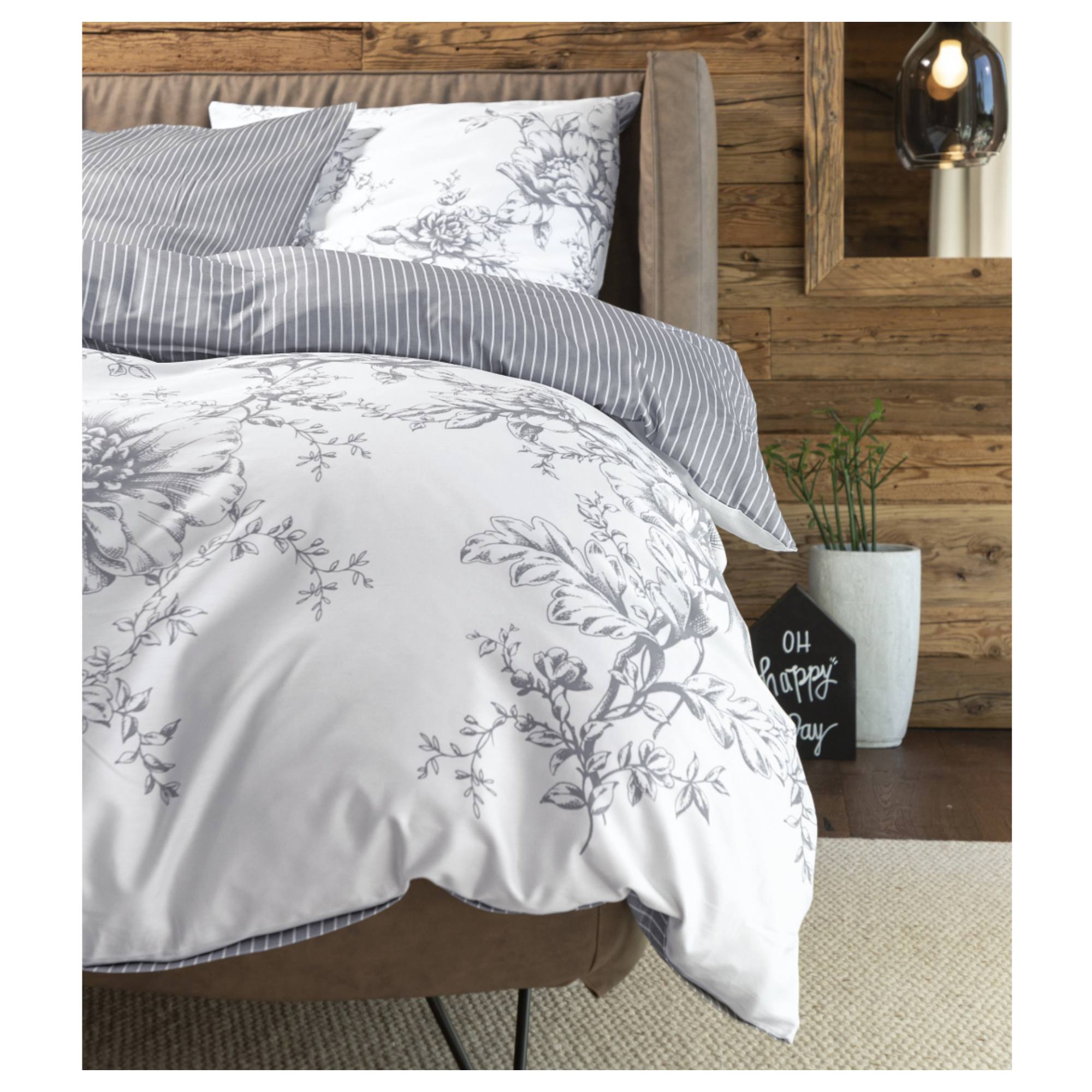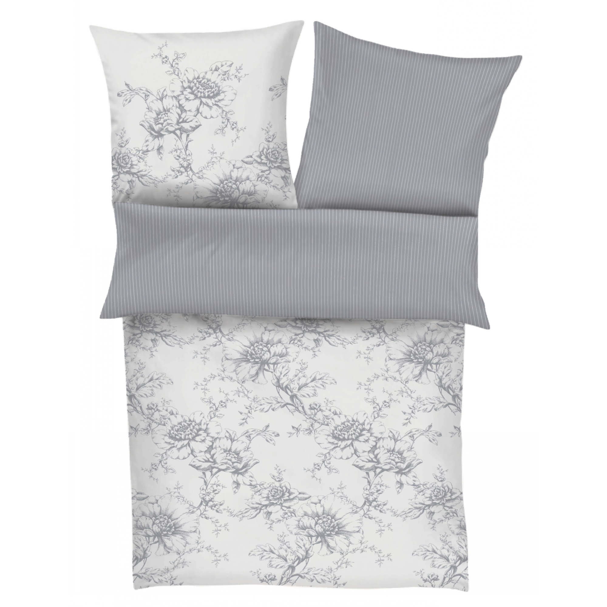 Posteľná bielizeň ZEITGEIST 5328/810 v sivobielej kombinácii a s rastlinnými motívom z jednej strany predstavuje dokonalú kombináciu štýlového vzhľadu a maximálneho pohodlia.