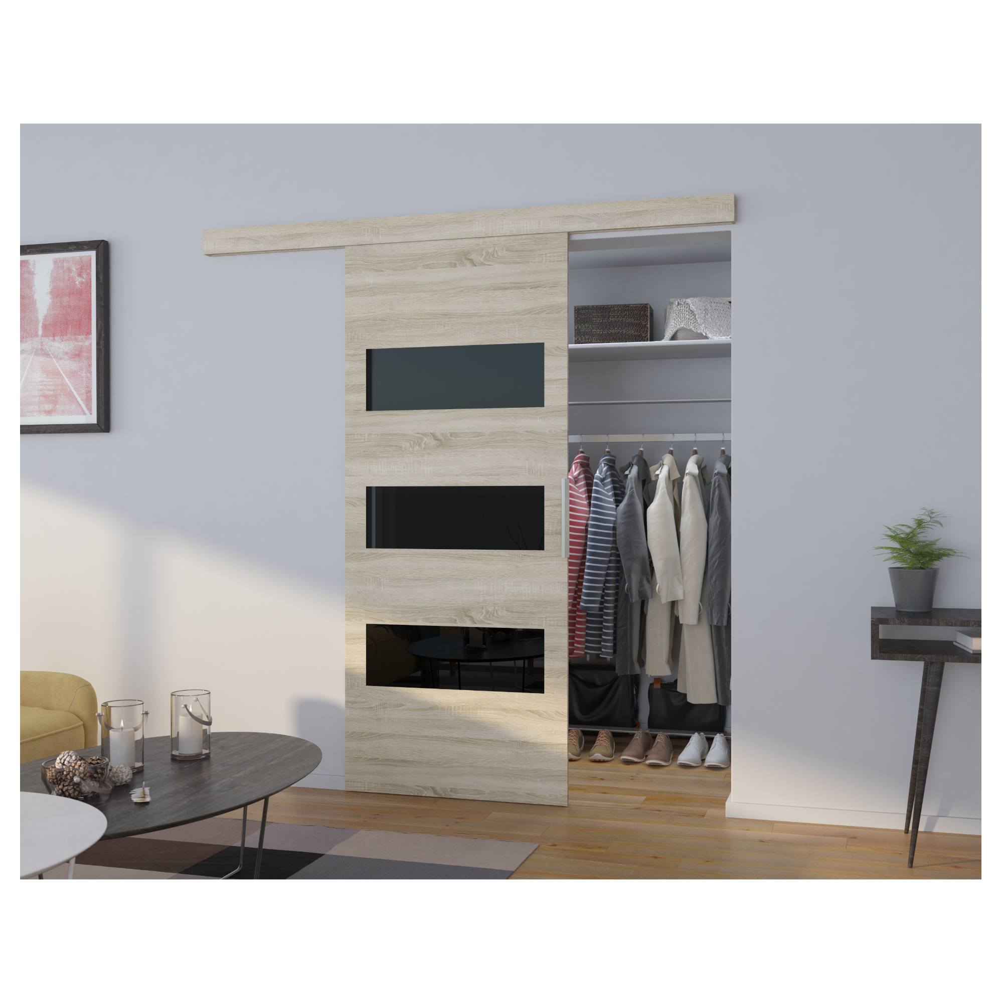 Posuvné dvere ARES 86 - dub sonoma/čierna, 86x205 cm