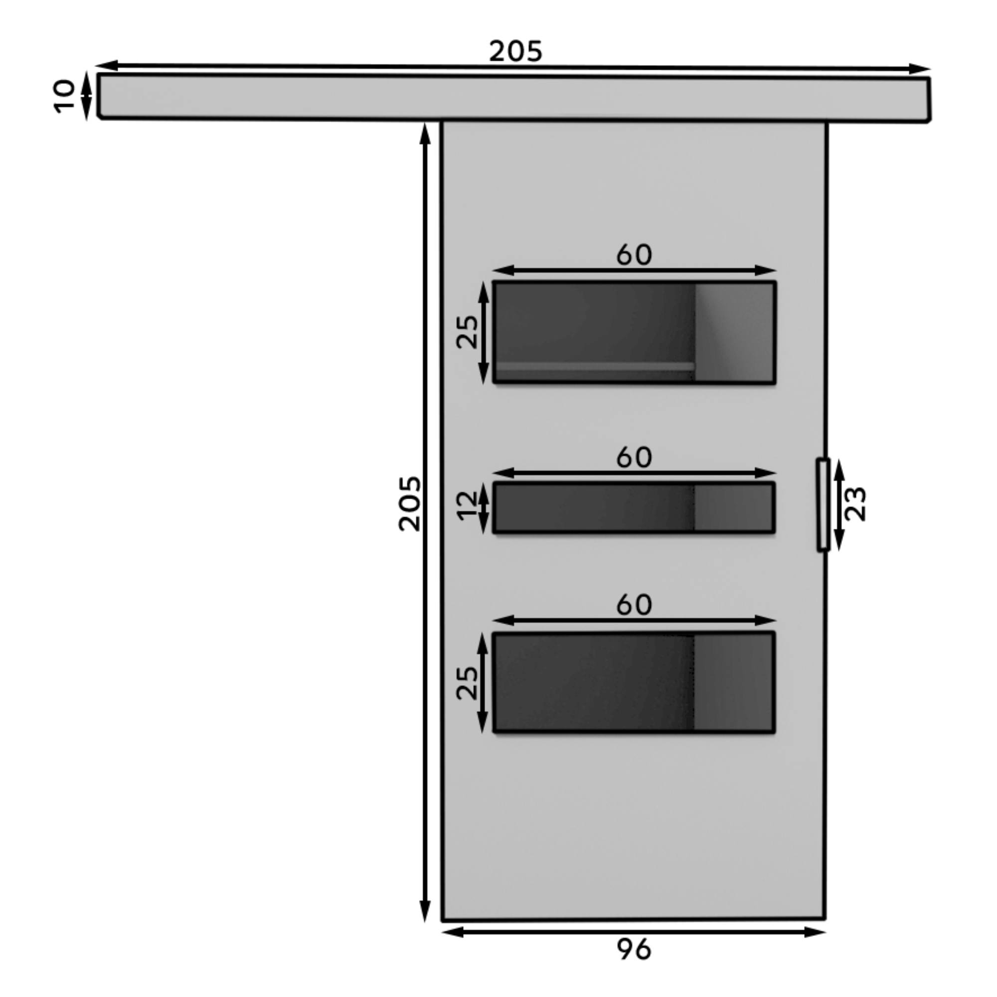 Posuvné dvere CENTO 96 - biela/čierna, 96x205 cm