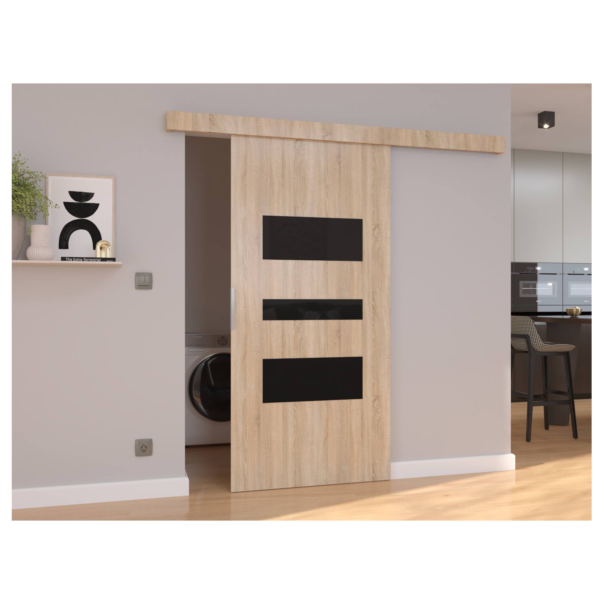 Posuvné dvere CENTO 96 - dub sonoma/čierna, 96x205 cm