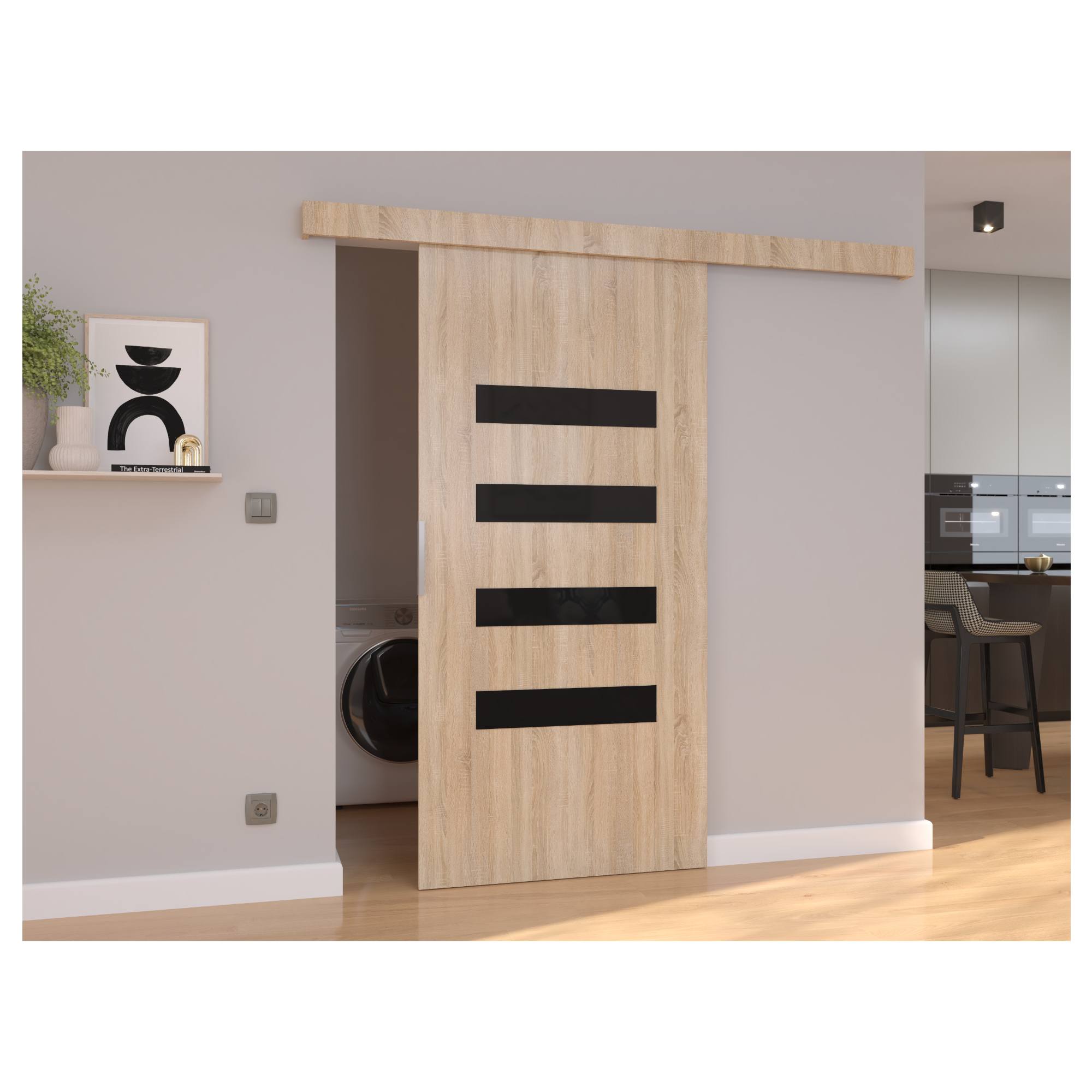 Posuvné dvere FORLI 96 - dub sonoma/čierna, 96x205 cm