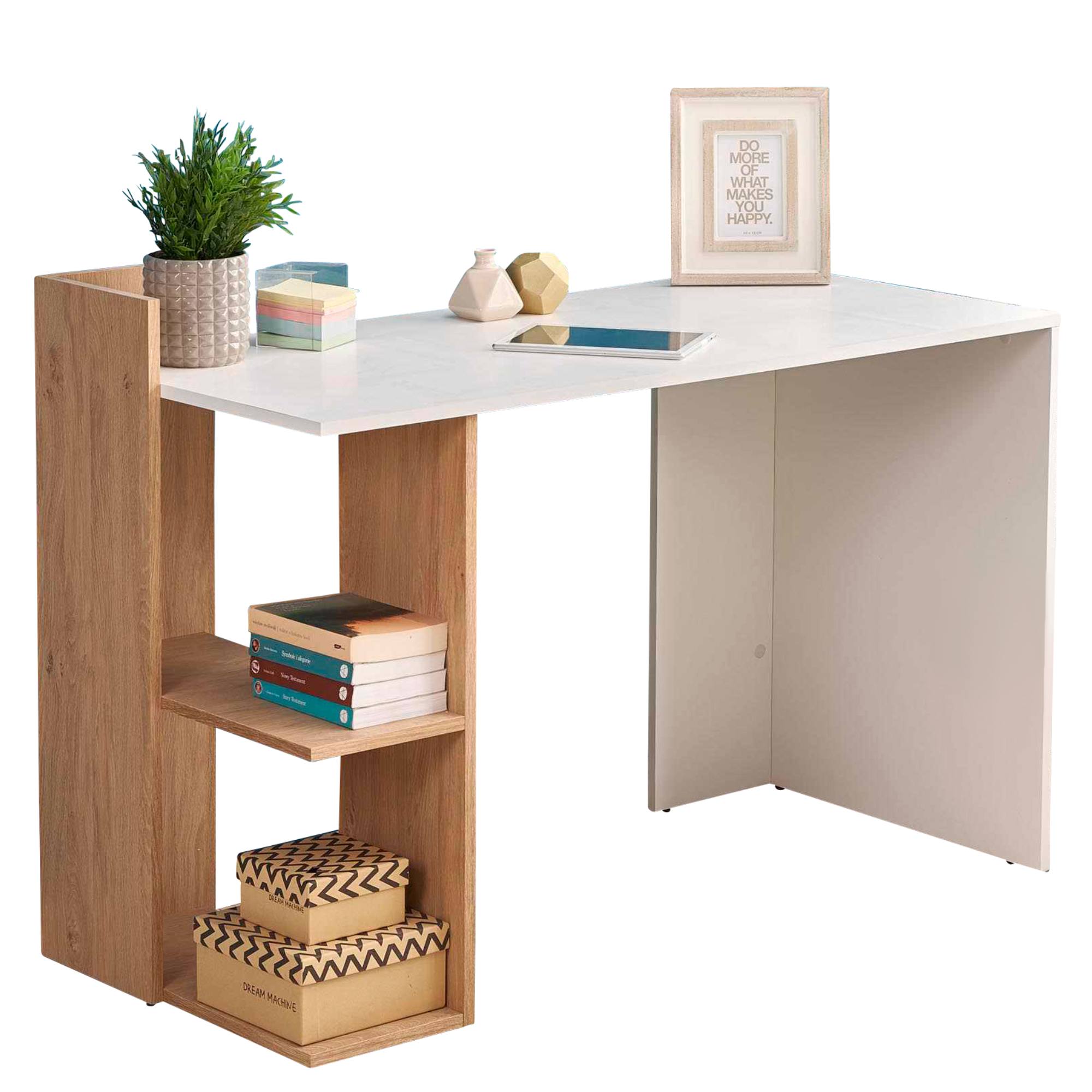 Písací stôl FANU sa hodí do každej moderne zariadenej domácej pracovne či kancelárie. Vyniká svojim minimalistickým vzhľadom, priestrannou doskou a praktickým bočným úložným priestorom. Do otvorených políc si môžete uložiť všetko, čo potrebujete mať hneď po ruke. Laminovaný drevený materiál sa vyznačuje jednoduchou údržbou.
