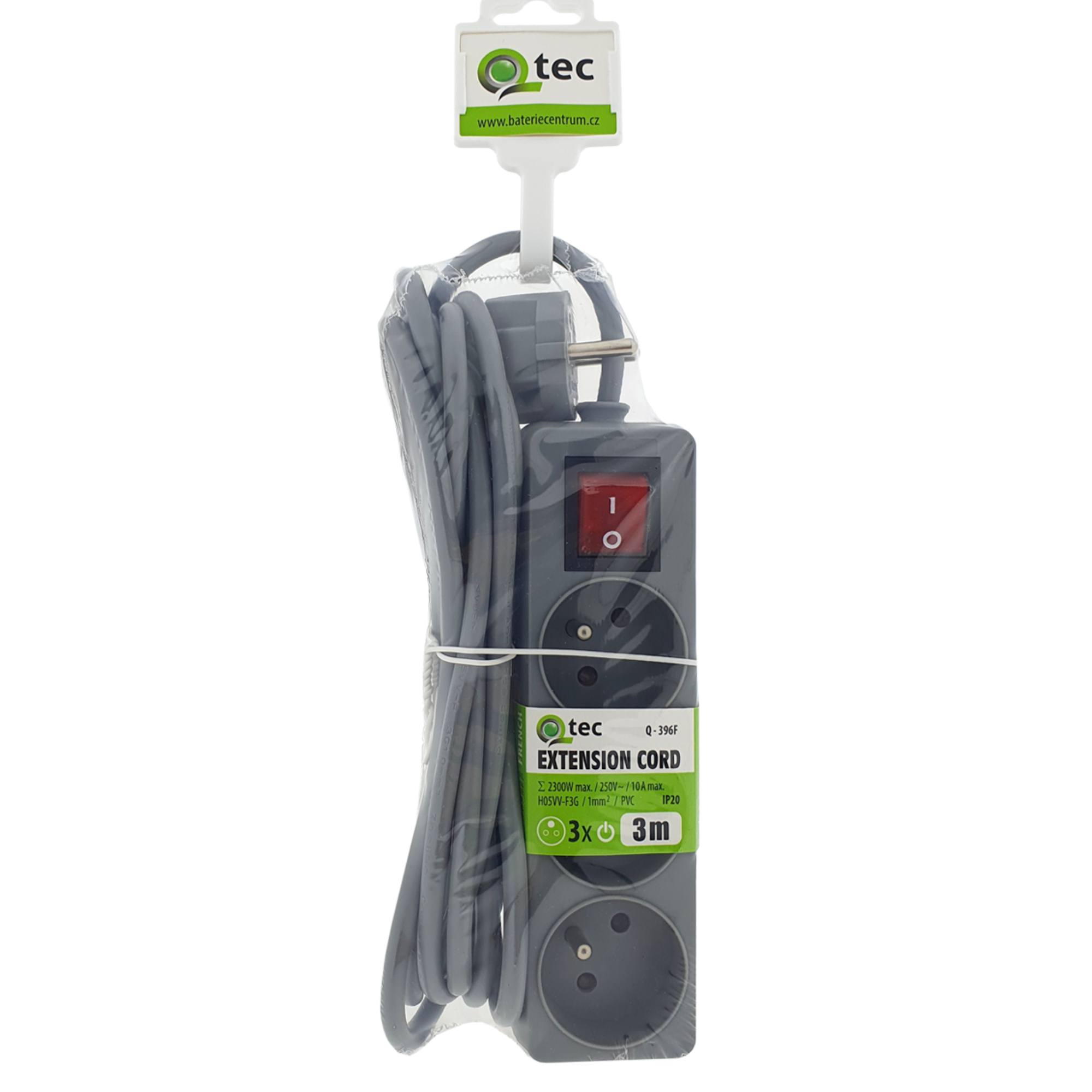 Predlžovací kábel s vypínačom Q-396F - sivá, 3 zásuvky, 3 m