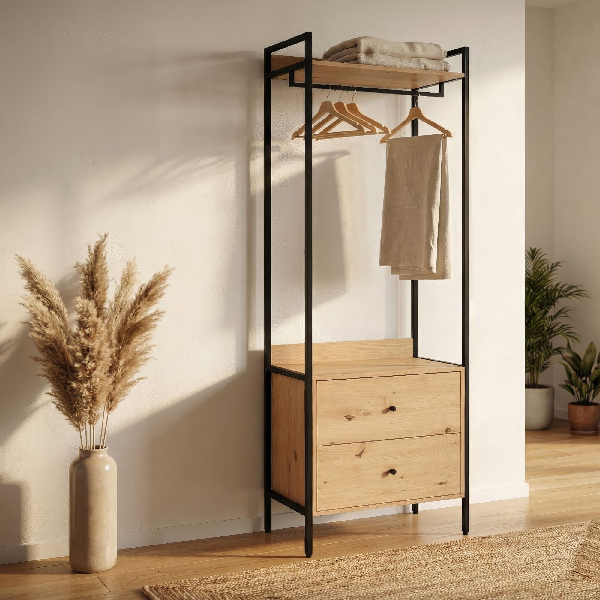 - 2 zásuvky, 1 polica, 1 šatníková tyč