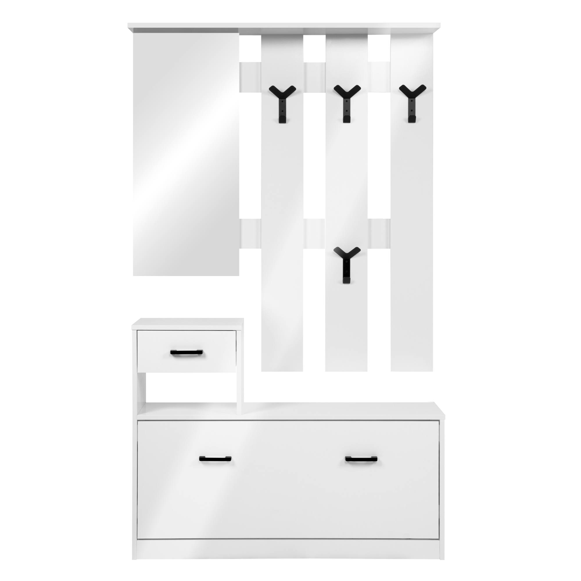 Jej súčasťou je nielen miesto na topánky ukrývajúce sa za výklopnými dvierkami, ale aj 1 zásuvka a 4 háčiky, na ktoré si môžete zavesiť bundy, kabáty či rôzne módne doplnky. Háčiky a rúčky, ktoré uľahčujú manipuláciu s dvierkami aj zásuvkou, sú z plastu. Nechýba ani zrkadlo, v ktorom si pred odchodom z domu môžete skontrolovať váš vzhľad.