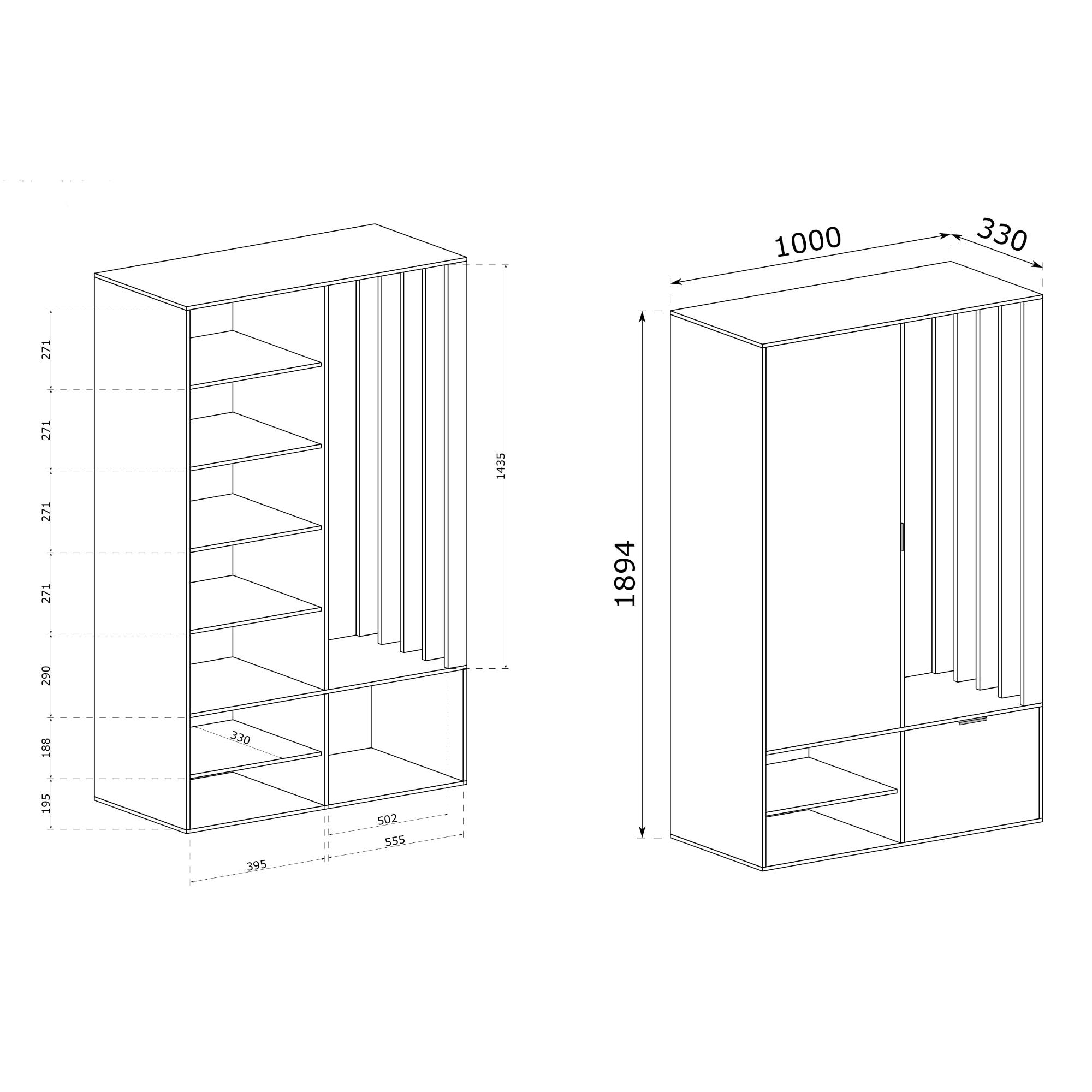 - Počet šatníkových tyčí: 1