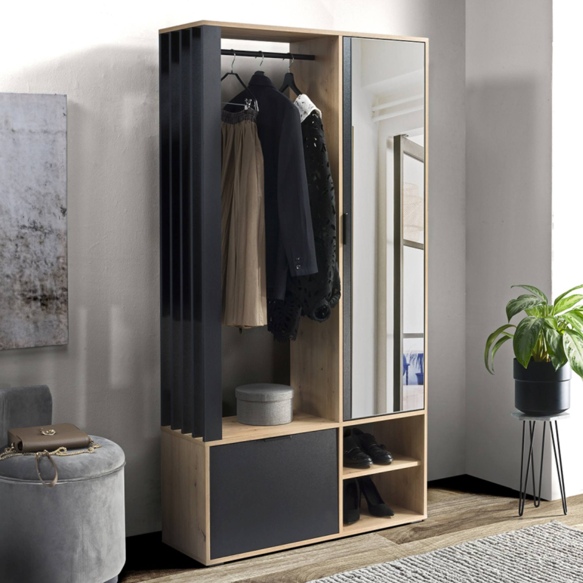 Predsieňová stena MALU - dub artisan/čierna