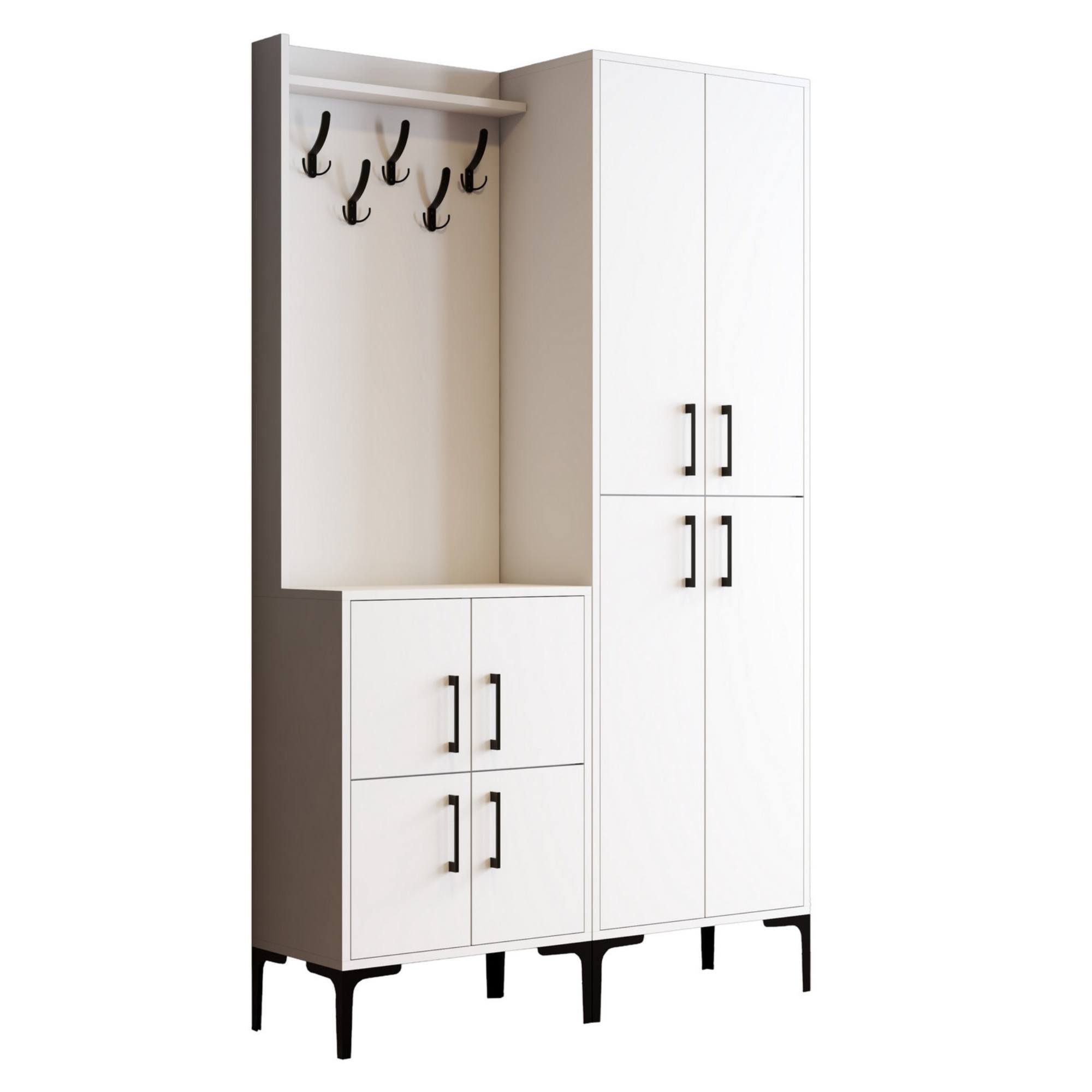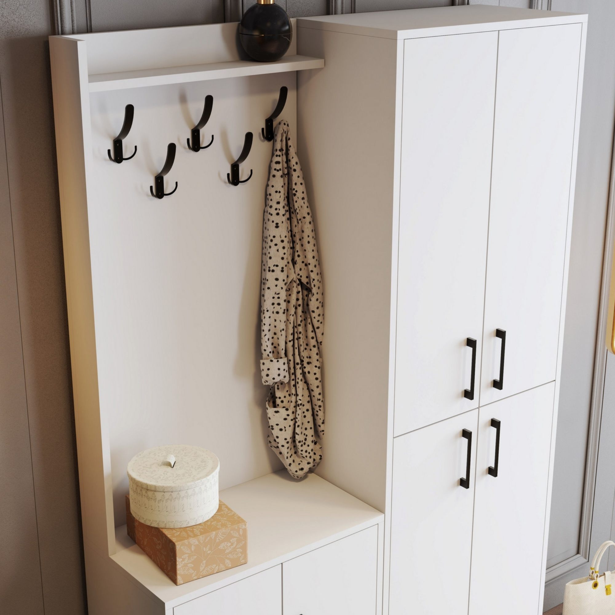 Zostava ponúka dostatok úložného priestoru. Jej súčasťou je 7 políc, z ktorých 6 sa ukrýva za otočnými dvierkami. Aby sa s týmito dvierkami dobre manipulovalo, sú vybavené plastovými rúčkami. Nechýbajú ani 5 kovových dvojitých háčikov, na ktoré si môžete zavesiť obľúbené odevy aj módne doplnky.