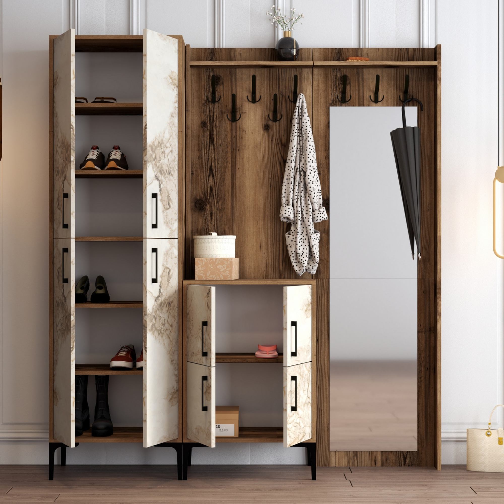Predsieňová zostava BERLIN 3 - orech/mramor