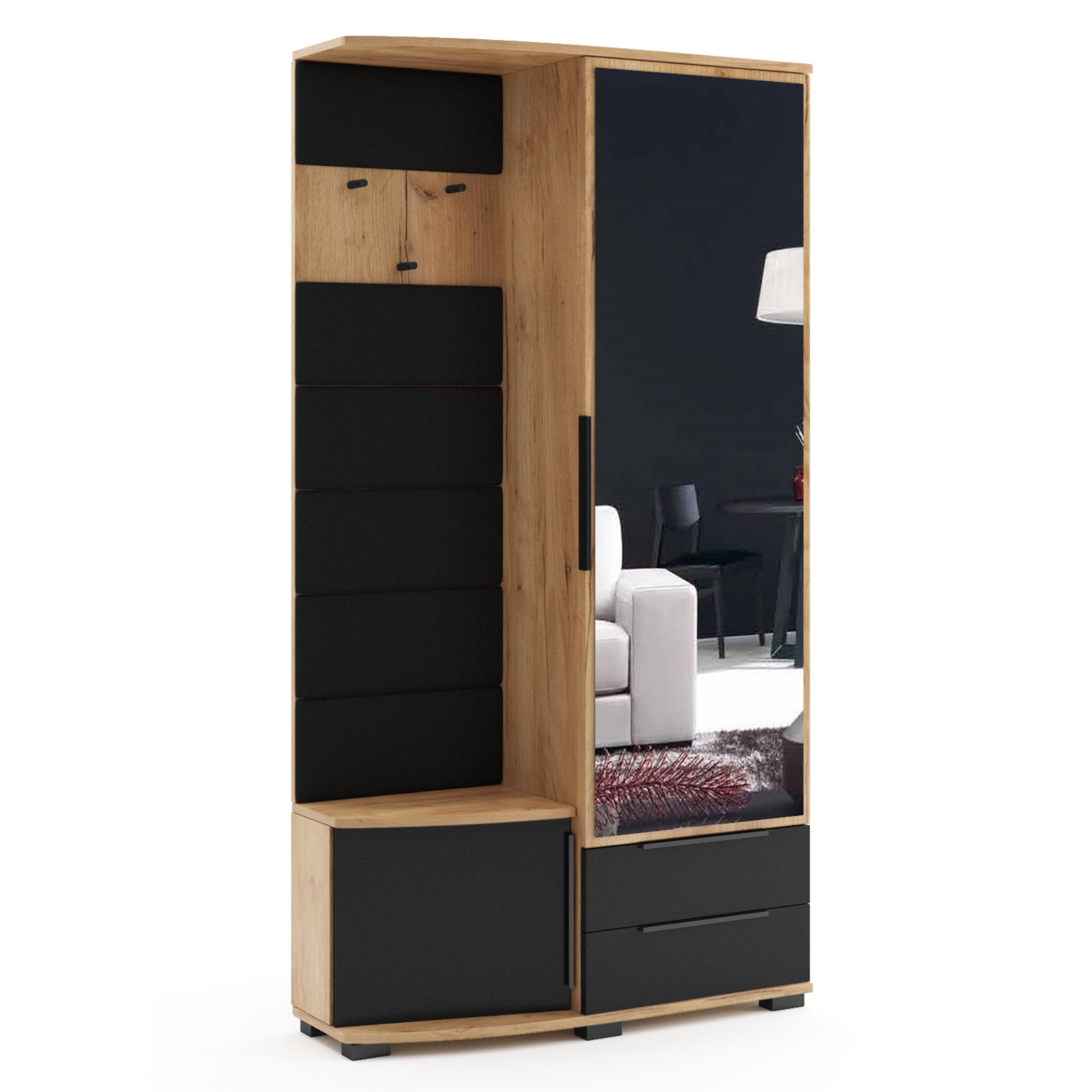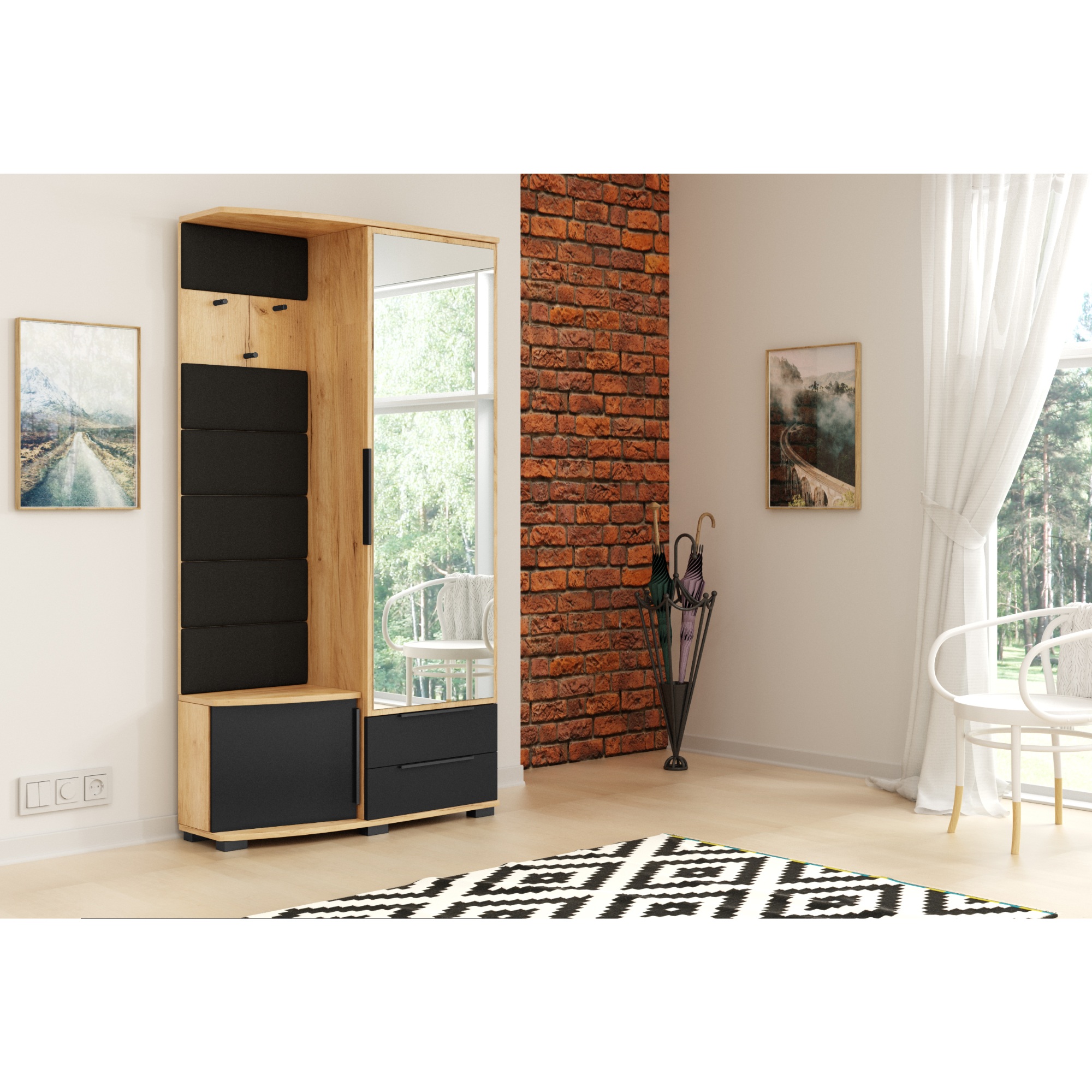 Predsieňová zostava CLEO - dub craft/čierna/zrkadlo, pravá