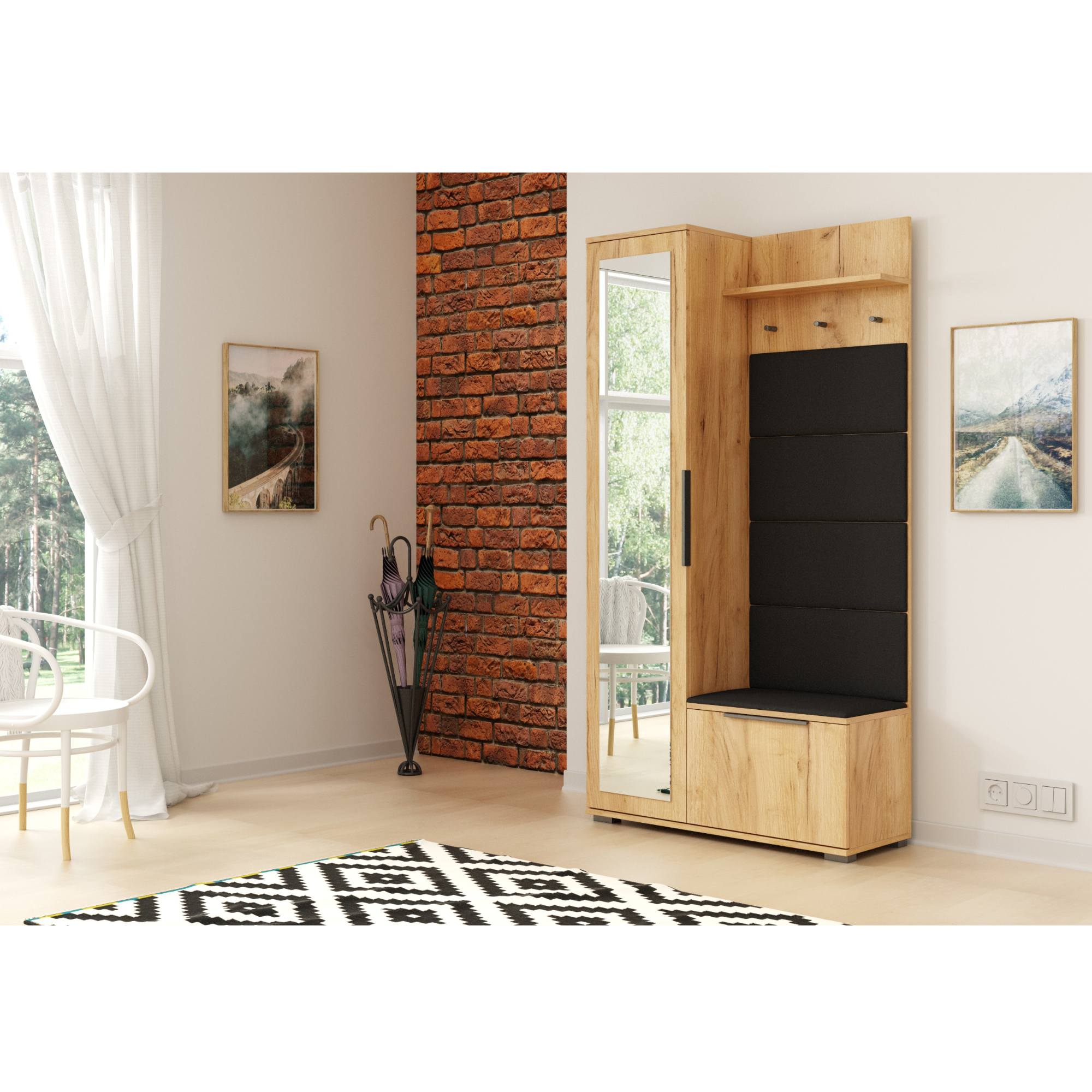 Predsieňová zostava LÍVIA - dub craft/čierna/zrkadlo, ľavá