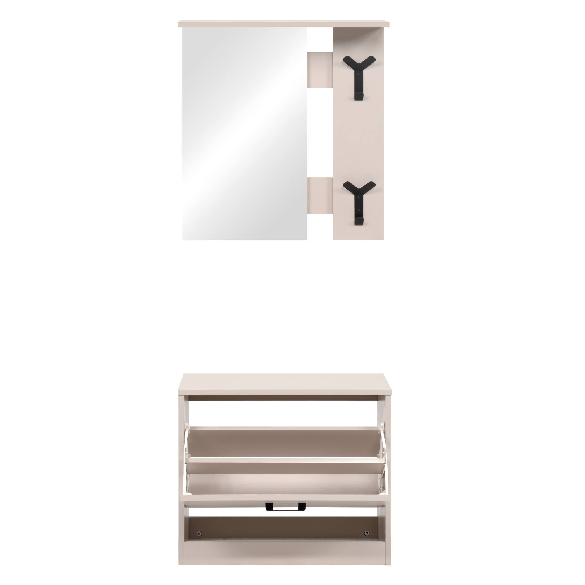 - Zostava zložená zo skrinky na topánky a nástenného panelu