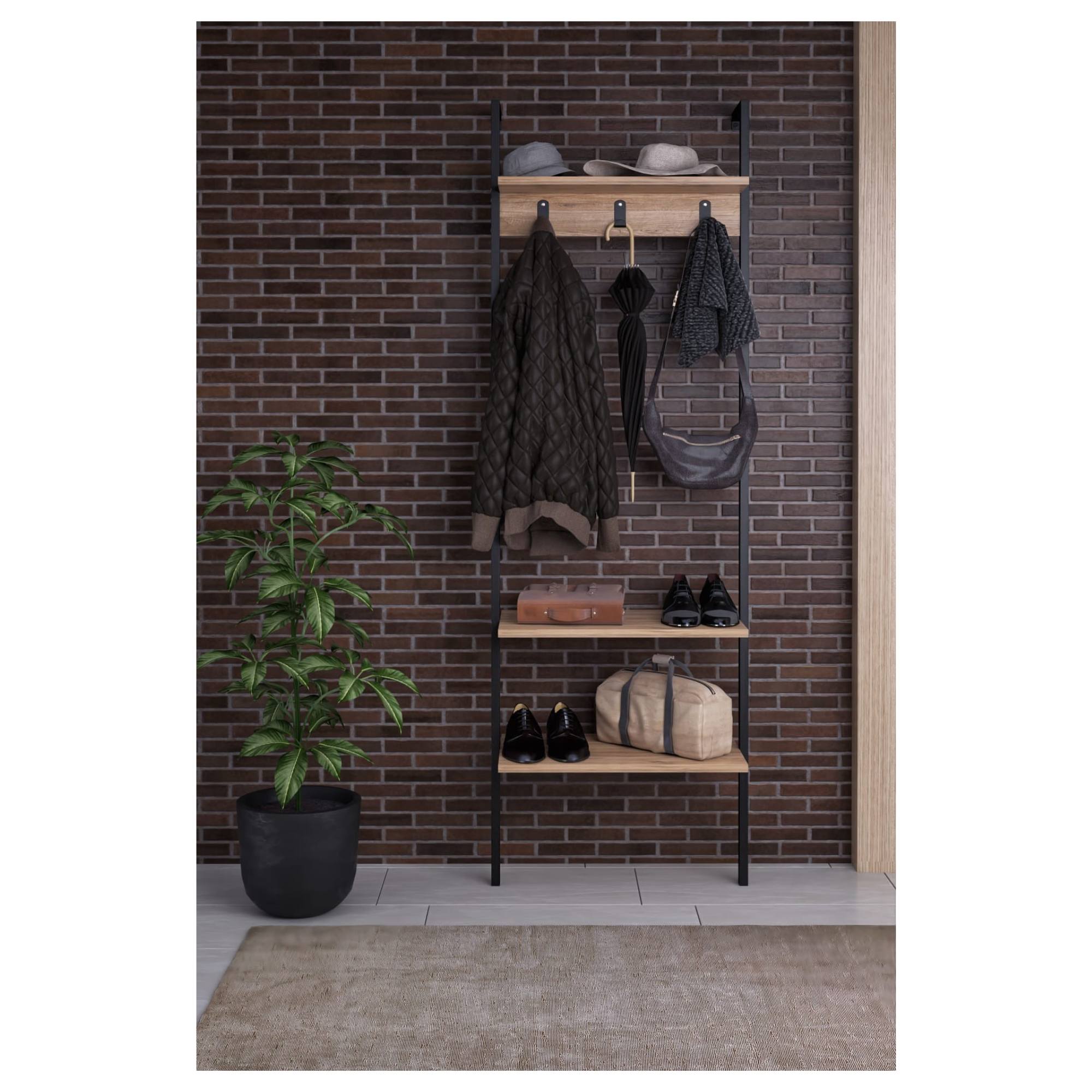 Pokiaľ ide o odkladací priestor, ponúka zostava 3 vložené police. Nechýbajú ani 3 háčiky, na ktoré si môžete zavesiť kabáty, bundy aj módne doplnky.