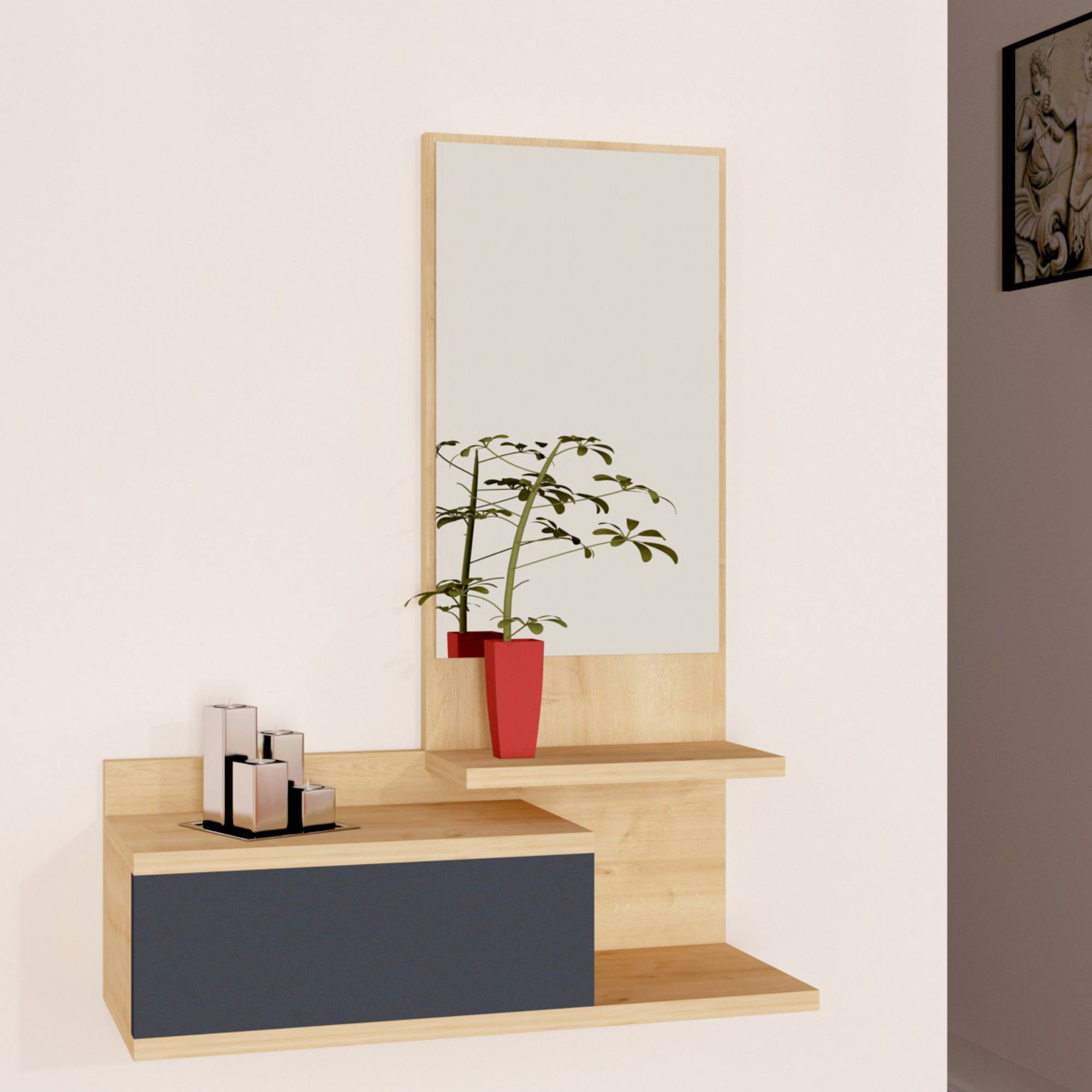 Jej súčasťou je nielen 1 zásuvka, ale aj 1 polica. Nechýba ani zrkadlo, v ktorom si vždy pred odchodom z domu môžete skontrolovať váš vzhľad.