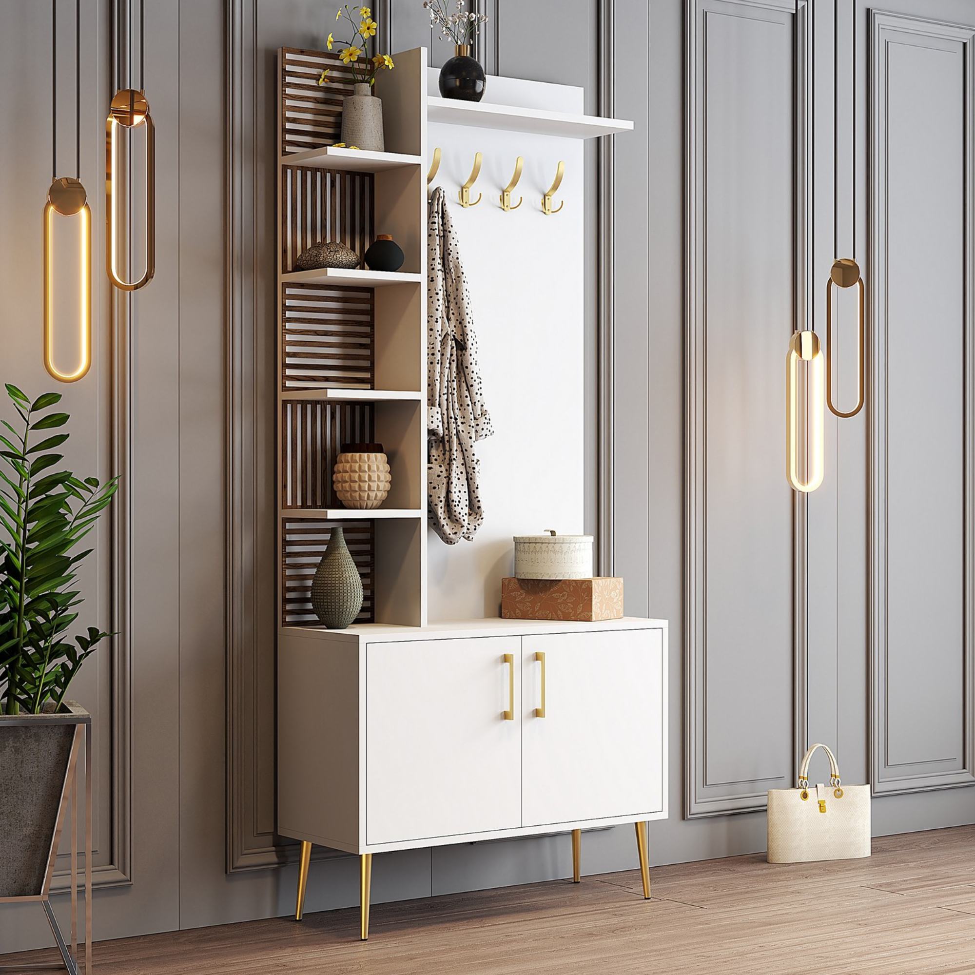 Predsieňová zostava VIYAN 3 - biela/zlatá
