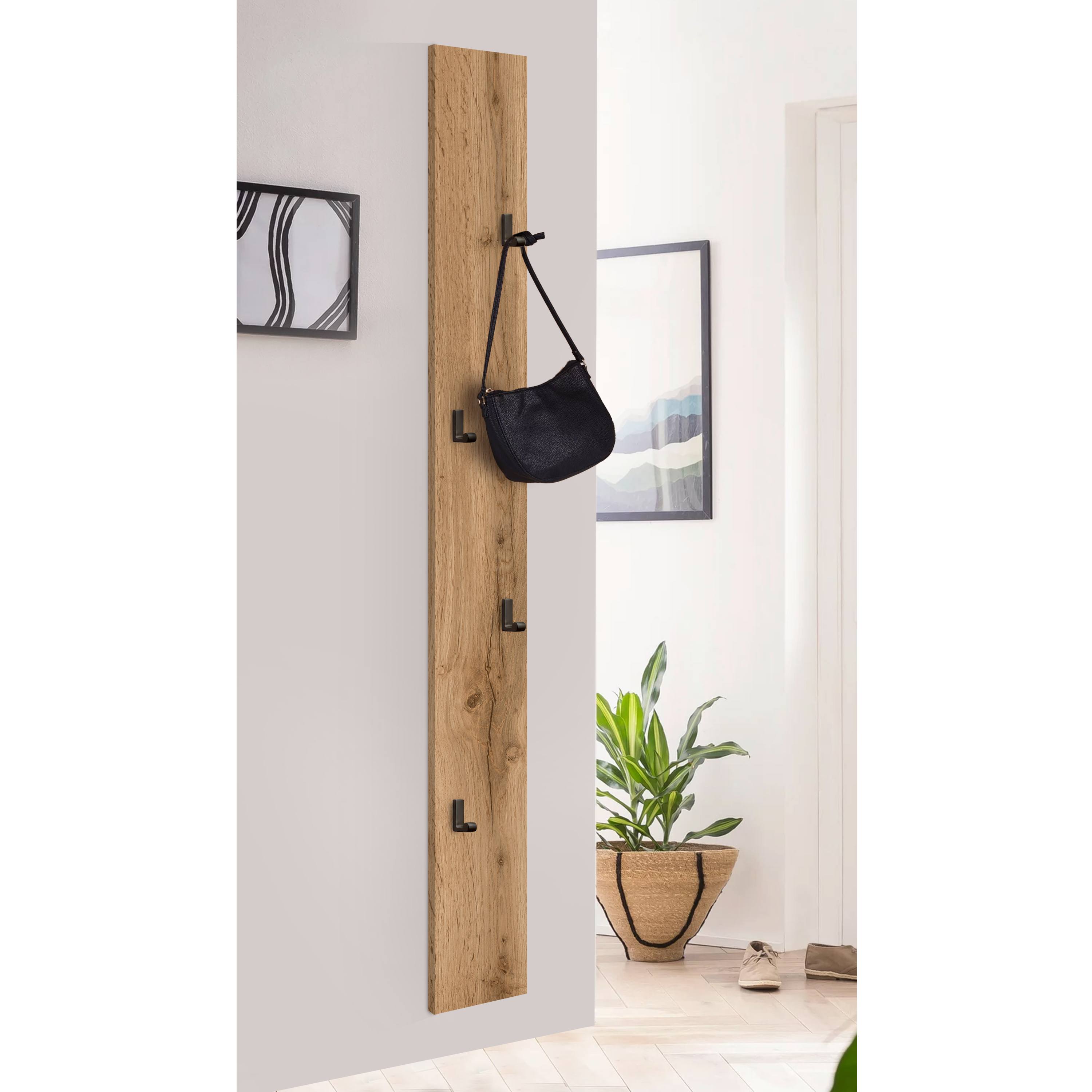 Panel je vybavený 4 odkladacími háčikmi na komfortné zavesenie rôznych vrchných odevov a doplnkov. Vďaka úzkemu, nástennému prevedeniu je skvelou voľbou aj do menších priestorov. Panel je vyrobený z laminovaného dreveného materiálu s povrchom nenáročným na údržbu.